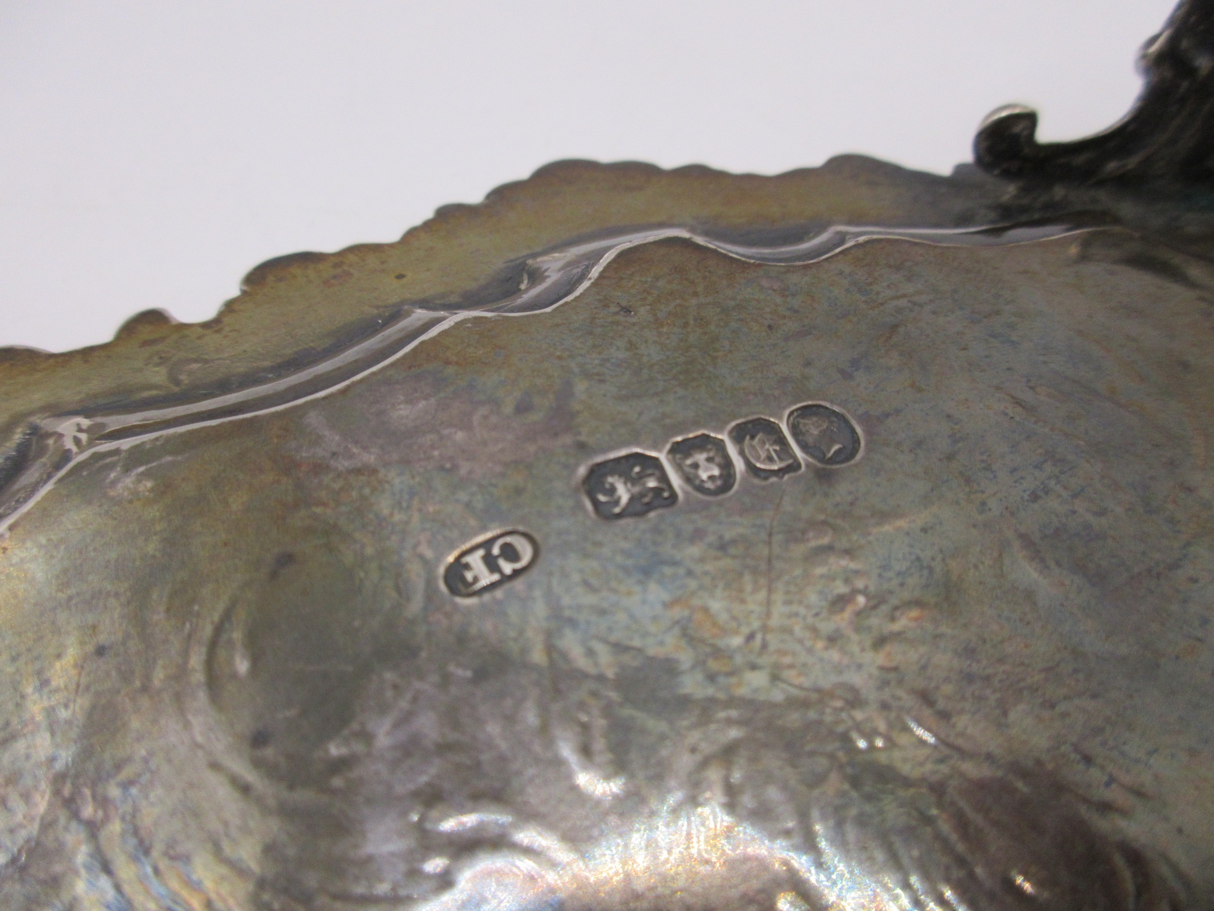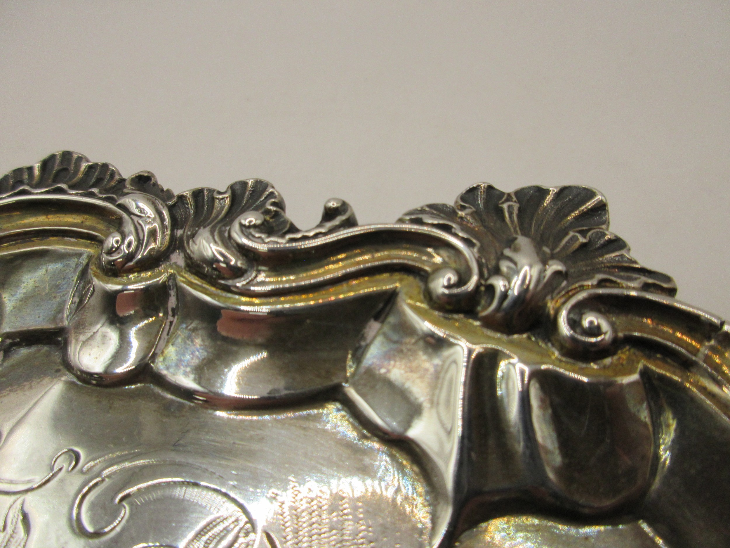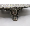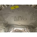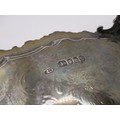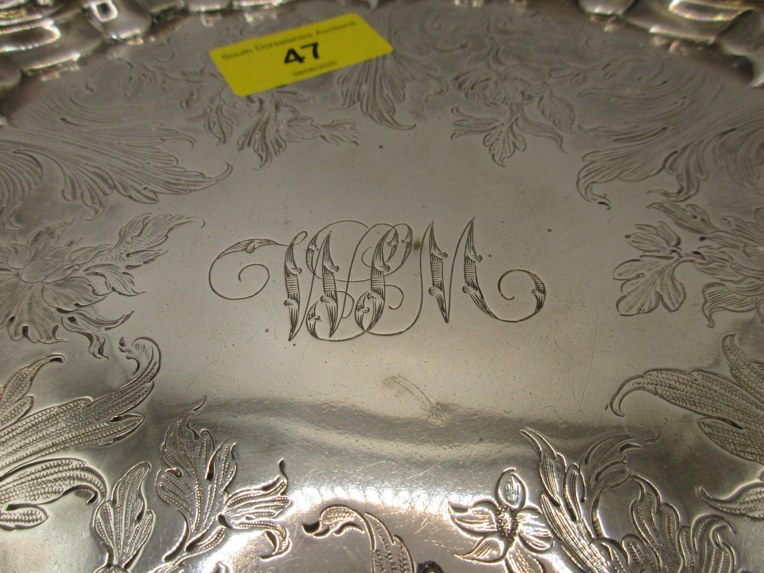 A substantial circular sterling silver salver on scrolled feet with scrolled acanthus rim, script initials to centre, in good order, hallmarked for London 1854 by Charles Fox, approx weight 600g