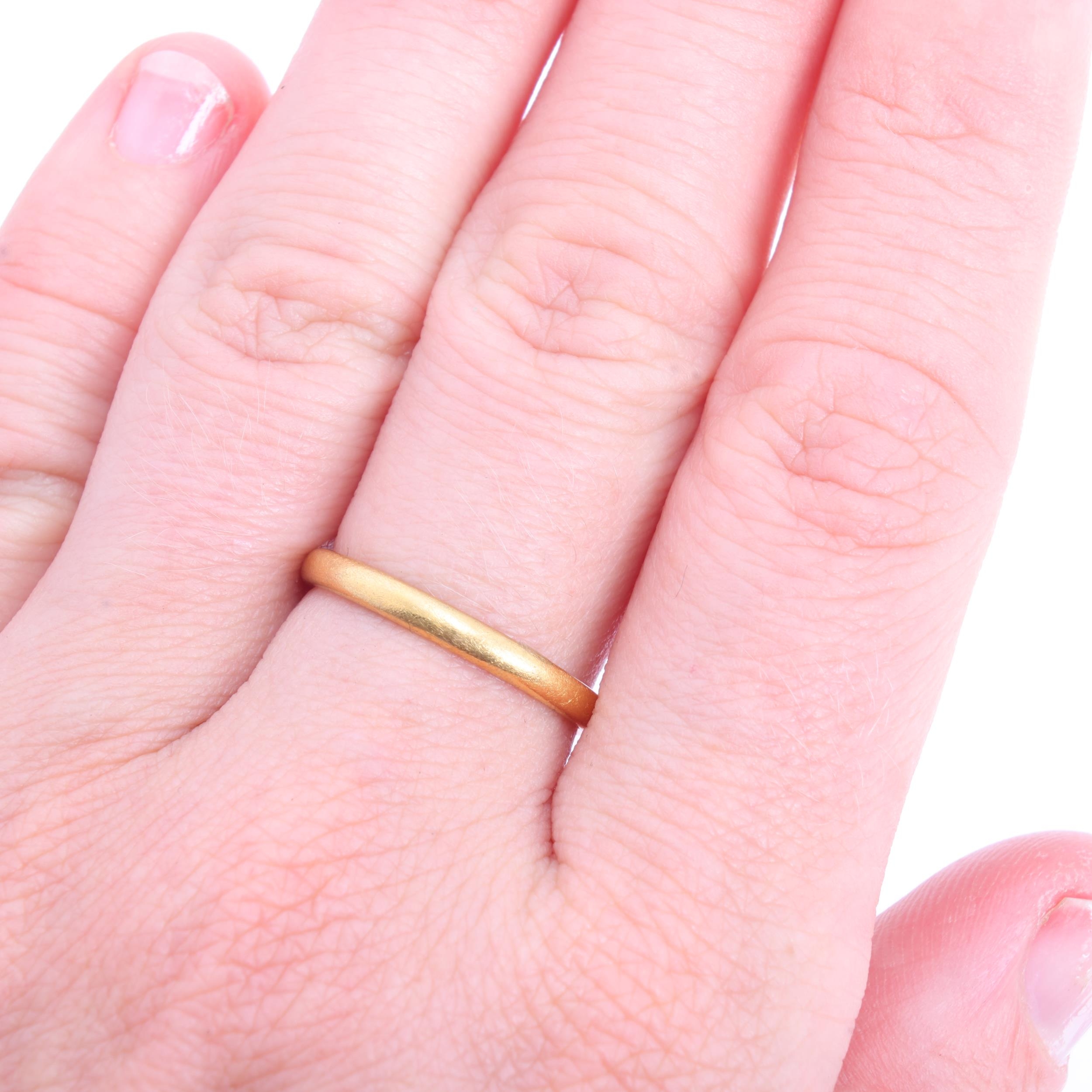 A 22ct gold wedding band ring, maker ES&Co, Birmingham 1950, setting height 2.3mm, size O, 2.8g