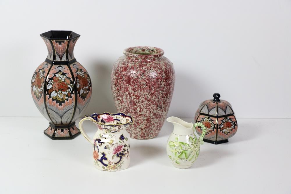 Porcelain: A good collection of attractive porcelain pieces, including: a Belleek Jug, a Masons Ironstone Jug, some modern Art Pottery, large Vases, Bowls, Jugs etc., etc., approx. 20 pieces, w.a.f. As a lot. (1)