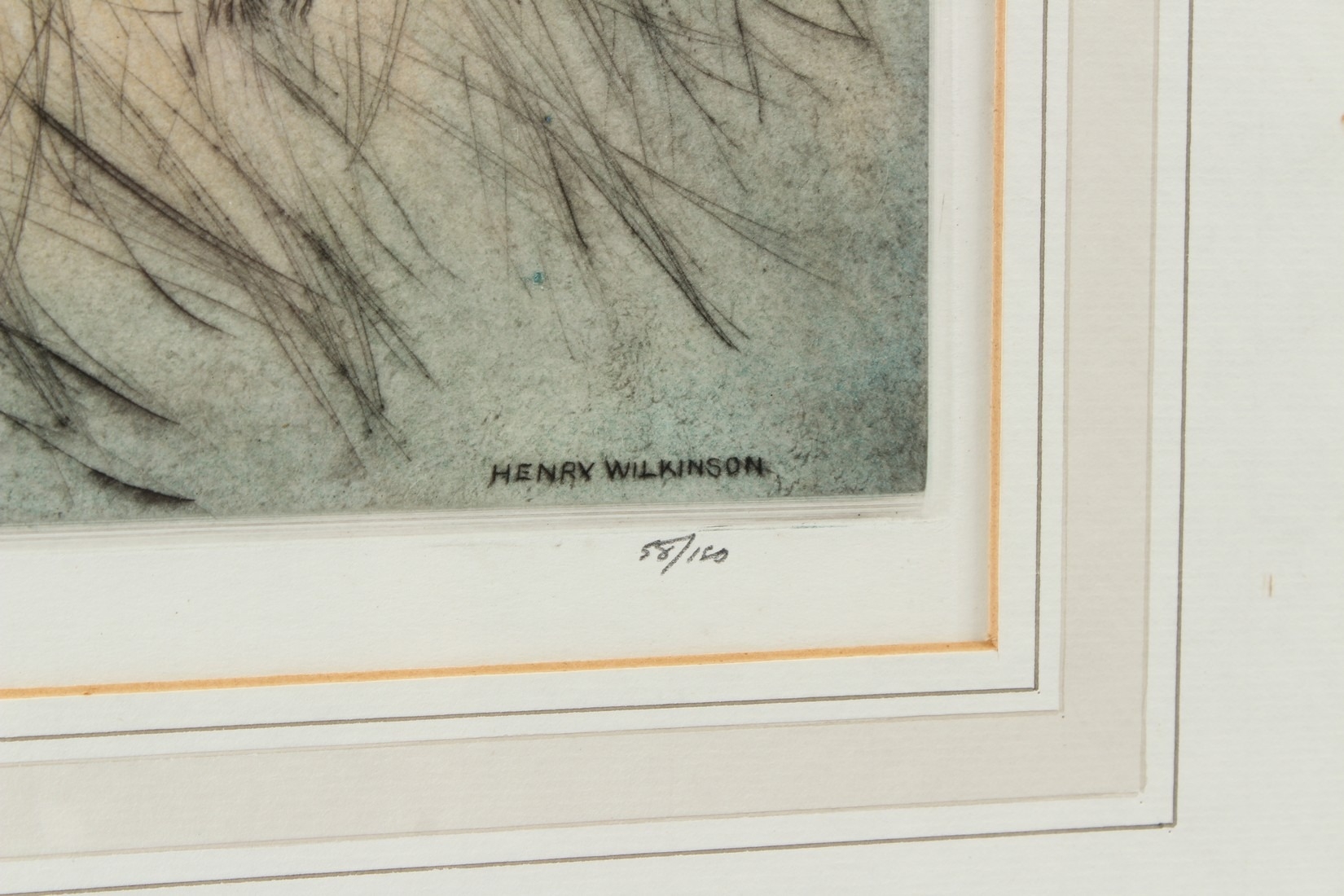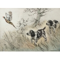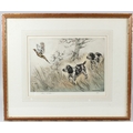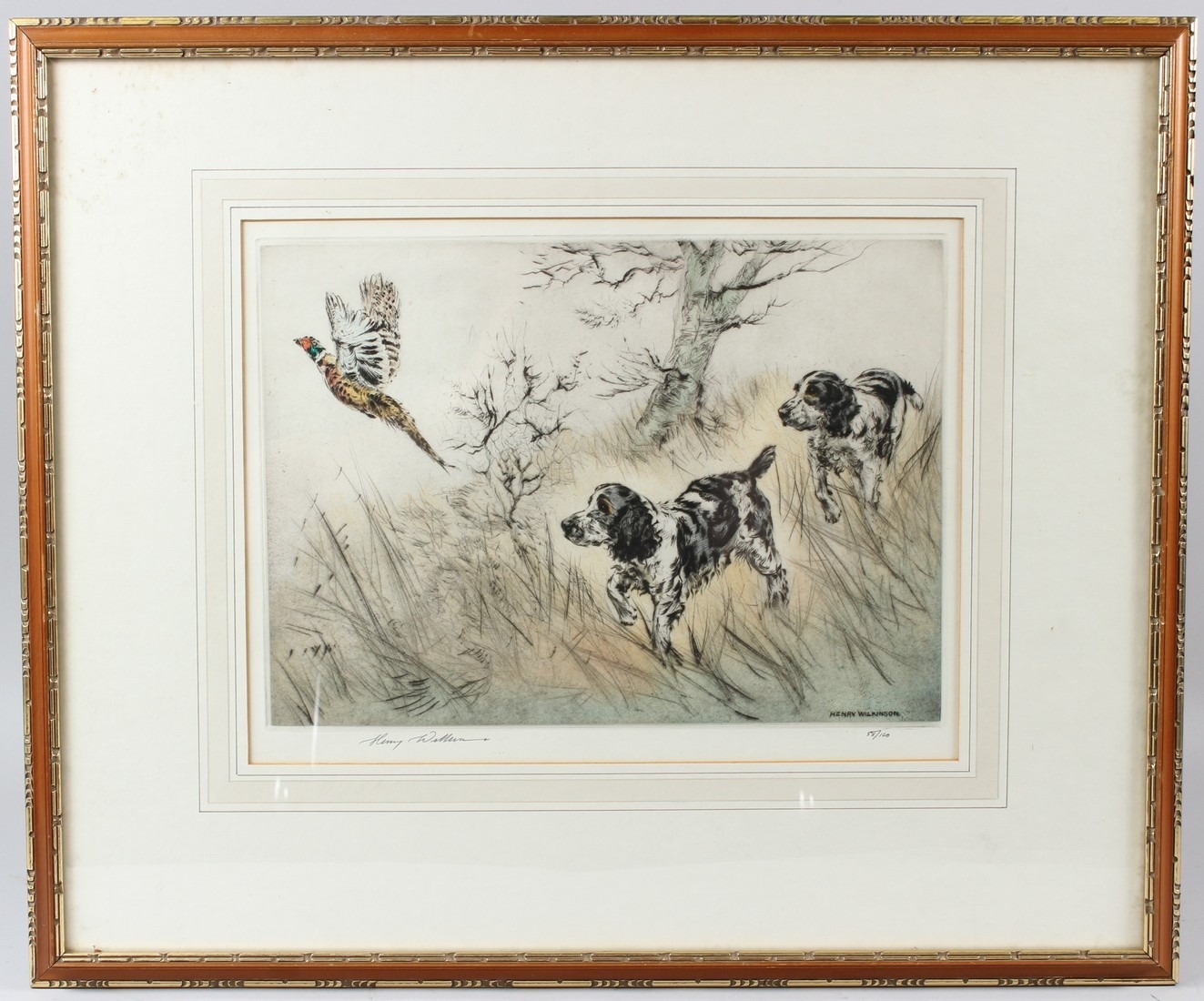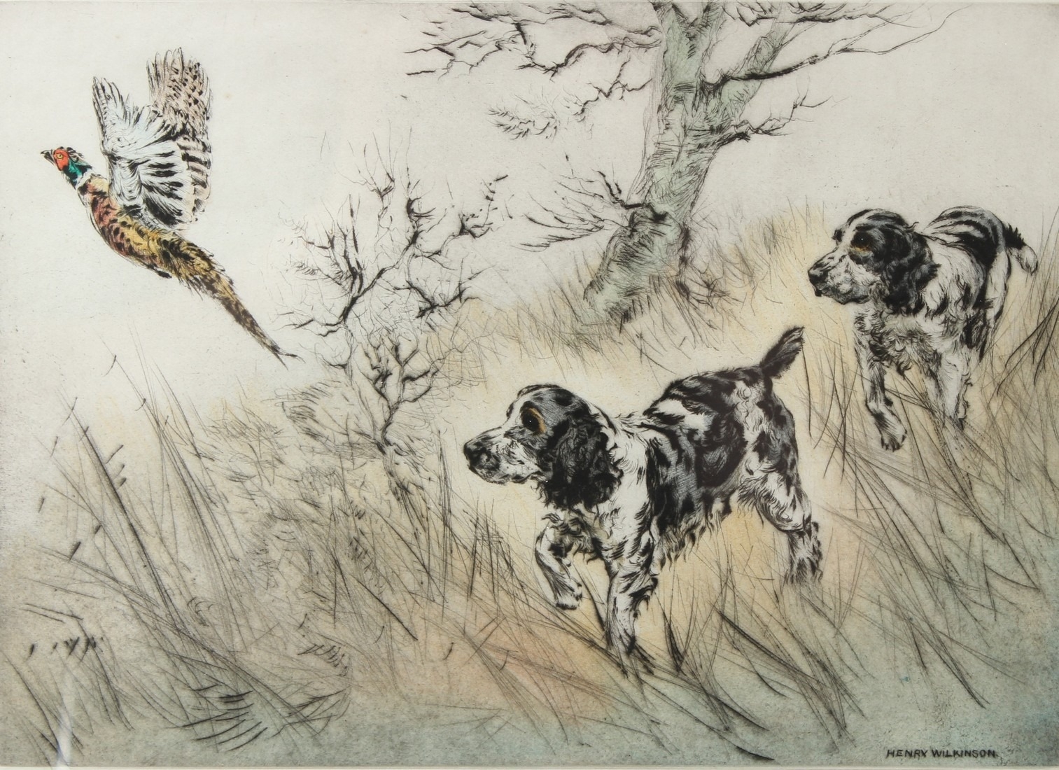 HENRY WILKINSON Spaniels putting up a pheasant colour etching signed and numbered 58/100 in pencil 25 x 34.5cm (plate)