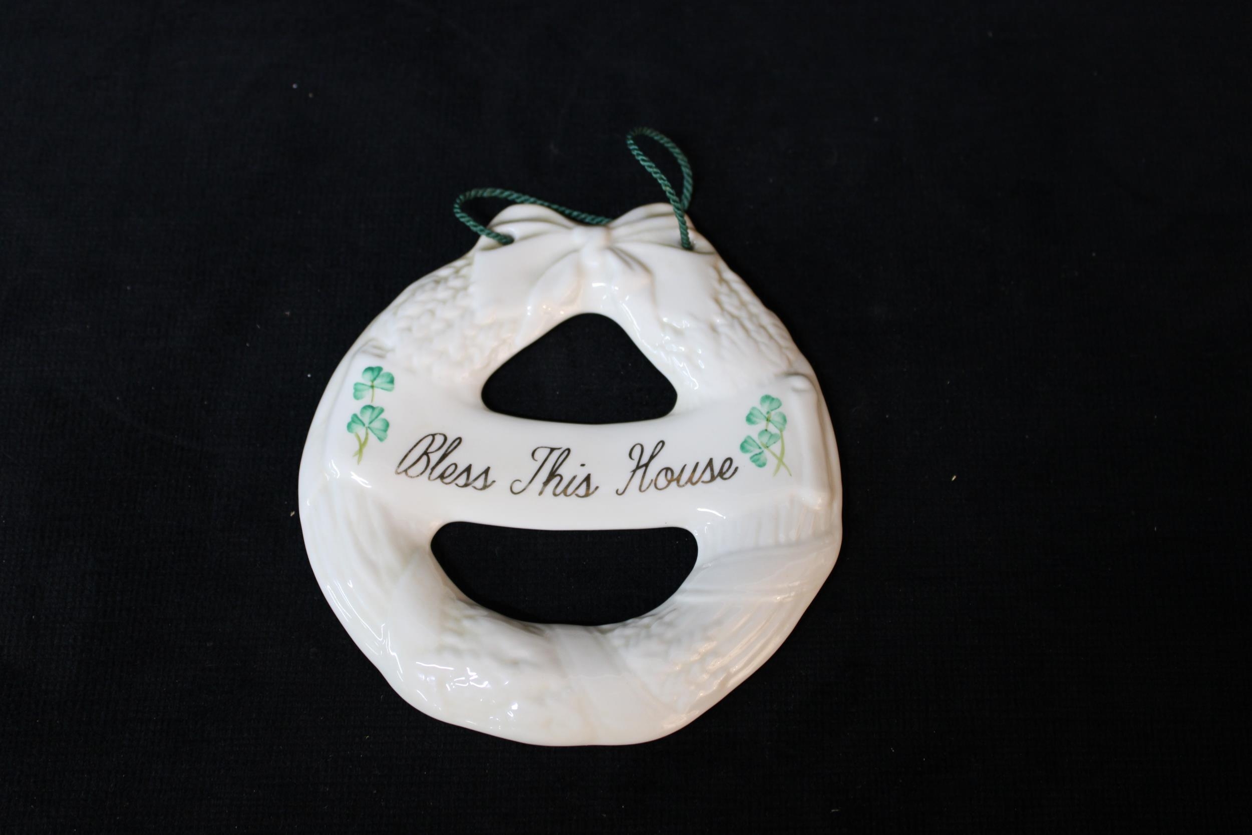 A Belleek house blessing wreath - 16cmD