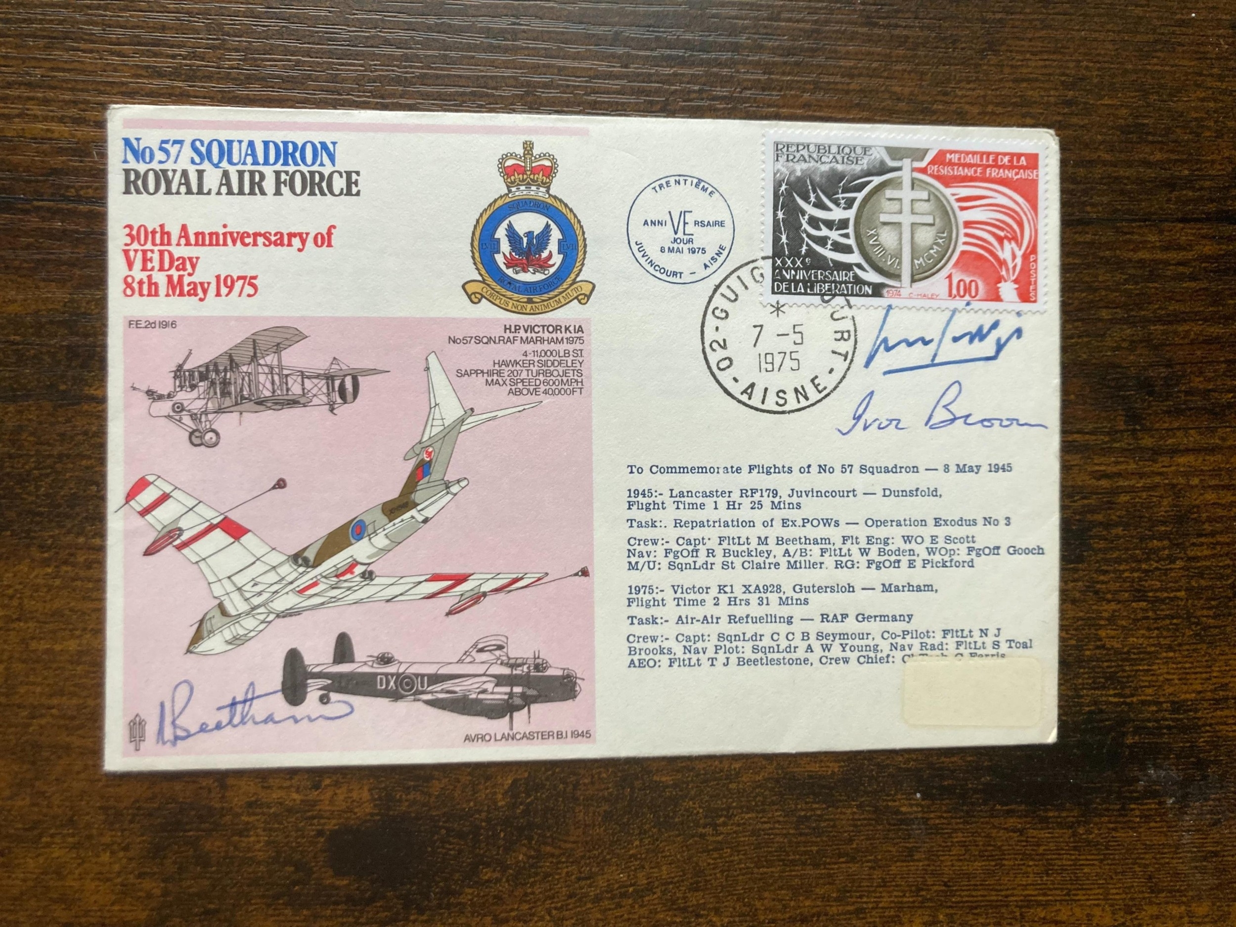 RAF Flown Sir Michael Beetham, Sir Michael Giddings and Sir Ivor Broom signed 57 Sqn 30th Ann of VE Day 8 May 1975 WW2 RAF FDC. Single Vendor collection of RAF Museum official covers, cosmonauts, Navy covers, FDCs. Good condition. All autographs come with a Certificate of Authenticity. We combine postage on multiple winning lots and can ship worldwide. UK postage from £5.99, EU from £7.99, Rest of World from £9.99.