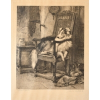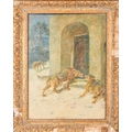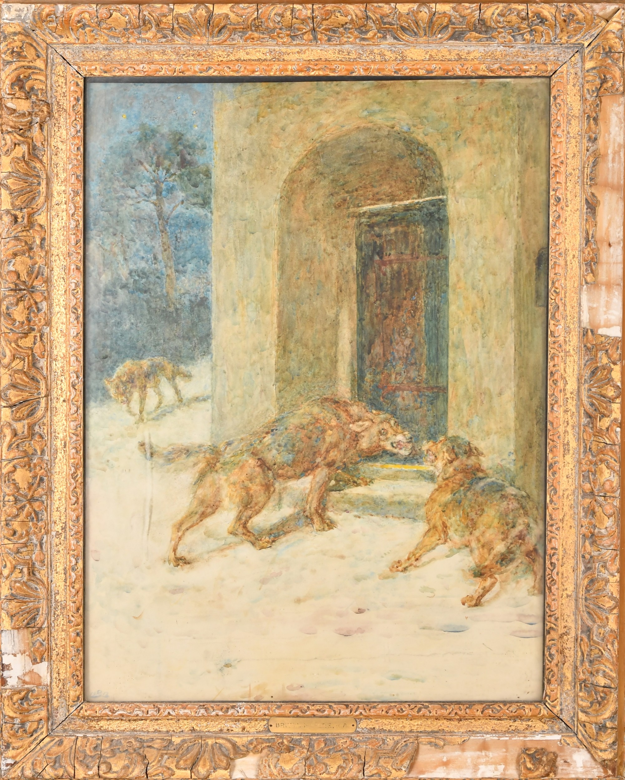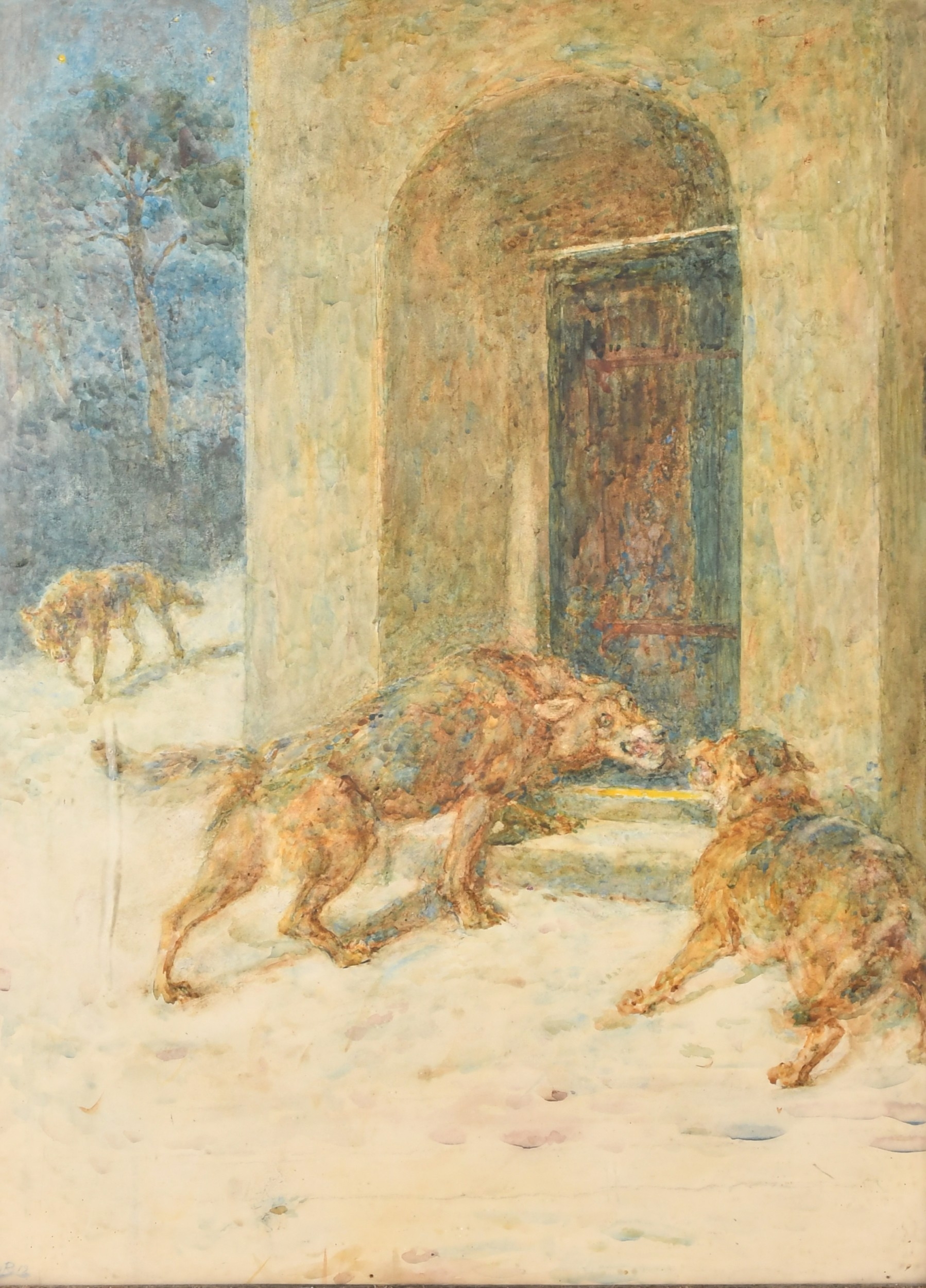 Briton Riviere (1840-1920) British. "The Wolf at The Door", Watercolour, Signed with monogram and dated 1919, and inscribed on a label verso, 22.5" x 16" (57.1 x 40.6cm)