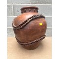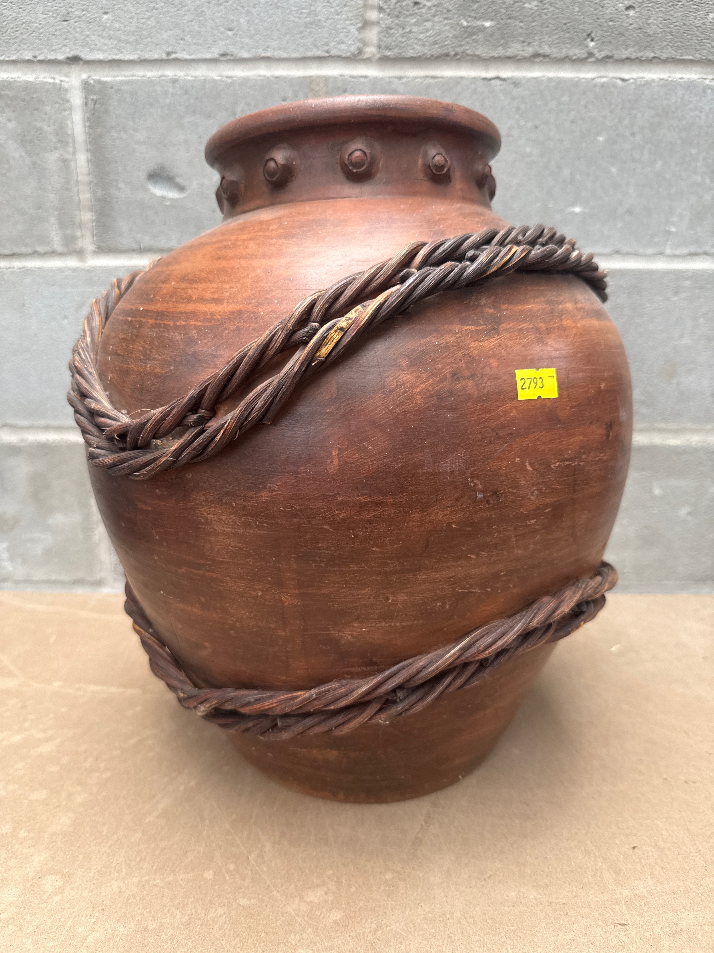 Large Stone Vase With Braided Whicker Detailing Standing 15”