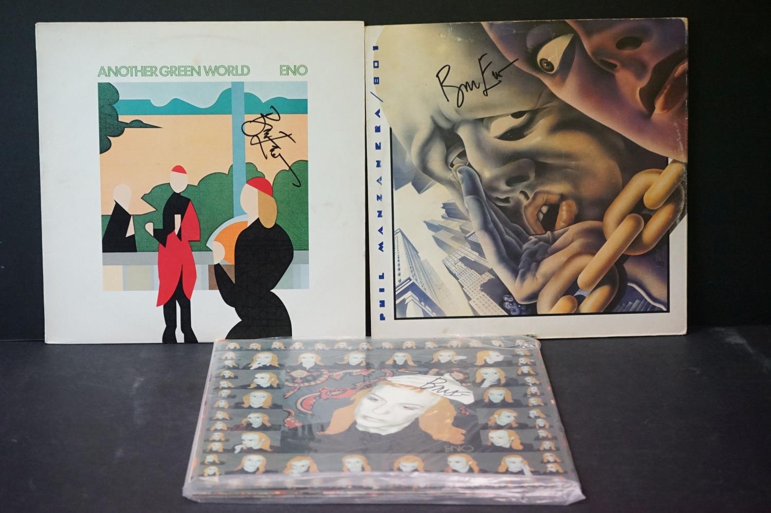 Vinyl & Autographs - Three LP's signed by Brian Eno. From the estate of the late Julia Trangmar
