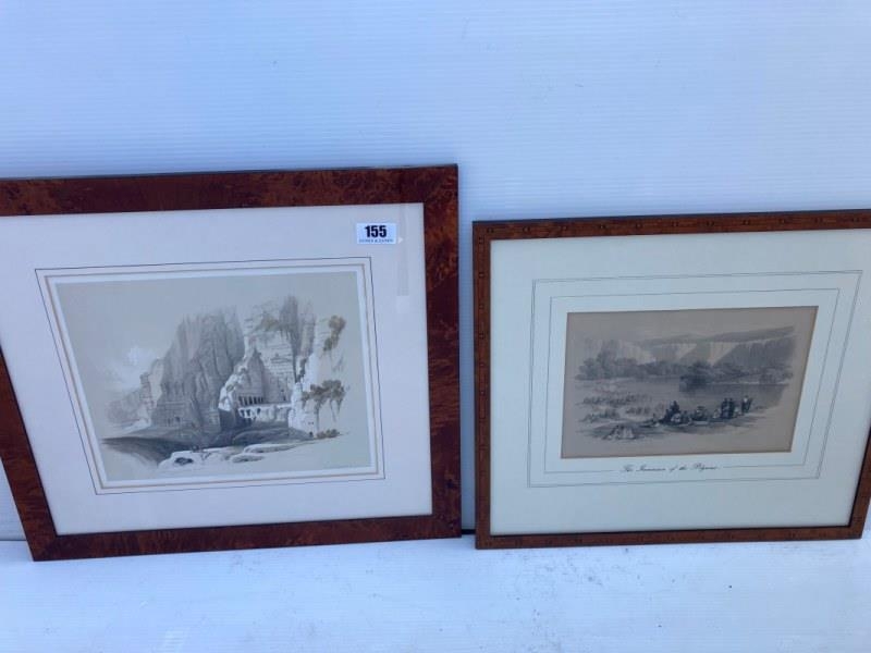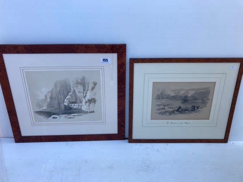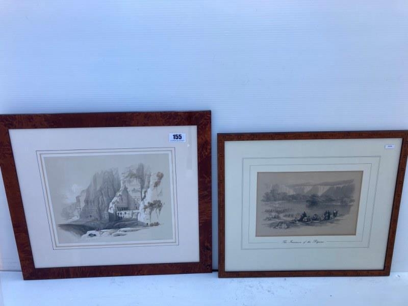 David Roberts R.A., 1796-1864 - Two 19th century framed lithographs, The Immersion of the Pilgrims; Excavated Mansions of Petra. (2)