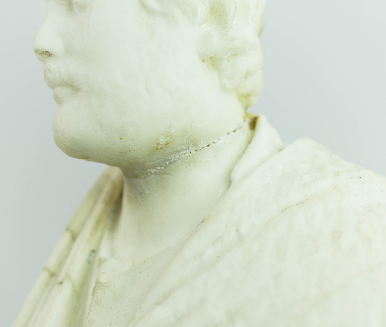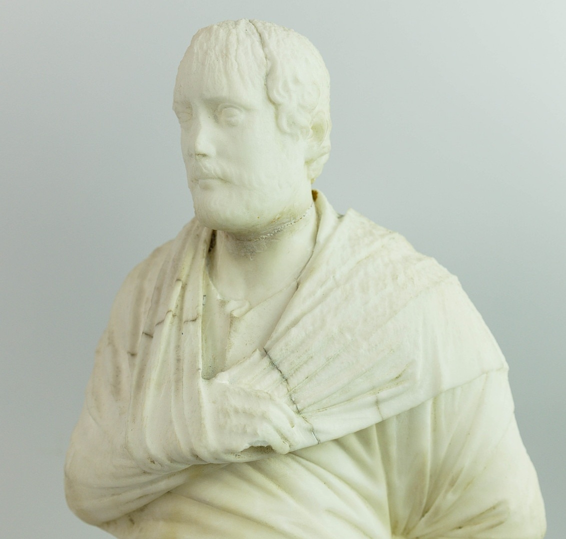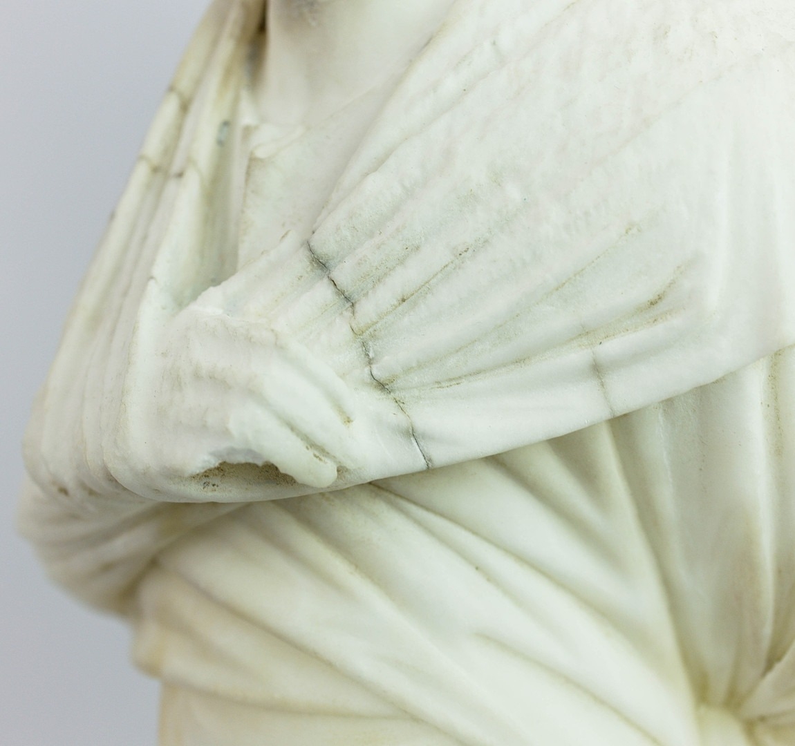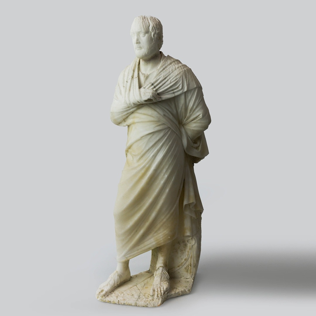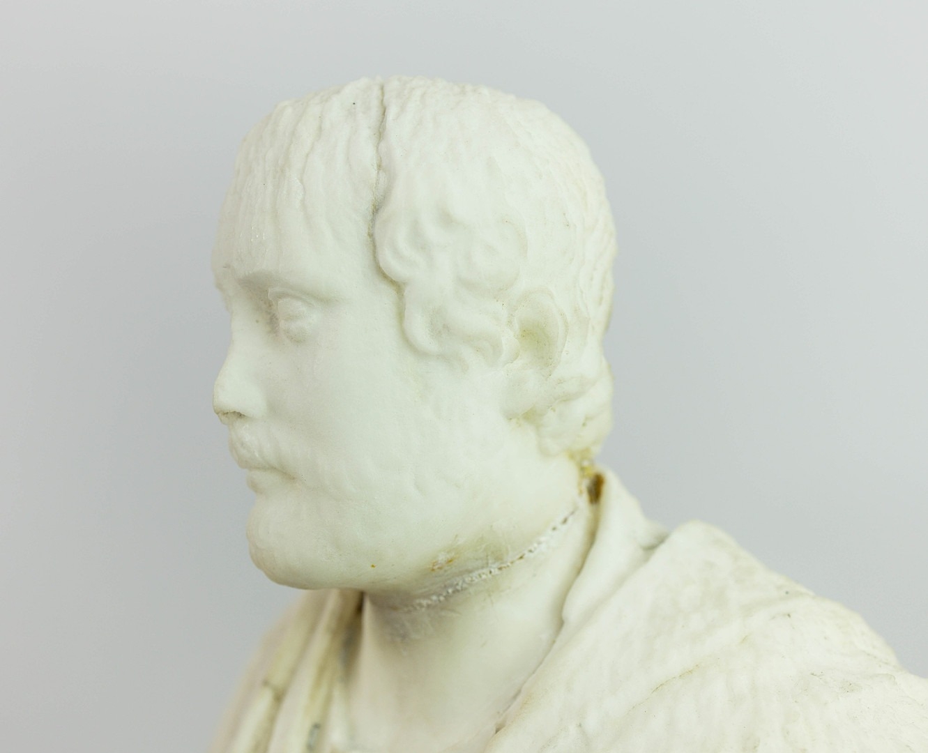 A 'GRAND TOUR' STYLE FIGURE OF AISCHINES. after the antique, carved alabaster, 53cm H.