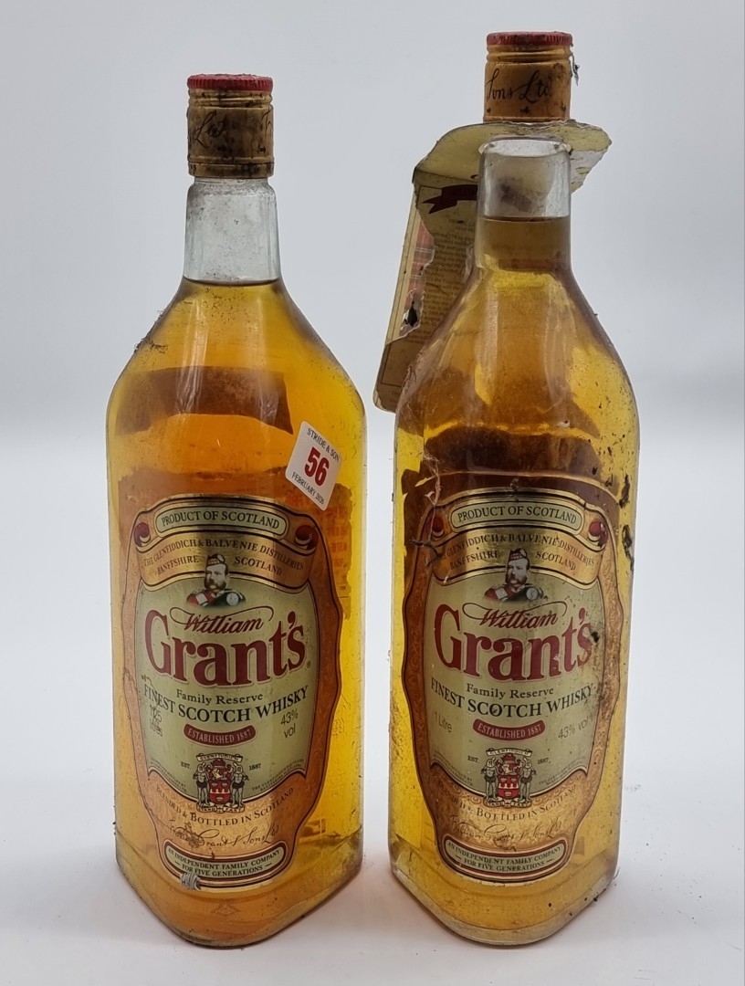 A 1.125 litre bottle of Grant's Blended Whisky; together with a similar 1 litre example. (2)