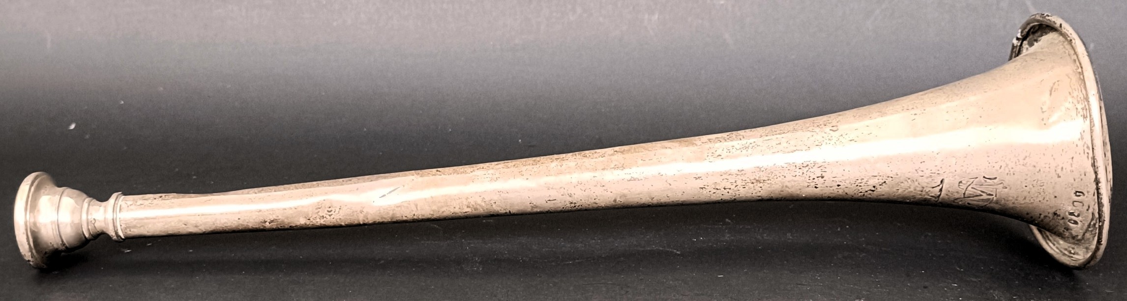 A Victorian silver horn, marks rubbed, 4.4 ozt, 28 cm
