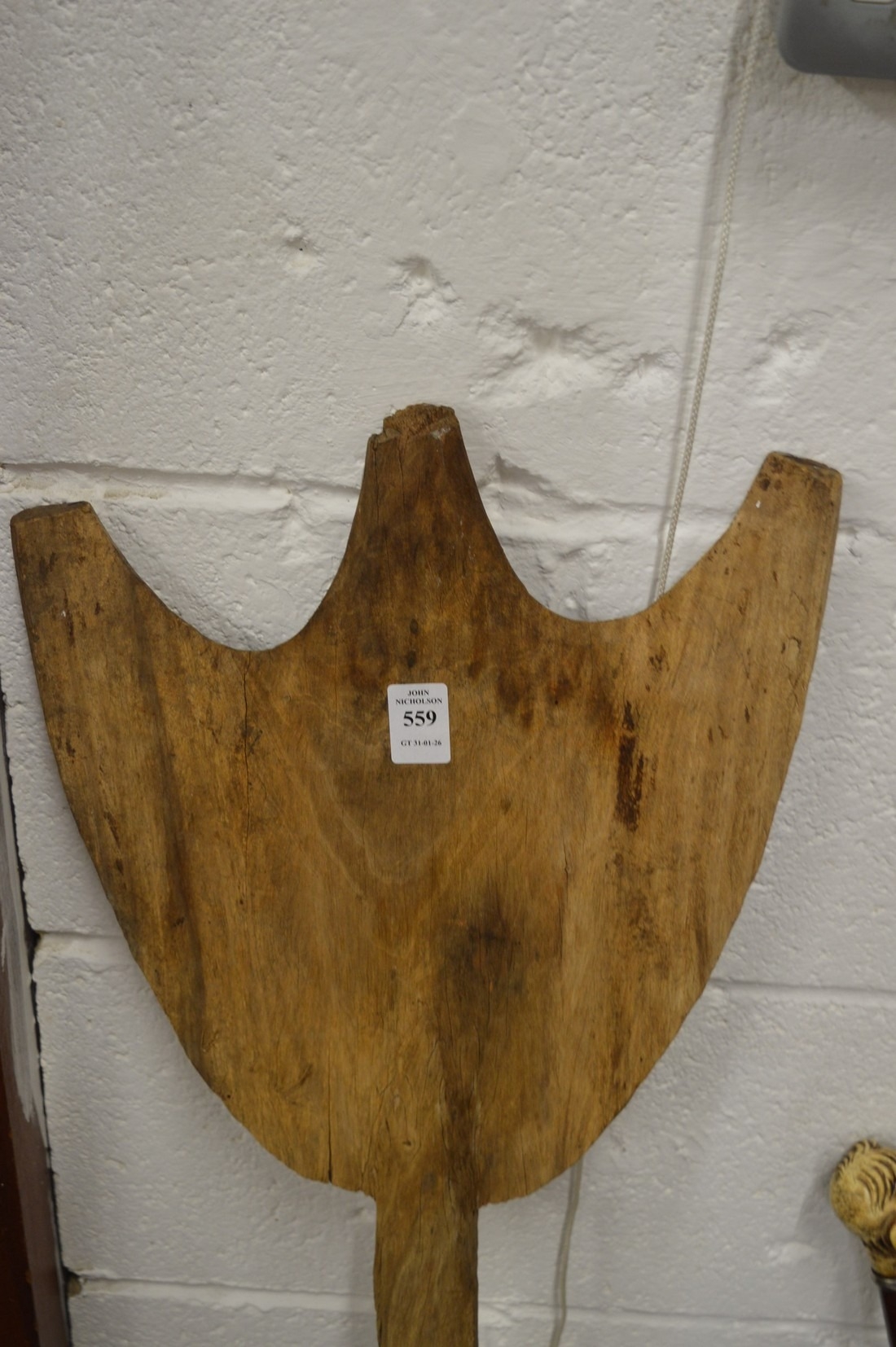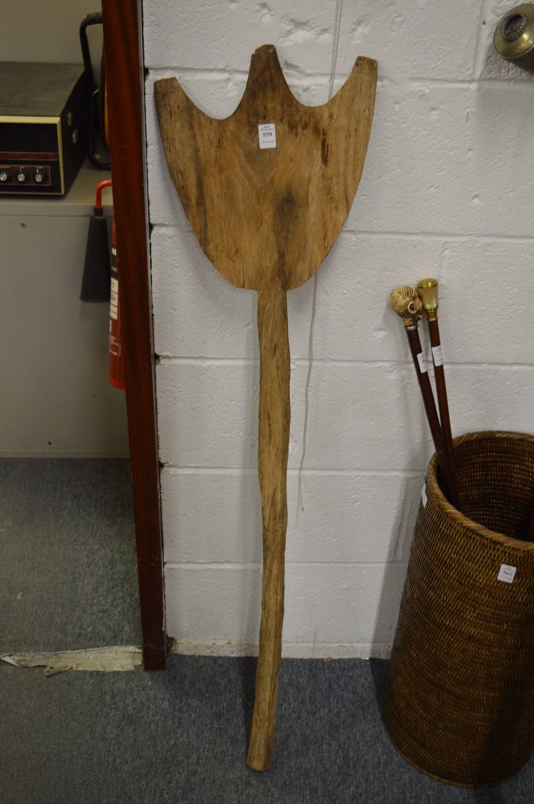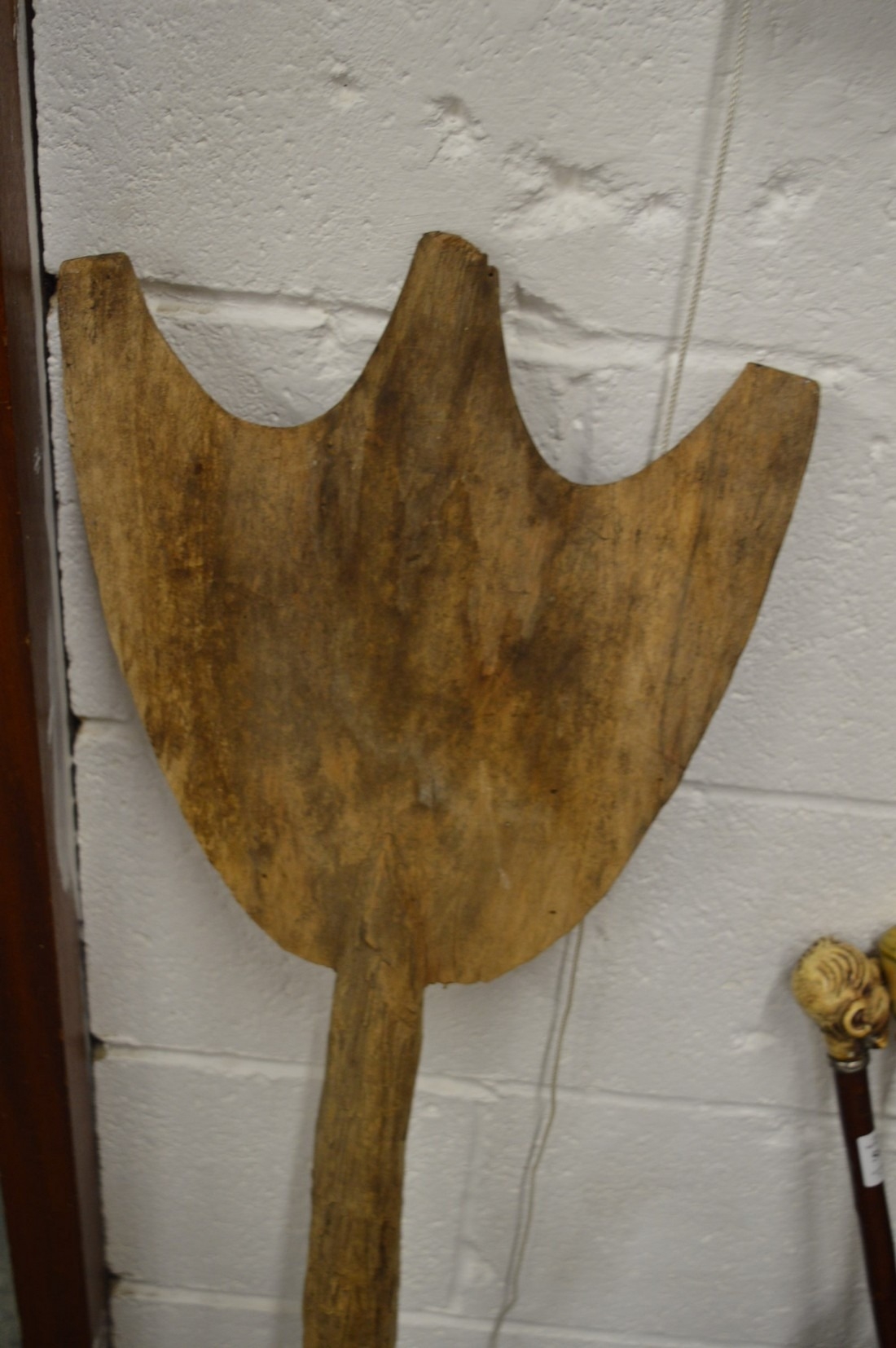 A carved wood dance paddle, possibly Aboriginal.