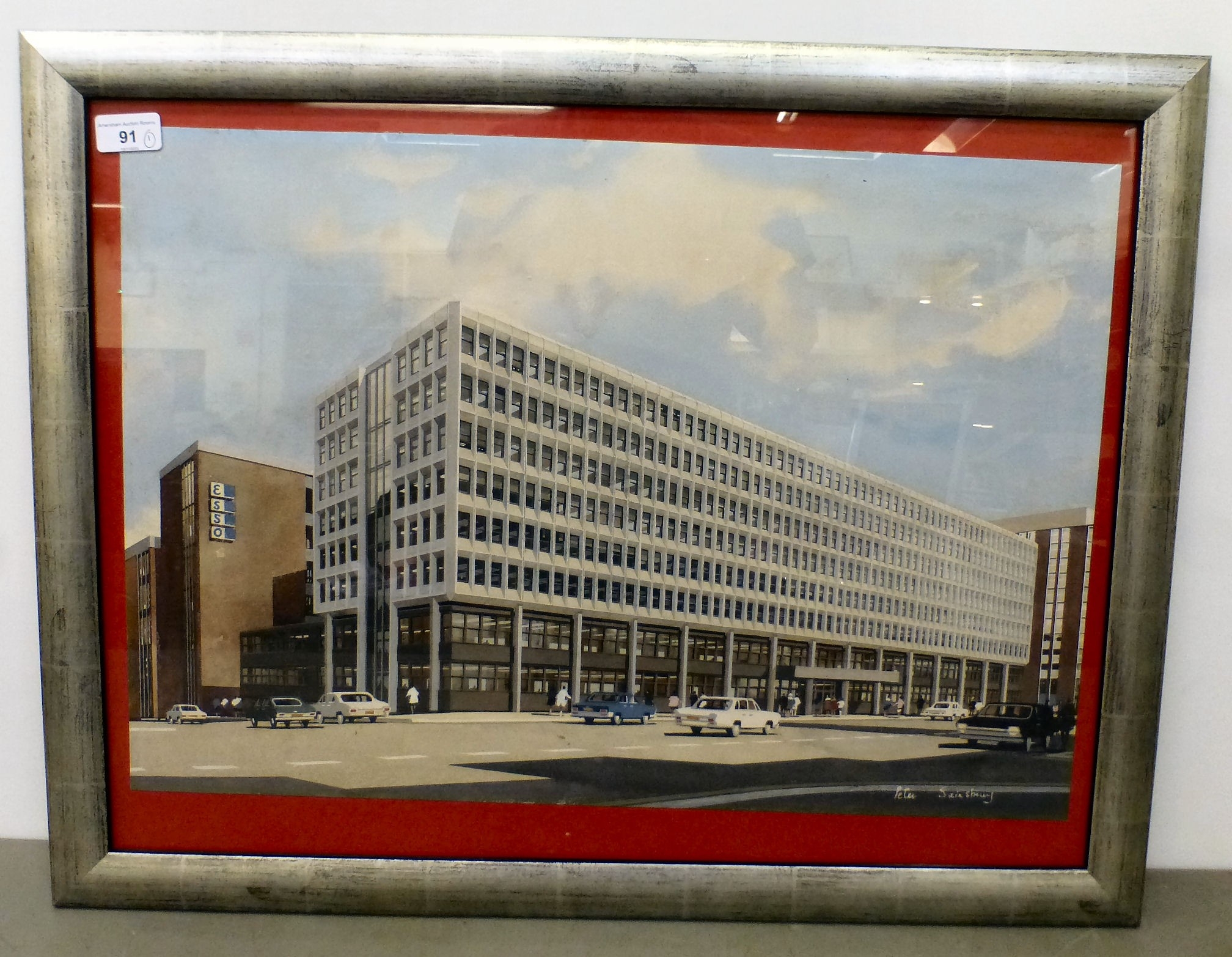 Peter Sainsbury - an architectural study watercolour bears a signature 15" x 23" framed