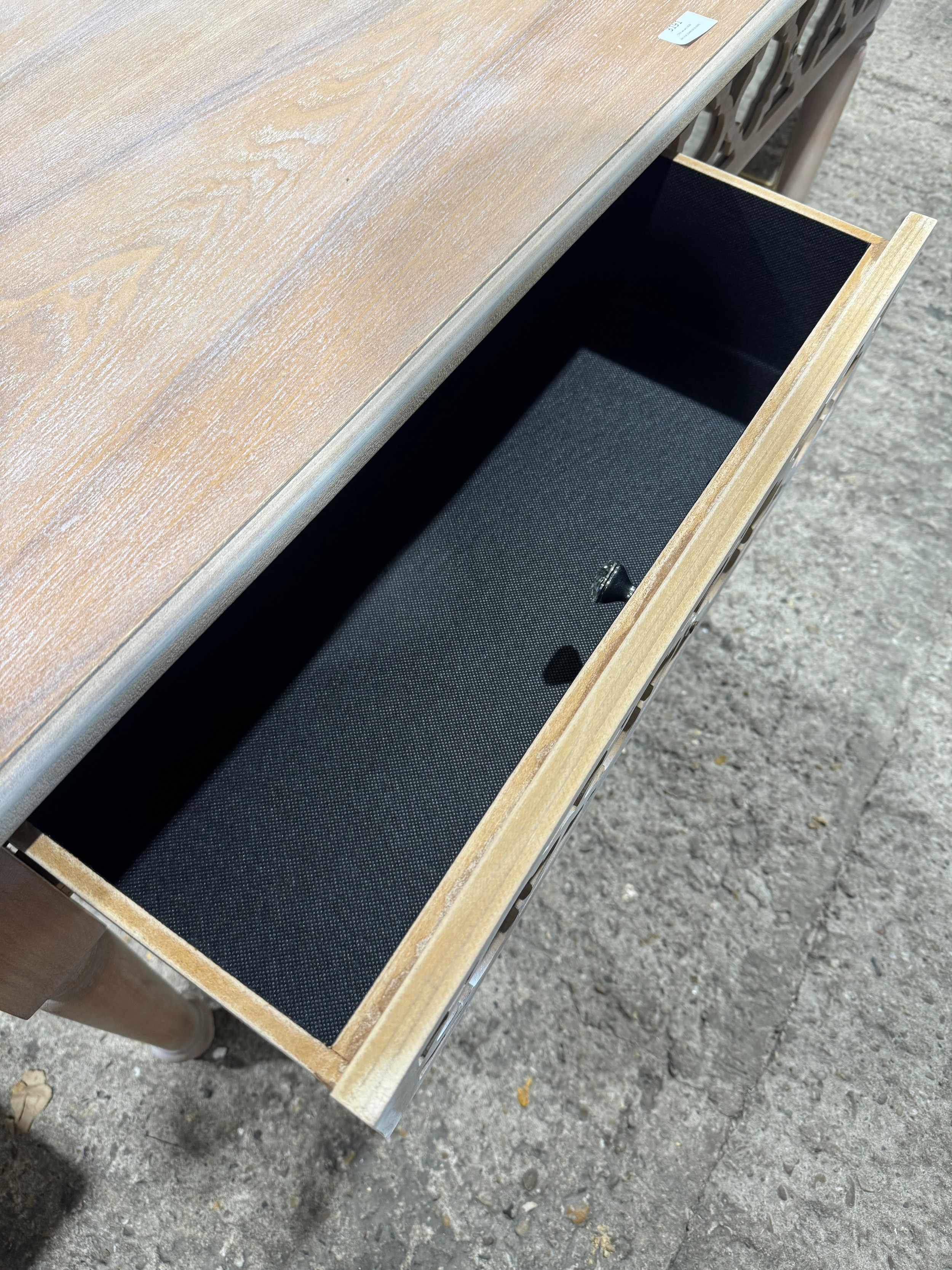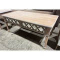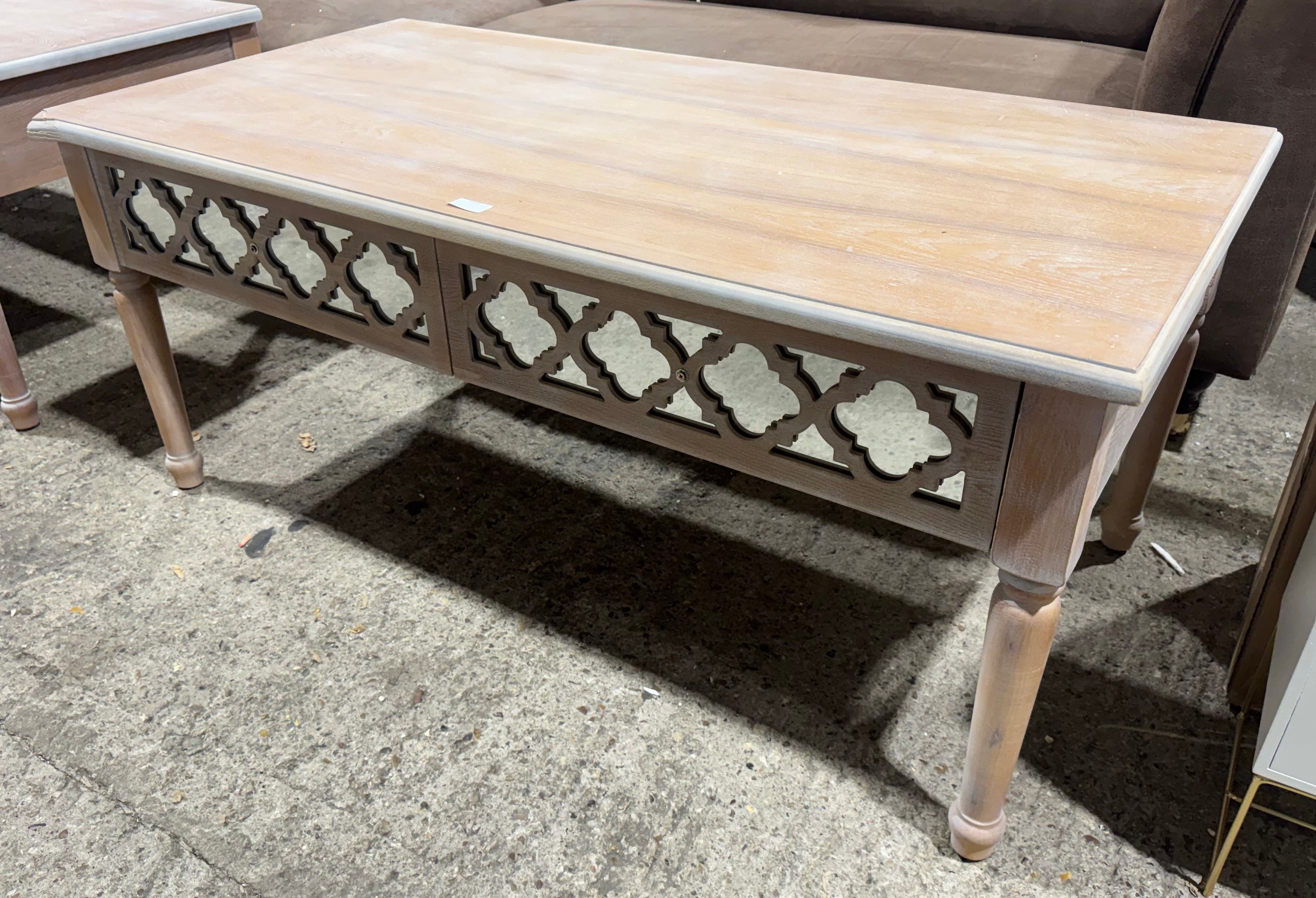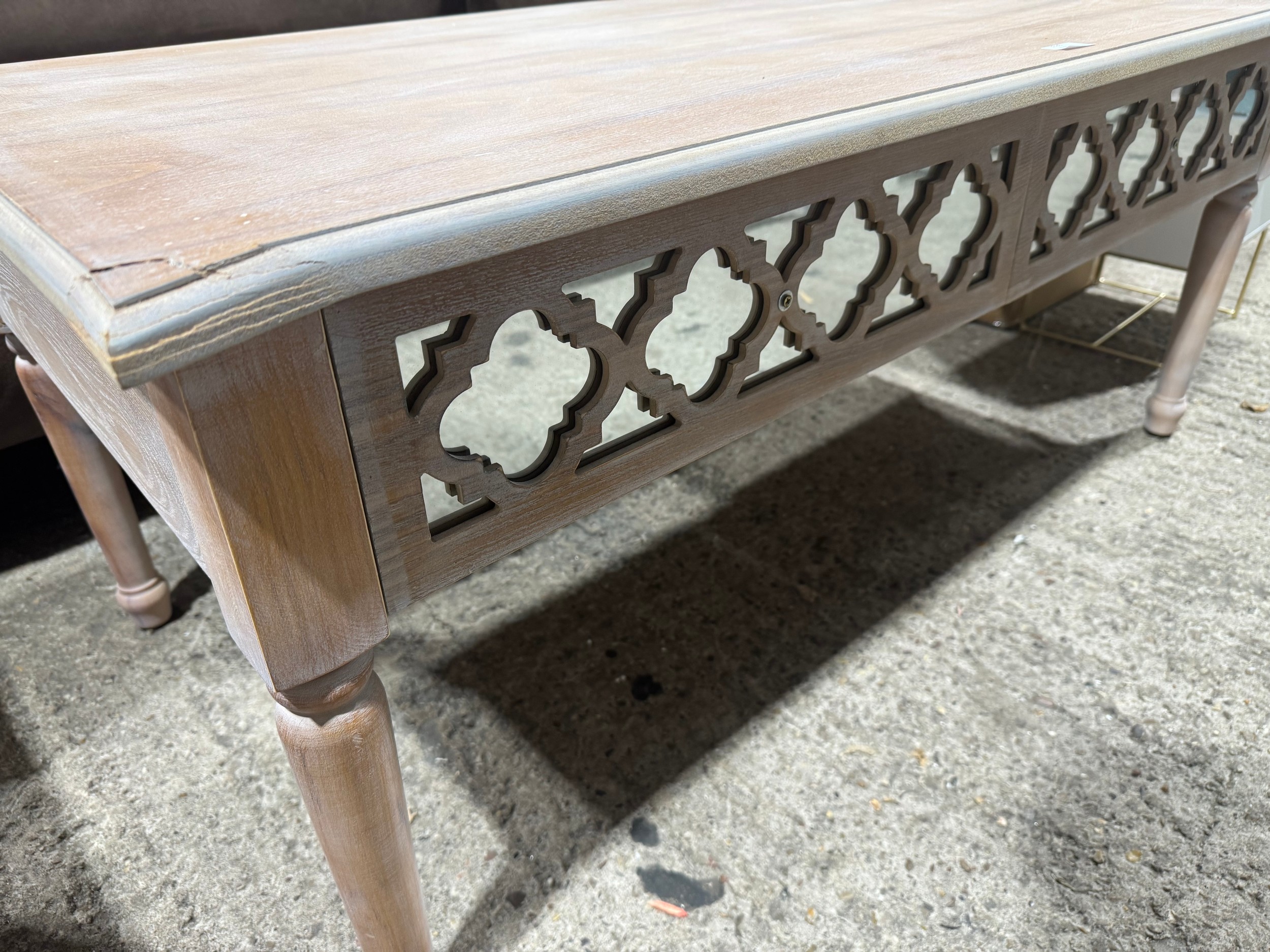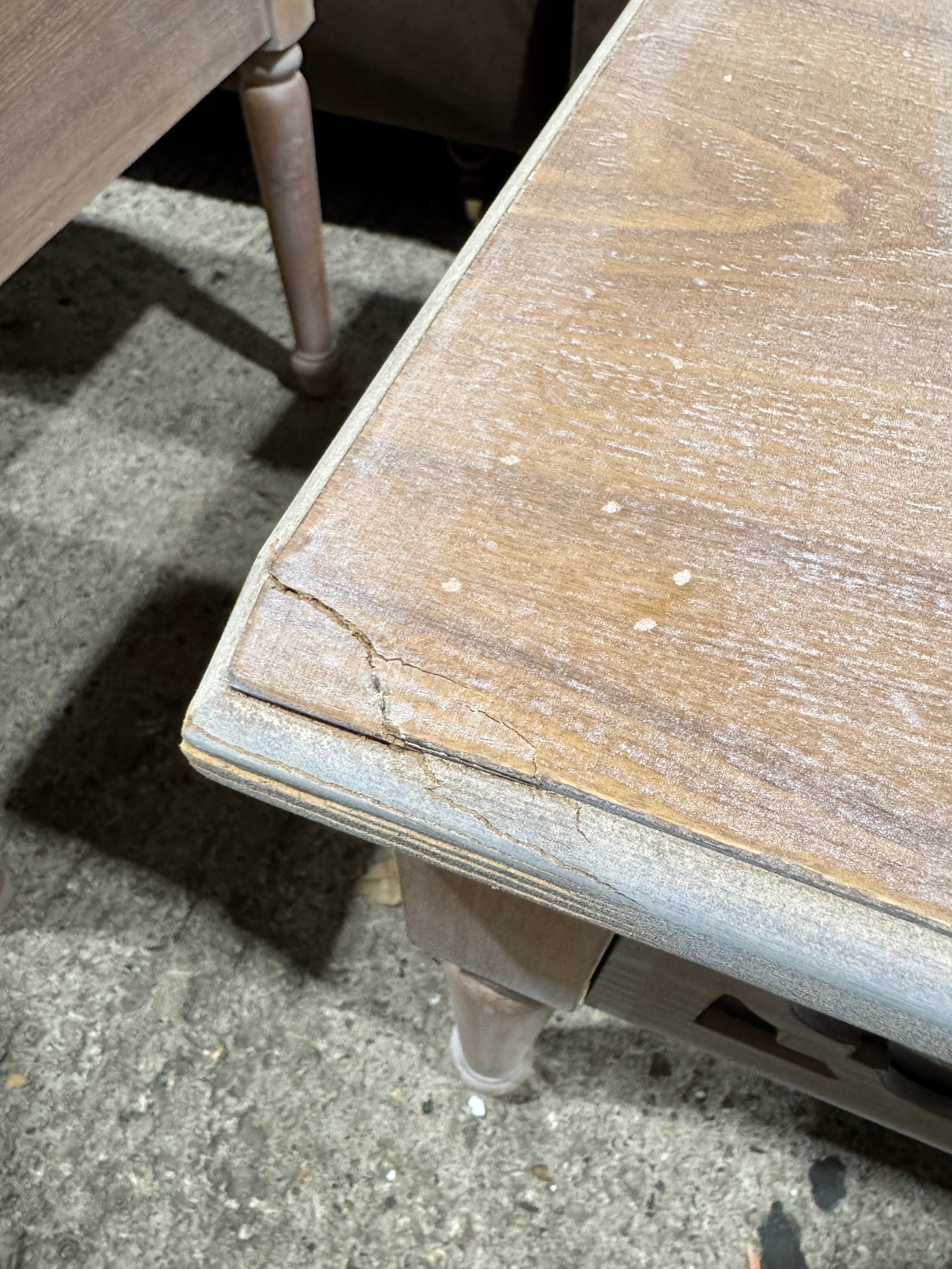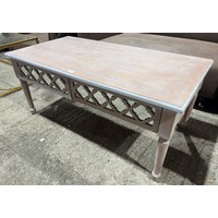 A wooden lattice two drawer coffee table (damaged)