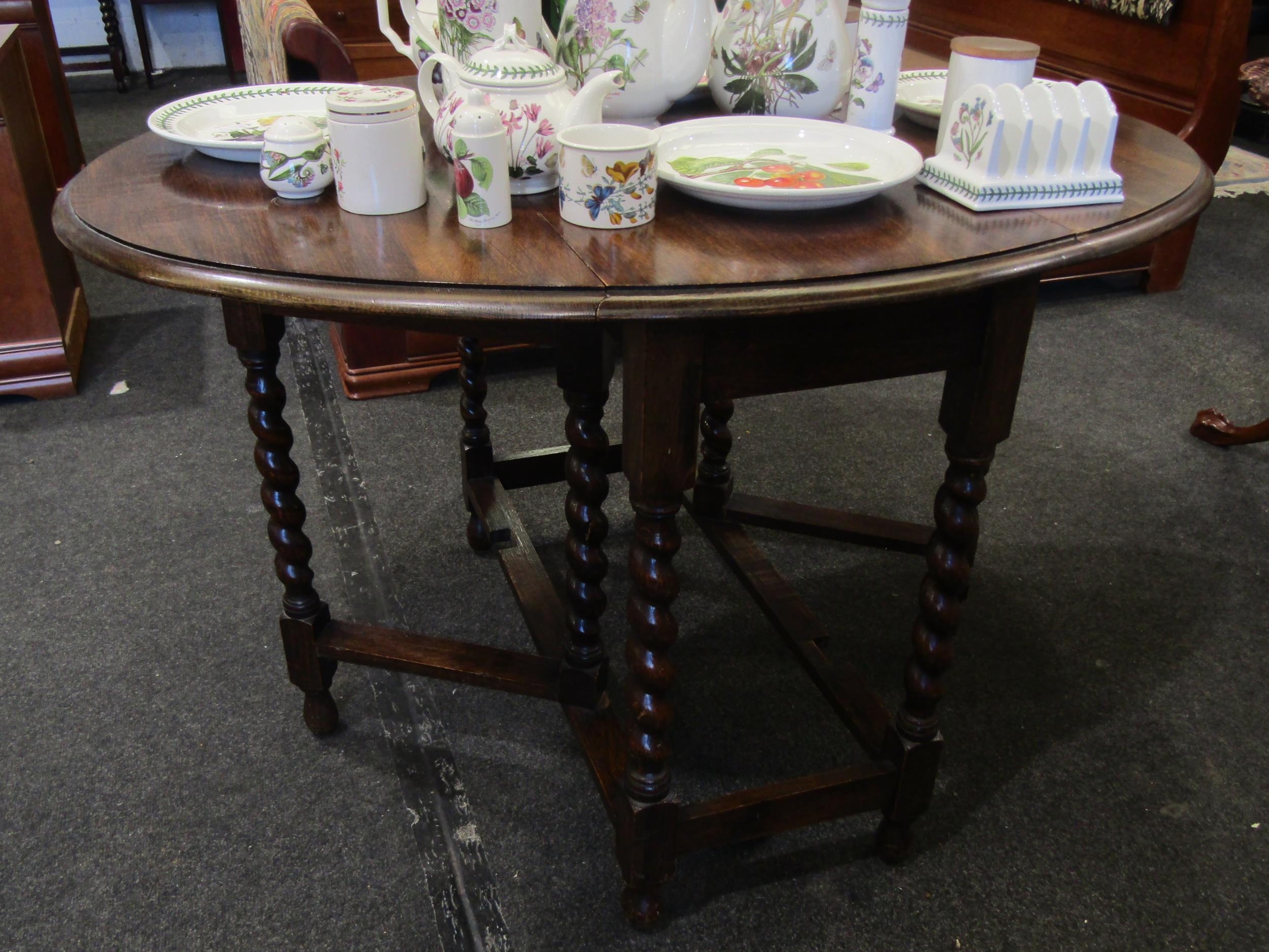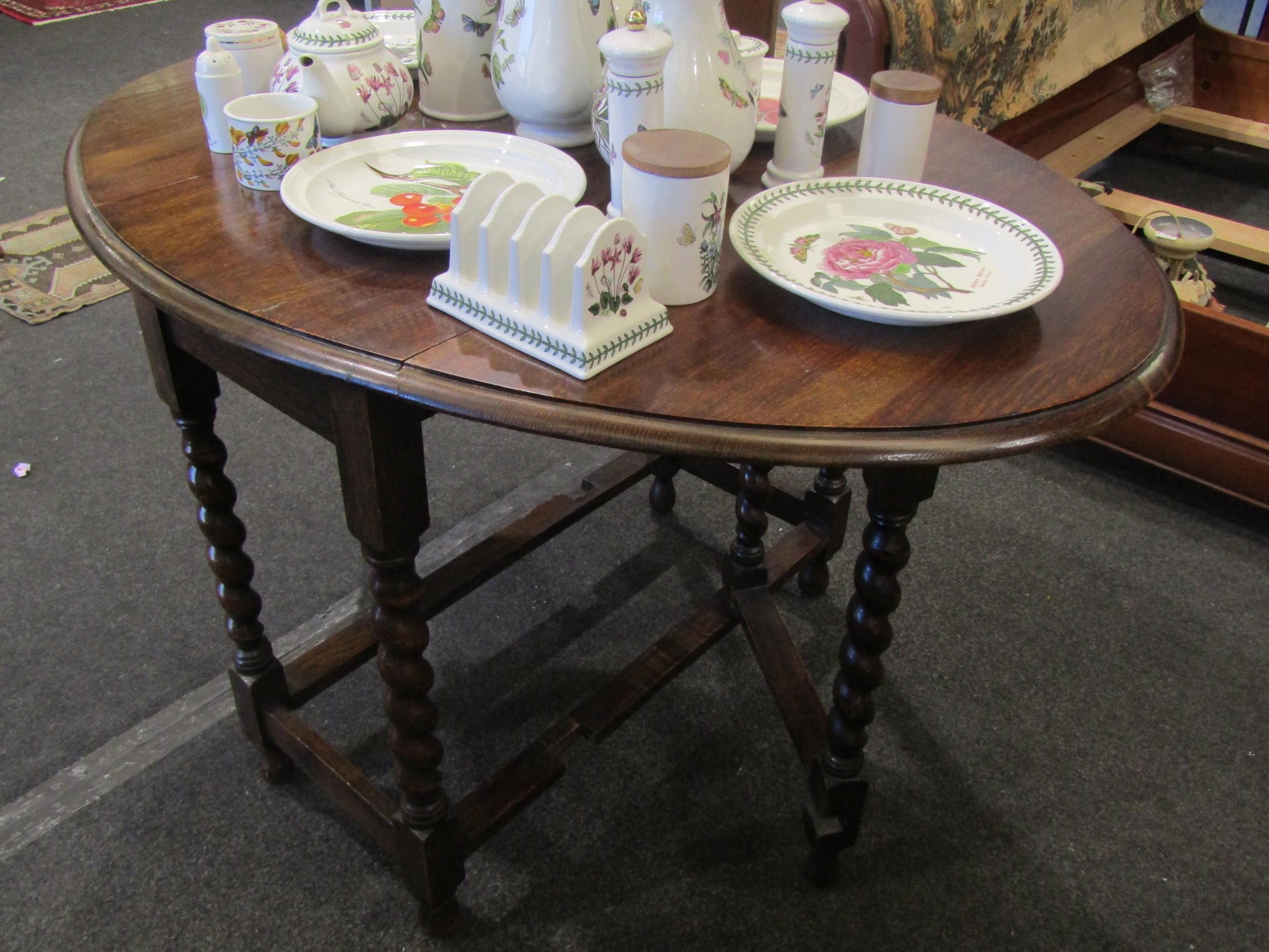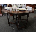 An early 20th Century oak oval top gateleg table on barley twist legs, 47" long x 35" high