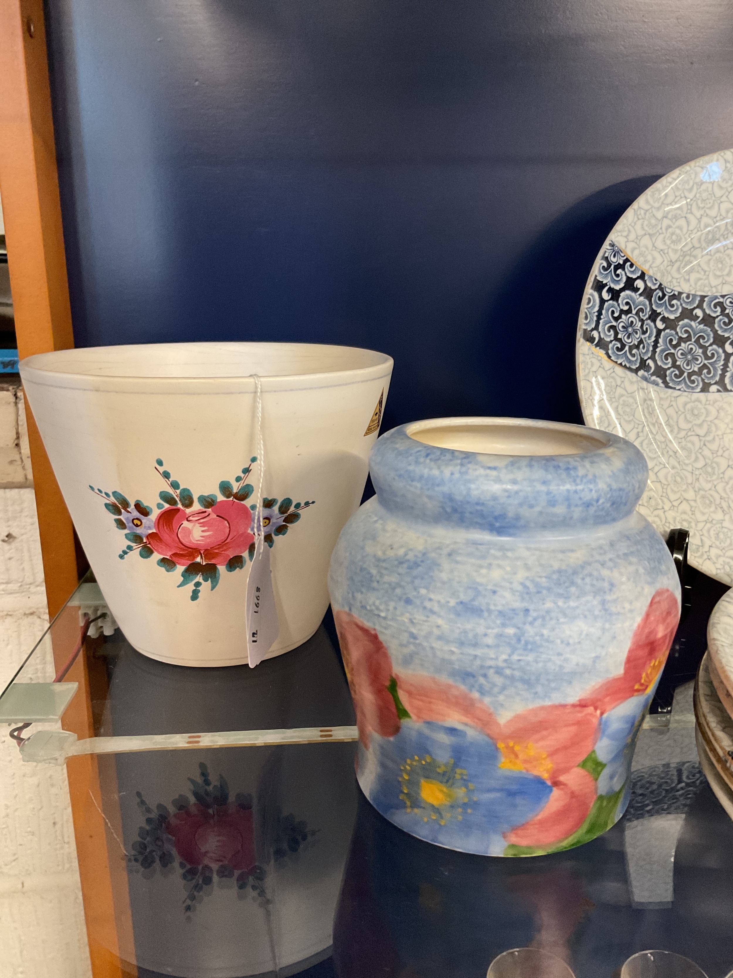 A Dutch jardiniere together with an early Radford Burslem art deco hand painted pottery vase