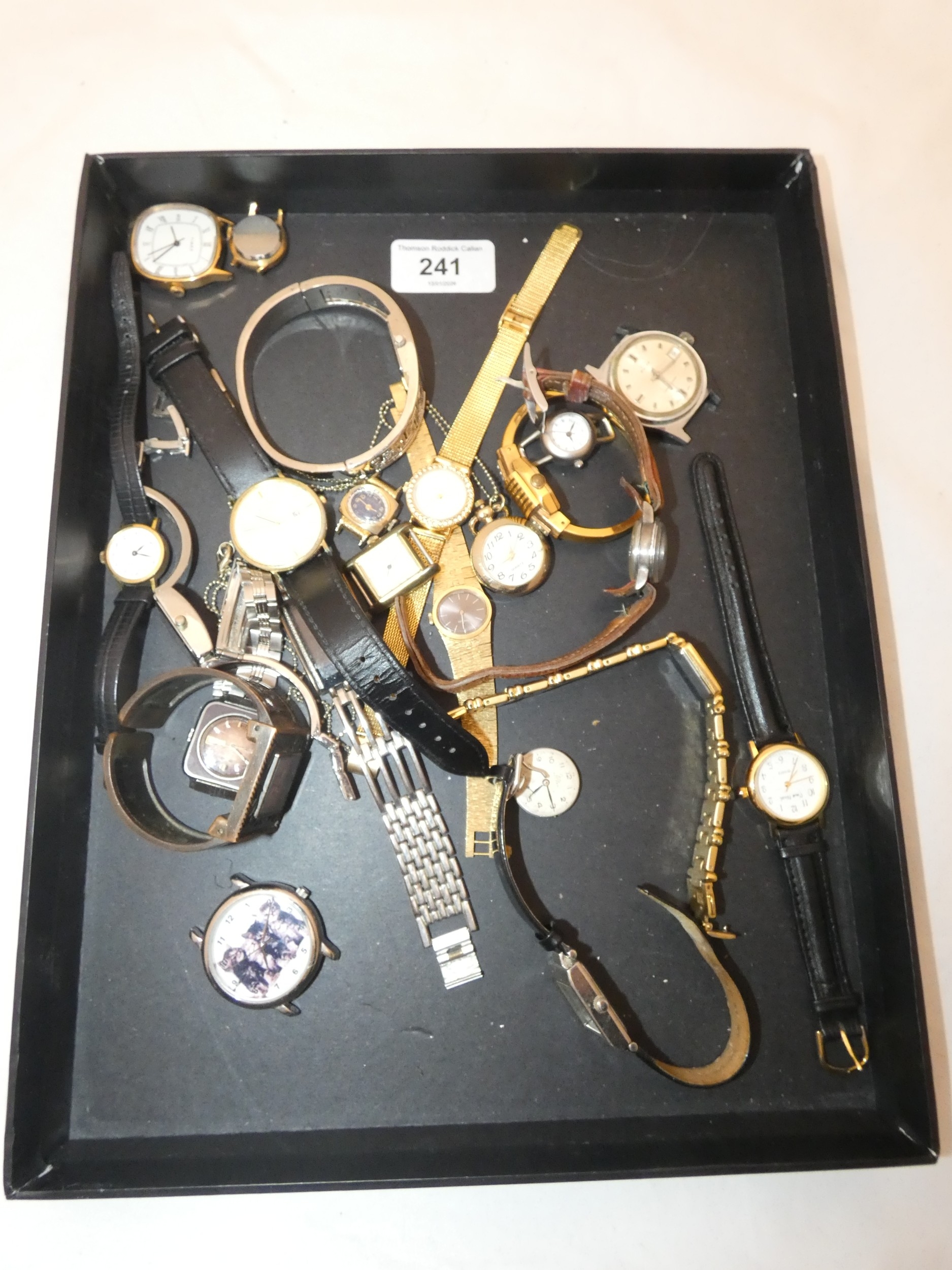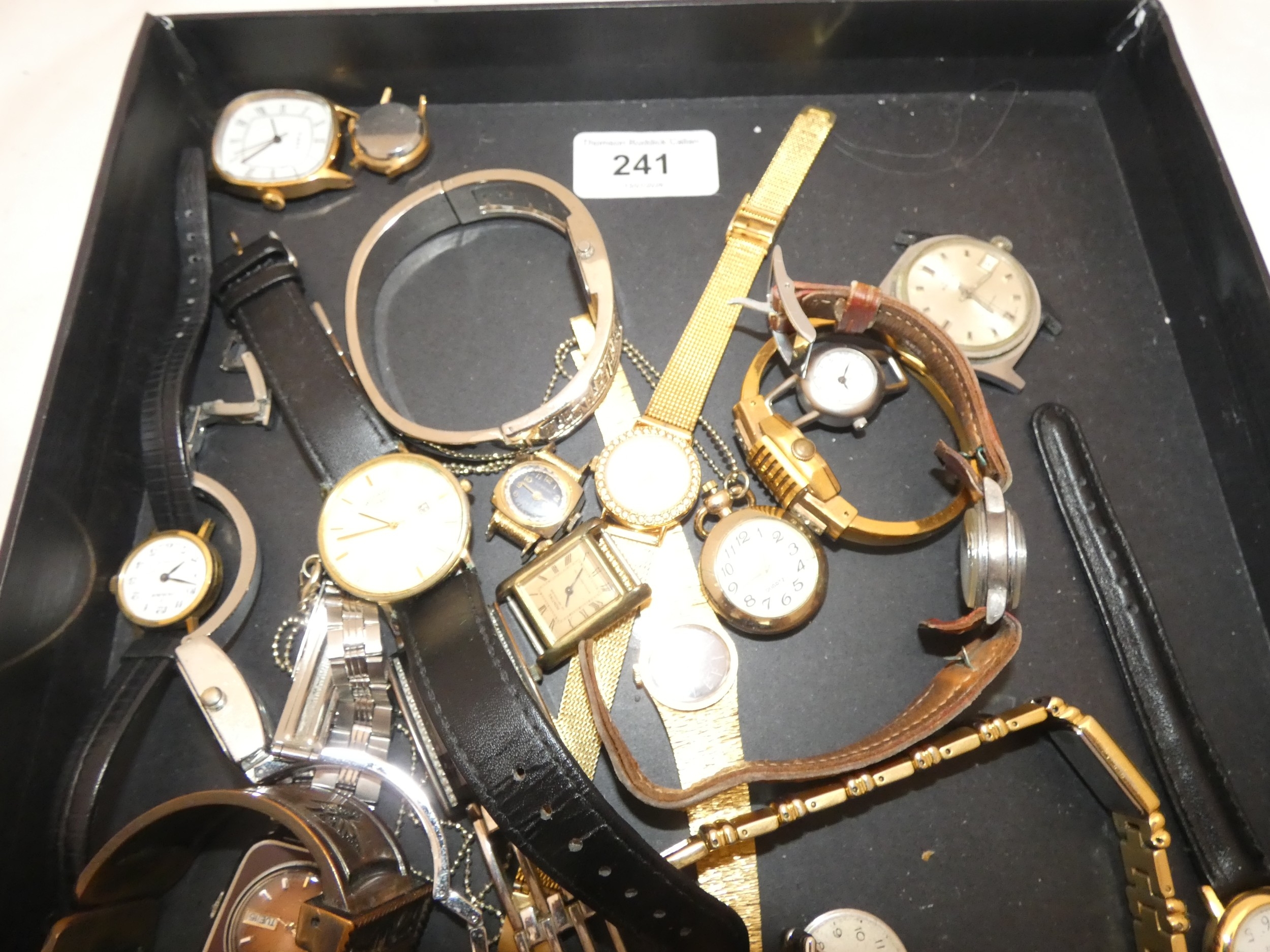 Tray containing ladies' and gents' wristwatches to include Rotary dress watch, Buler antimagnetic wristwatch etc.