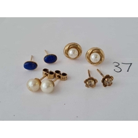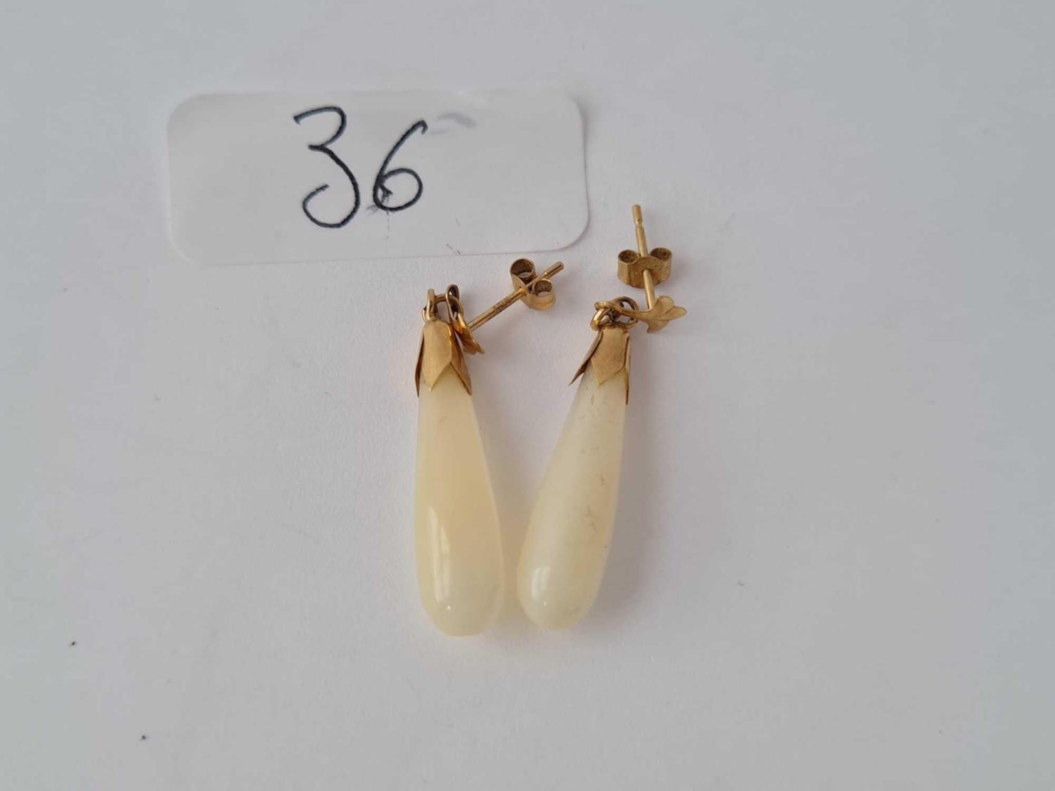 A pair of M.O.P gold top earrings