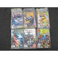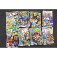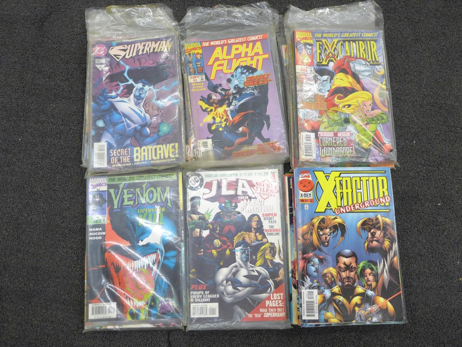 A collection of Marvel and DC comics including The Hulk, X-Men, etc.
