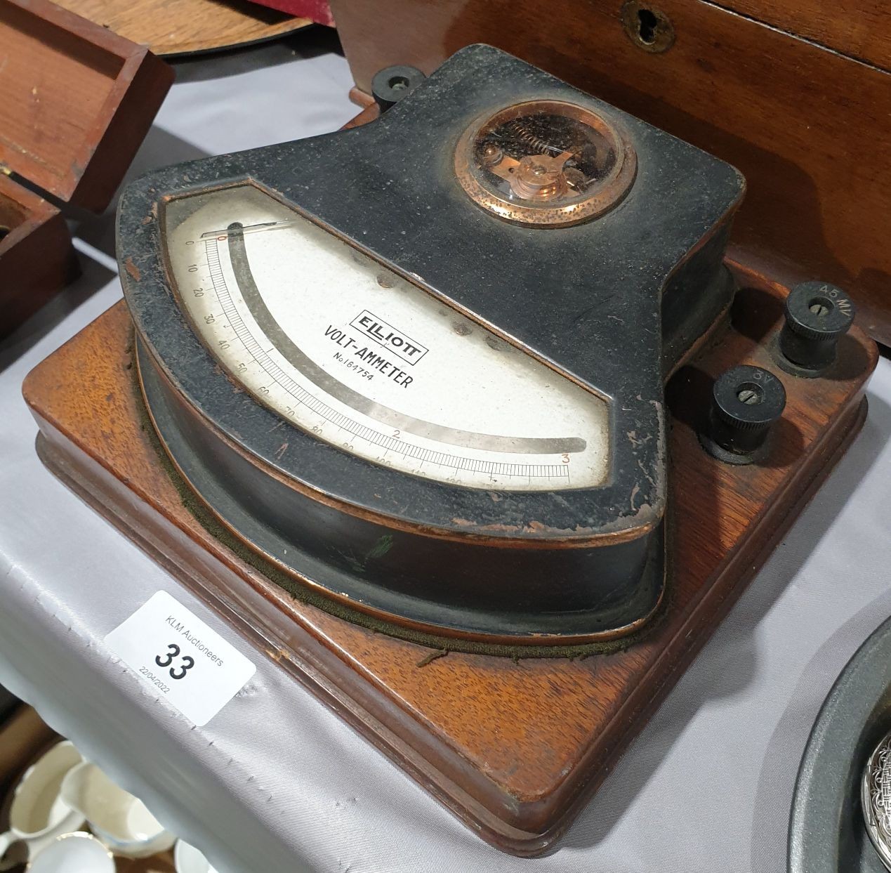 An antique Elliot Volt-Ammeter, width 7.5". UK shipping £14.