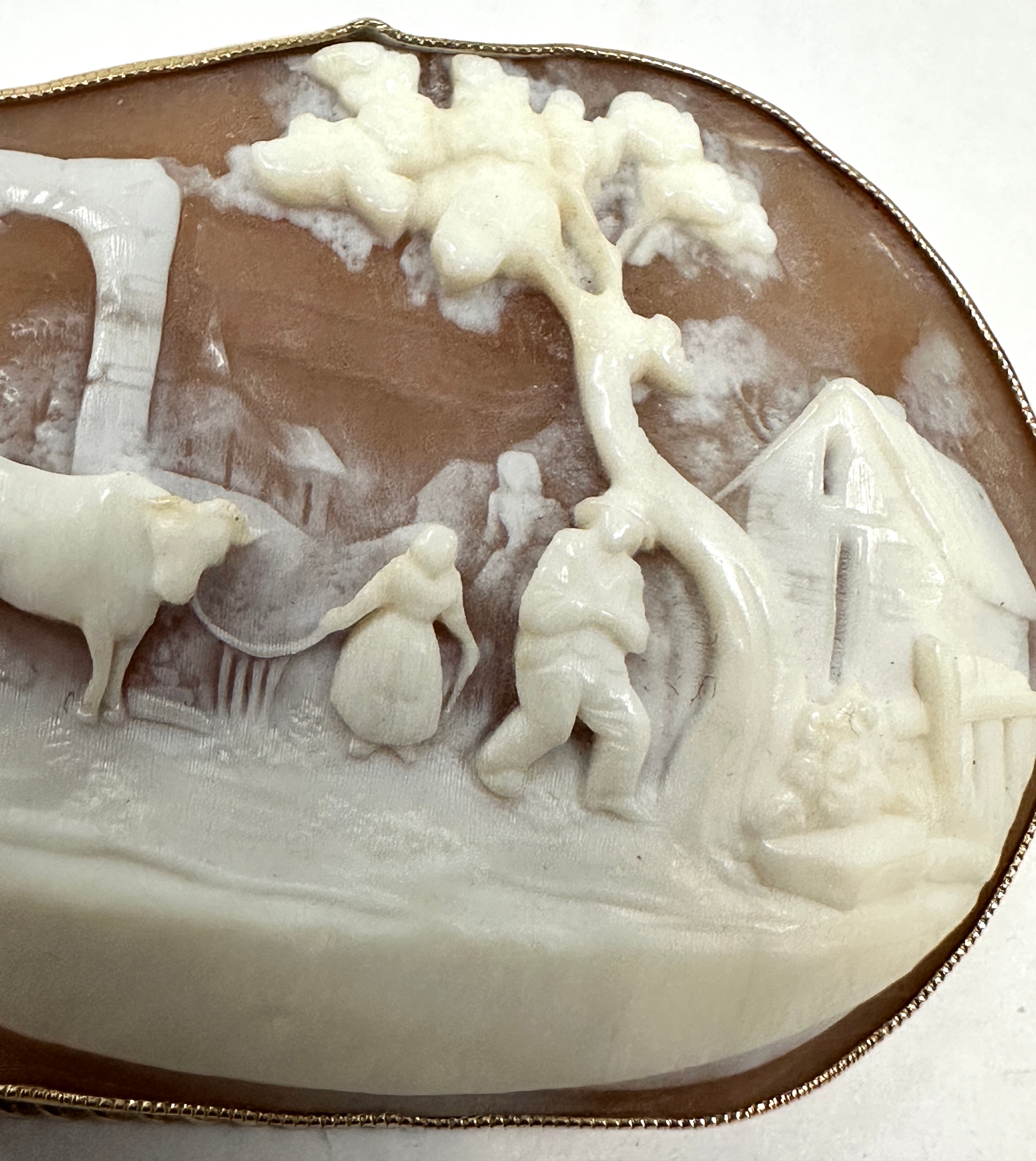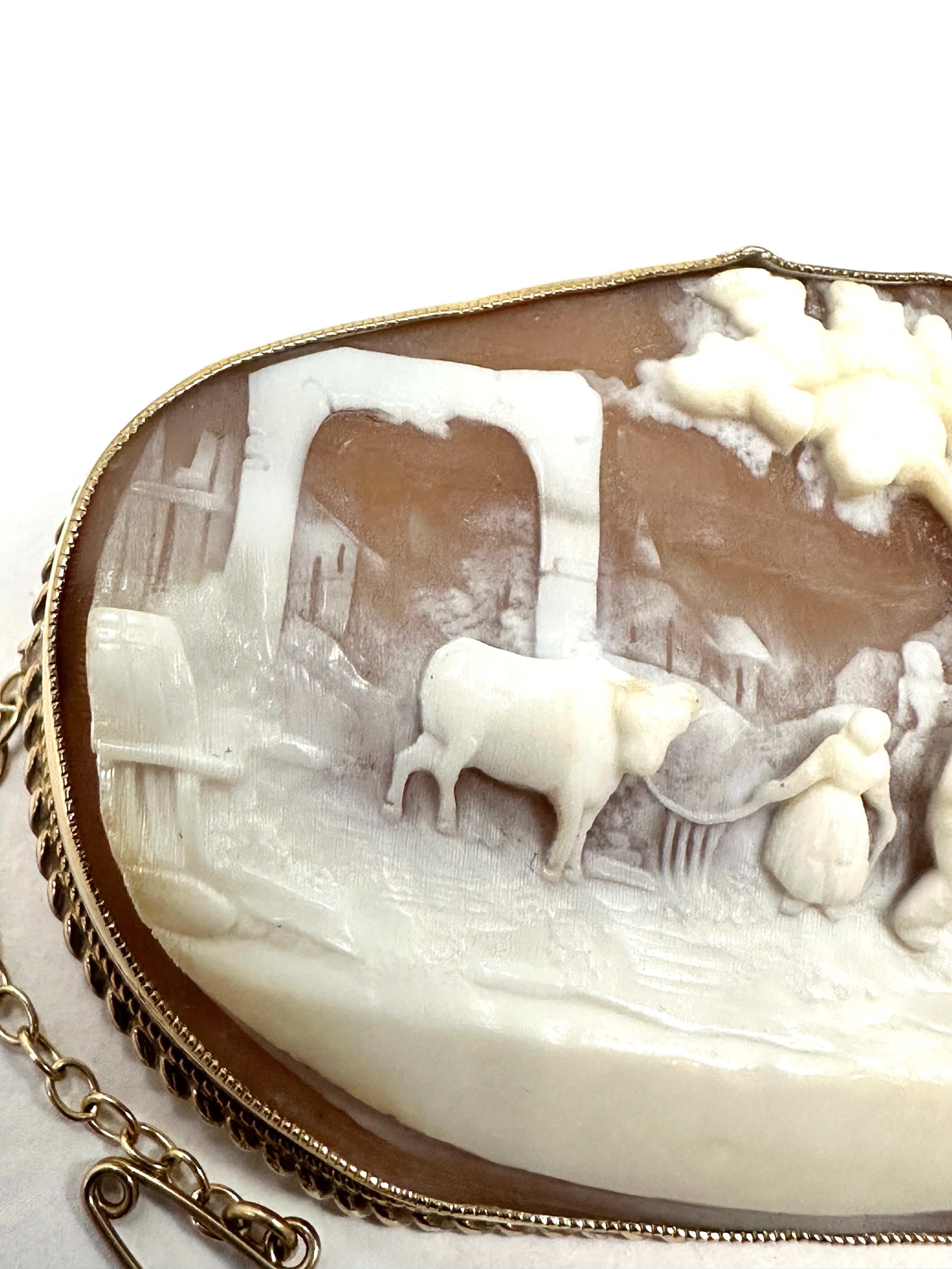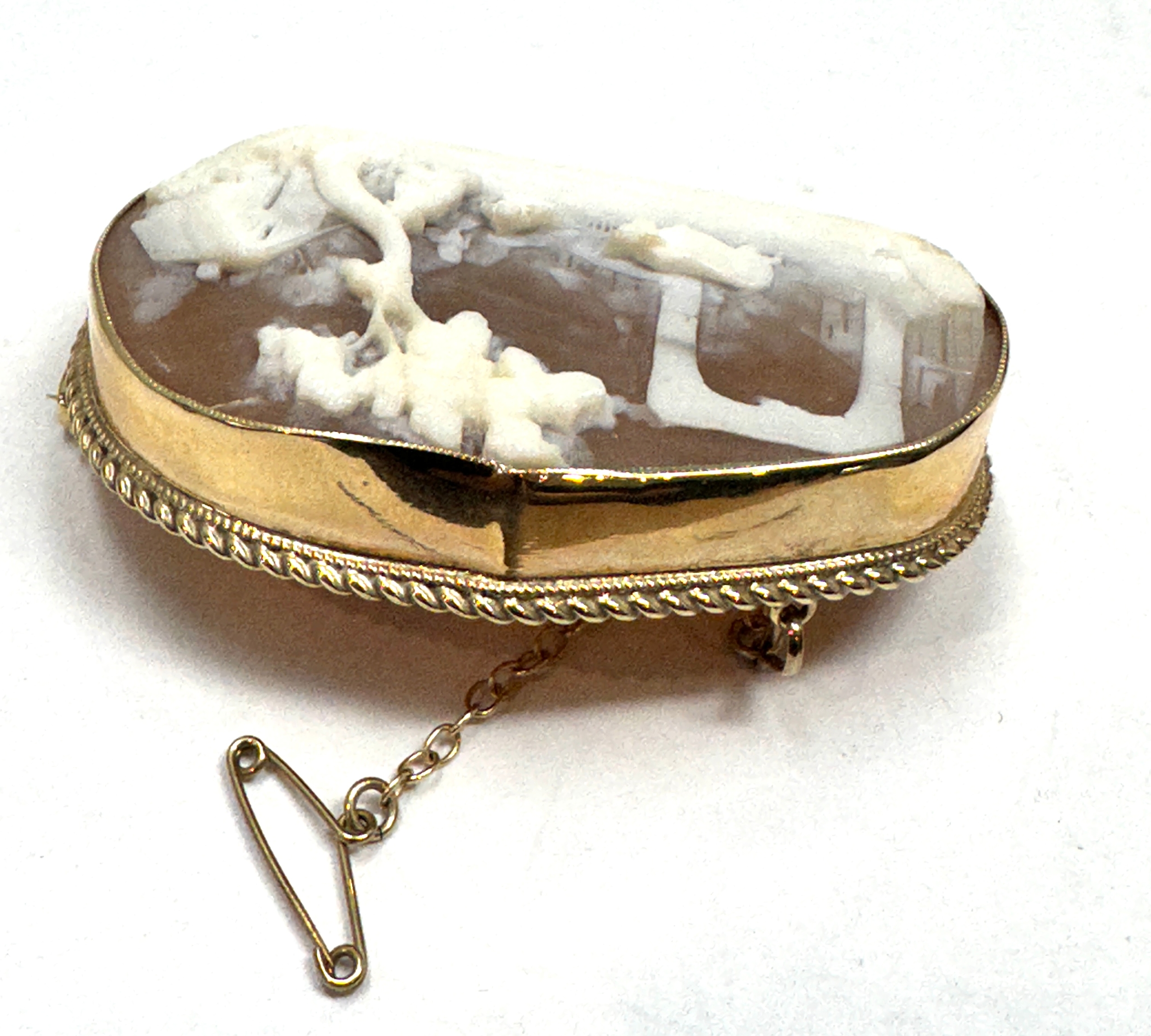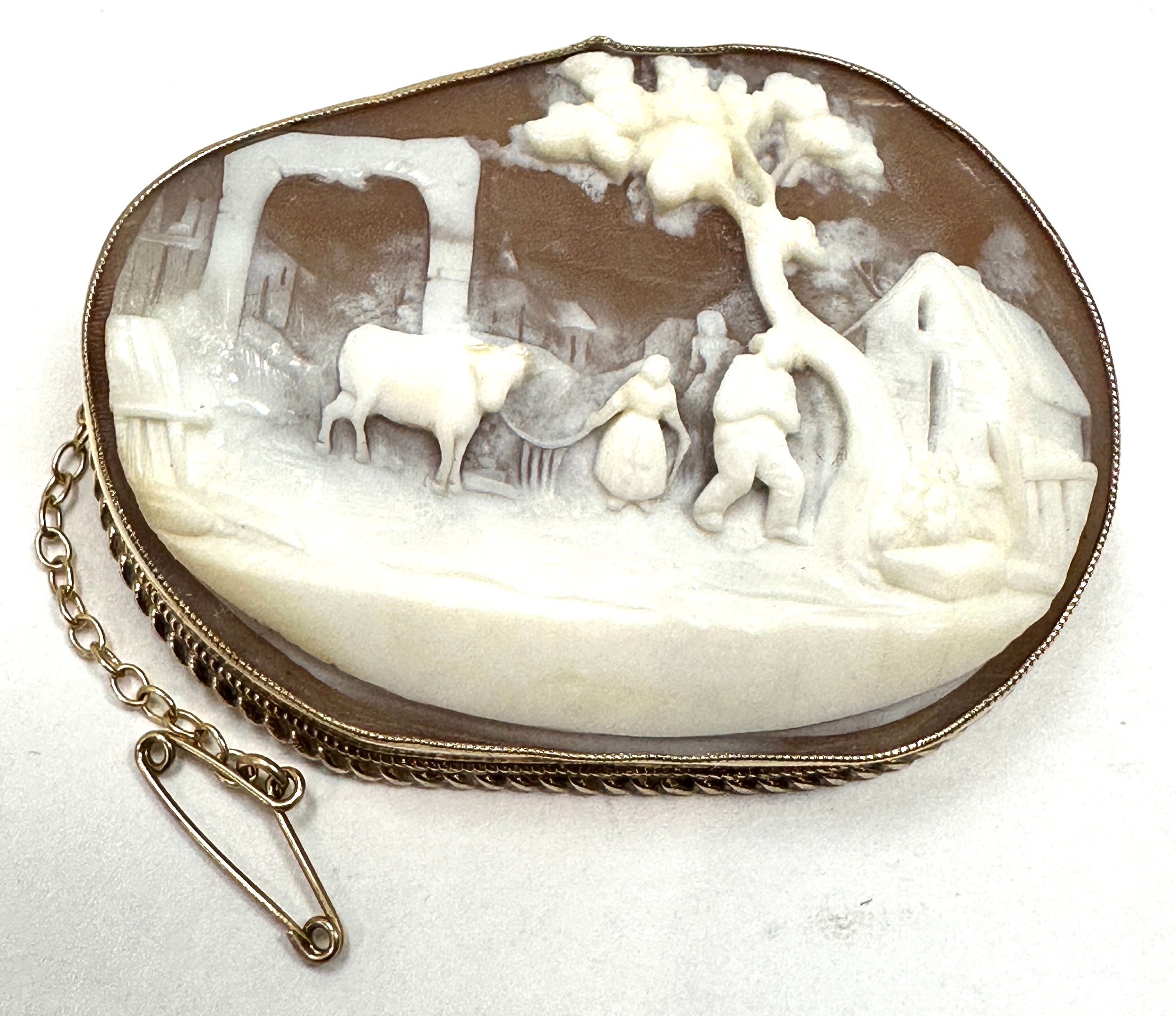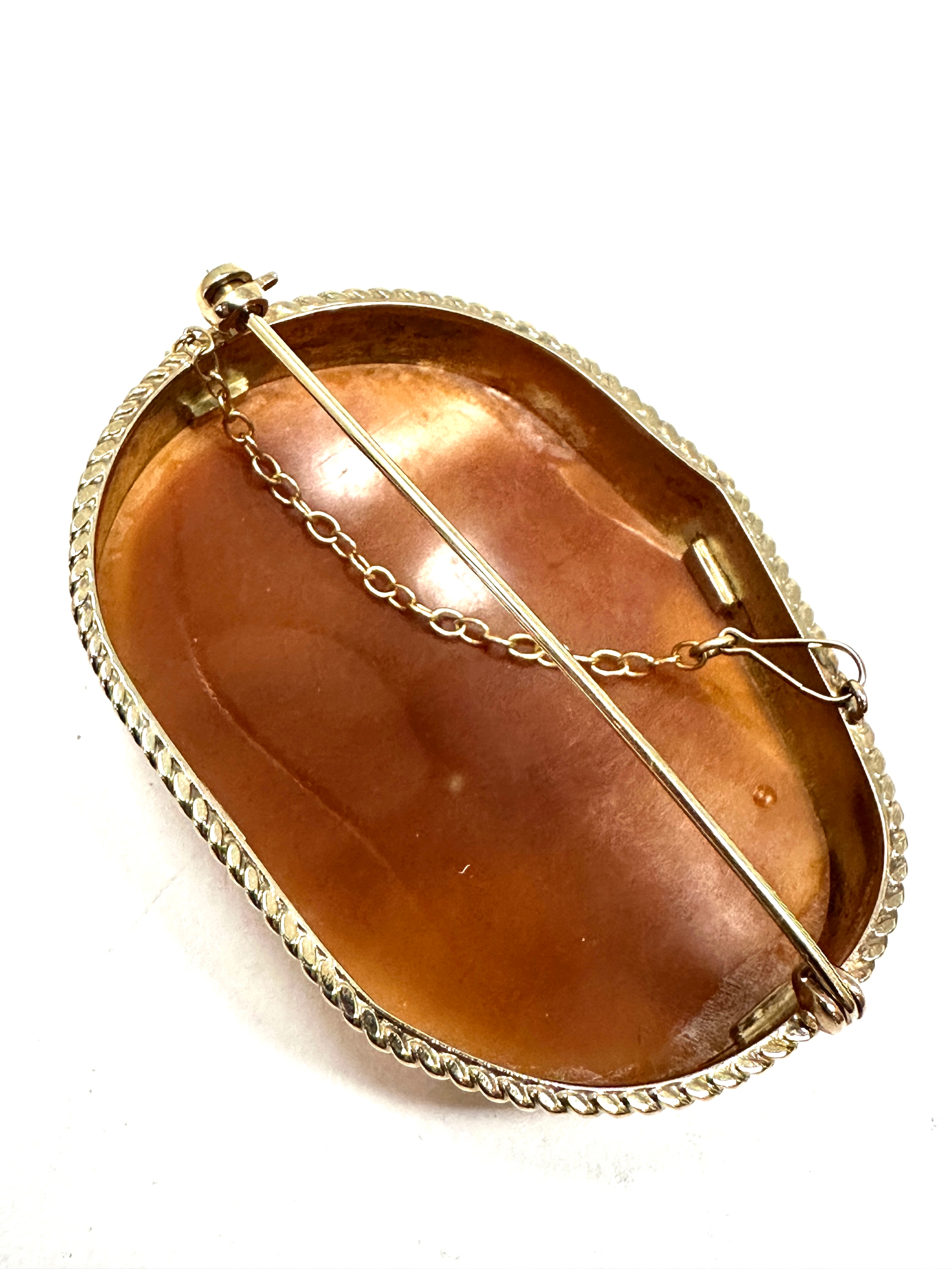 large 9ct gold cameo brooch measures approx 5.2cm by 3.8cm weight approx 14g