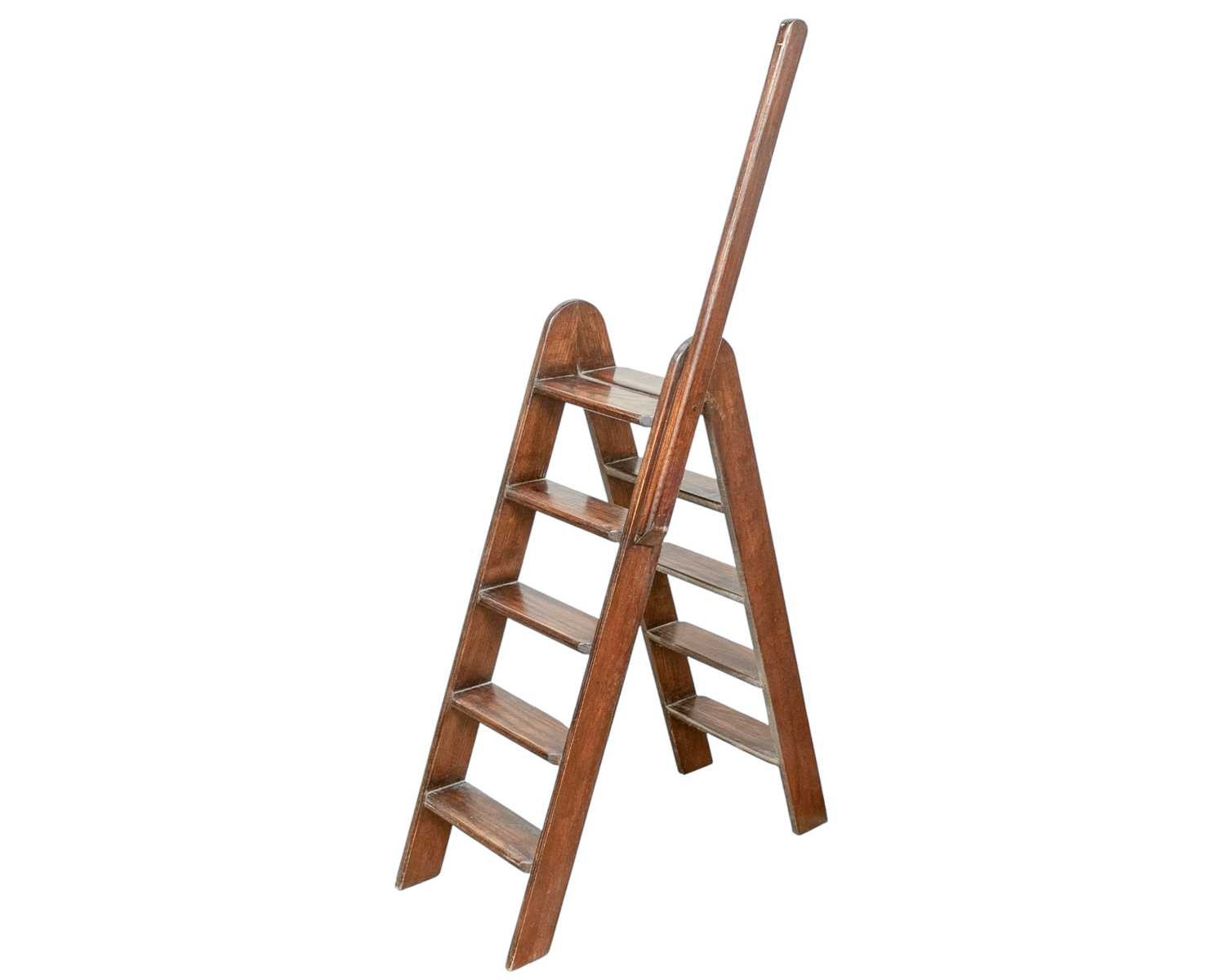 A set of elm folding library steps. Circa 1900, with two sets of five treads and a pole, height 160cm.