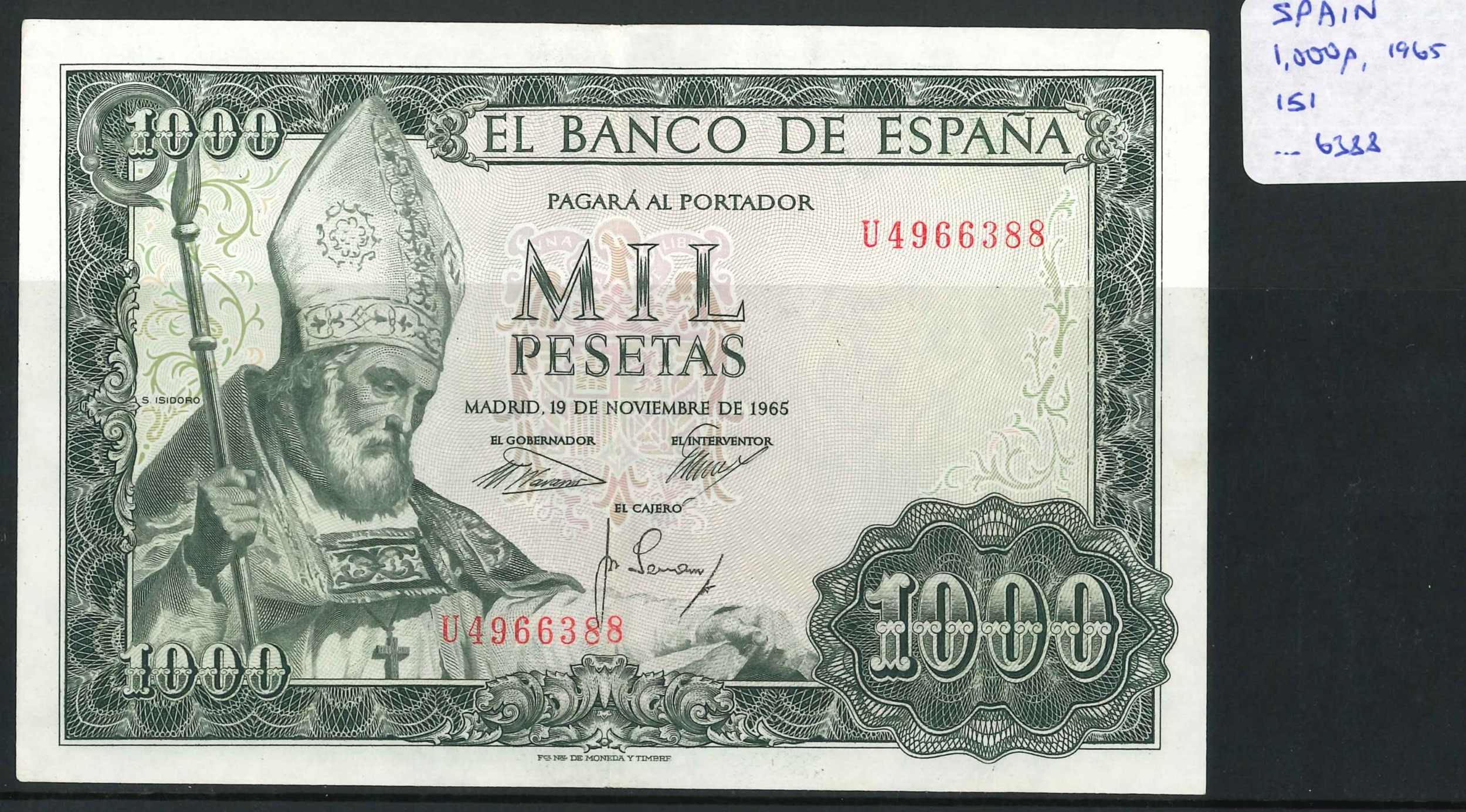 Banknotes; Spain; 1965 (1971) 1,000 pesetas about EF, Krause 151.