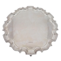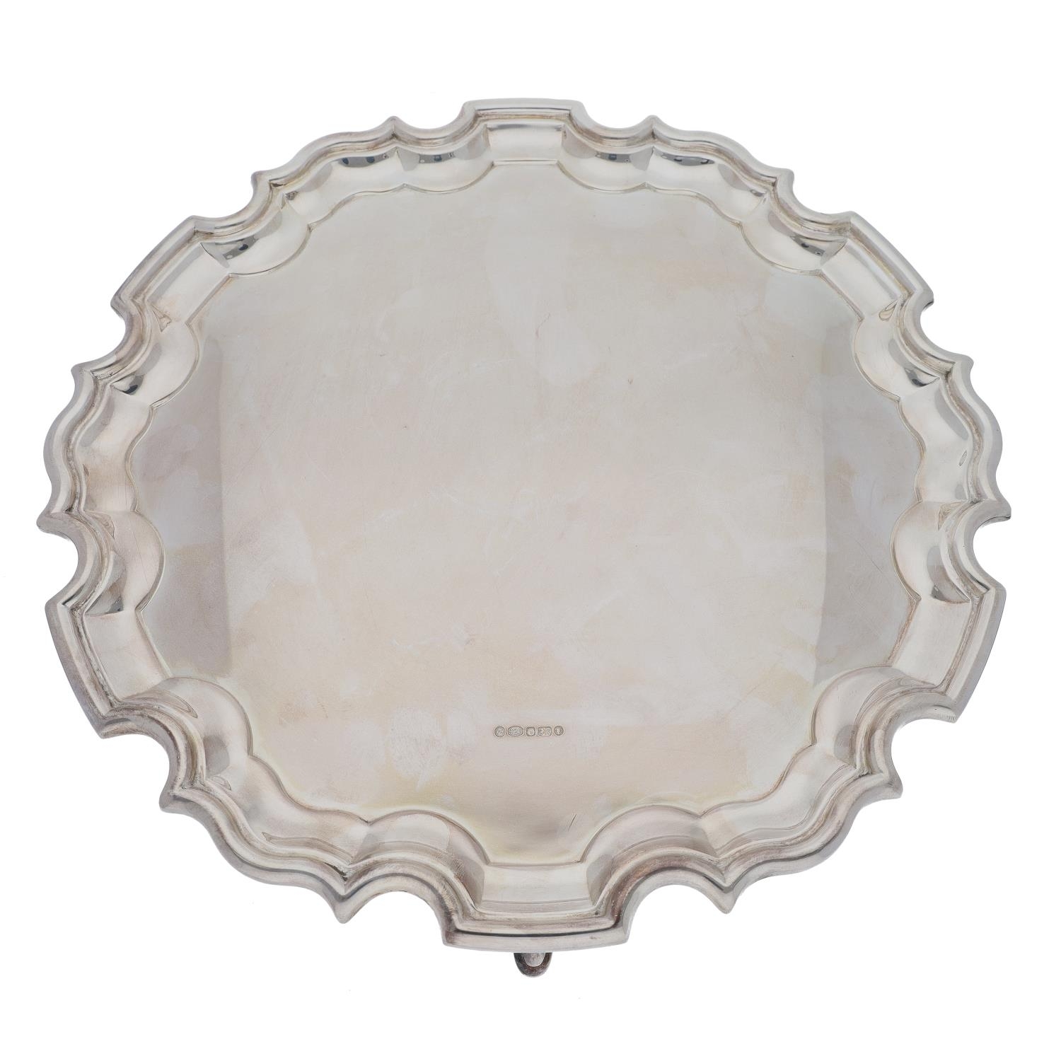 Good modern Francis Howard Ltd silver salver, having a cast moulded edge and raised on three feet, 12" diameter, 1096gm