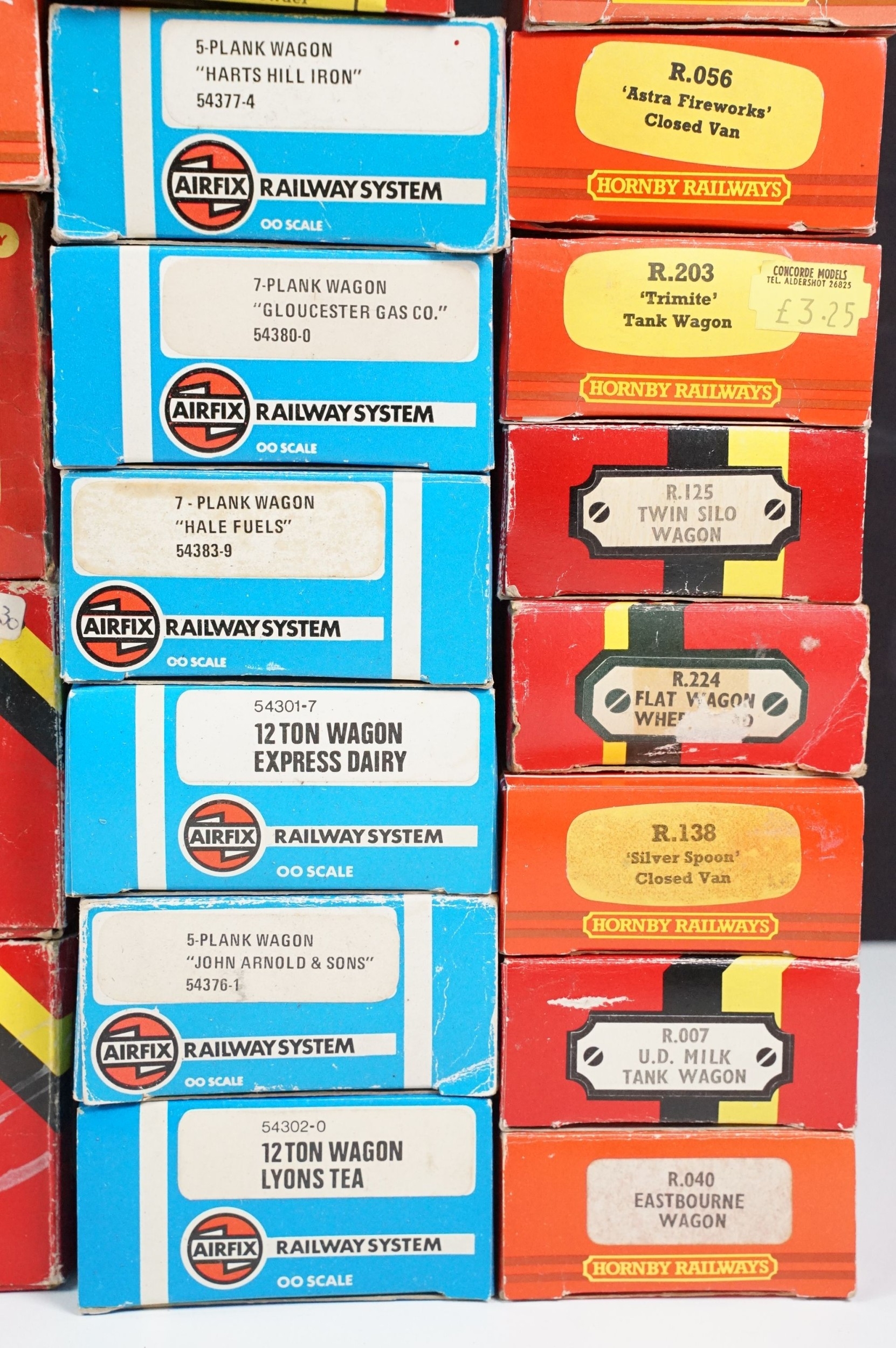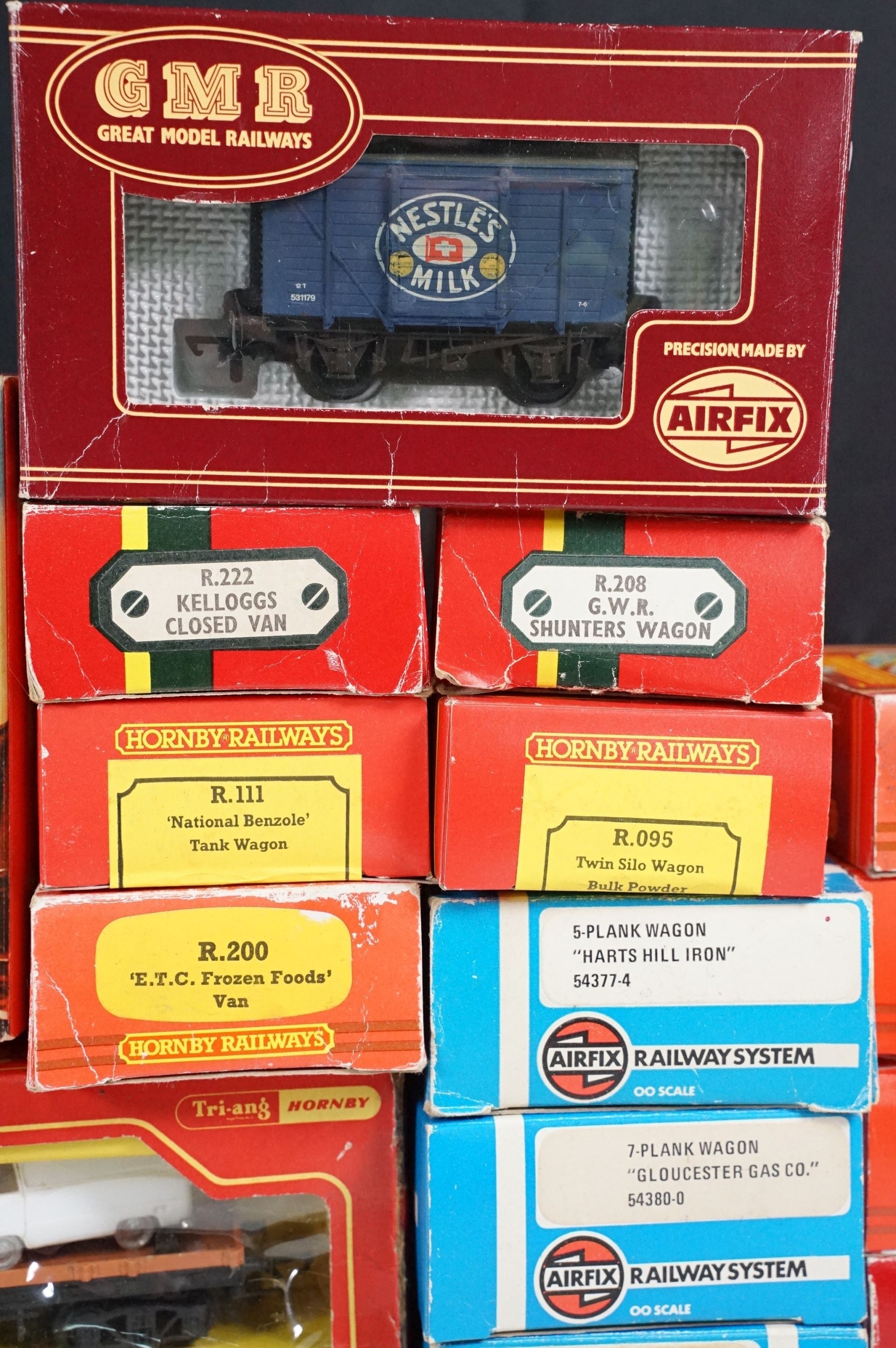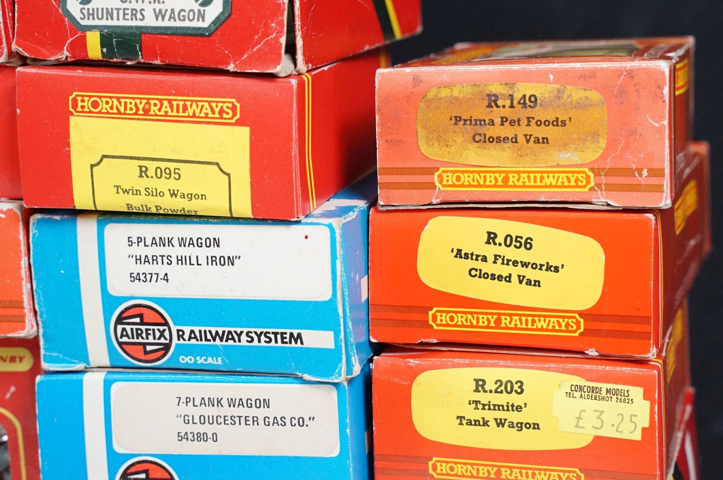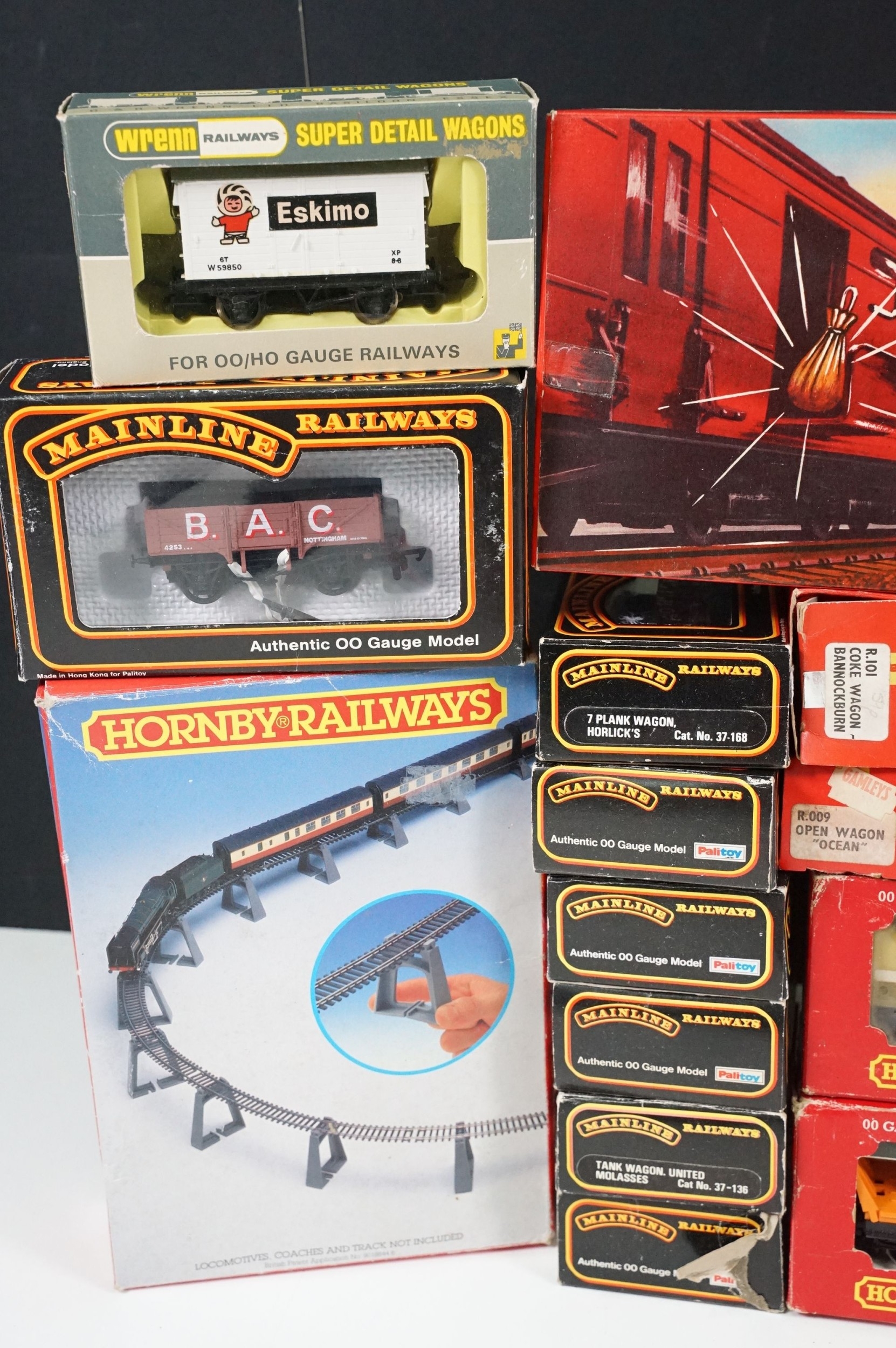 36 Boxed OO gauge items of rolling stock to include Hornby, Palitoy Mainline, Airfix, Lima and Wrenn, a few with incorrect boxes, plus boxed Triang Hornby R402 Operating Royal Mail Coach Set and a boxed Hornby R909 Elevated Track Support Set (38 items)