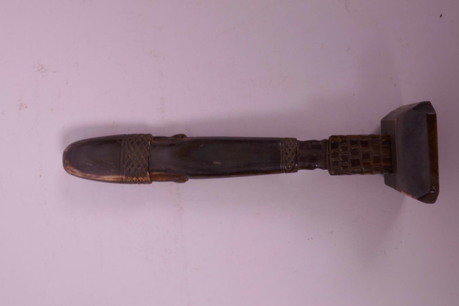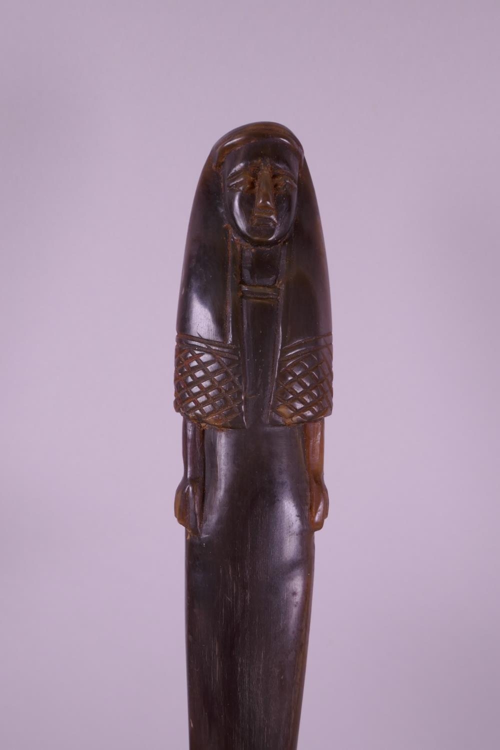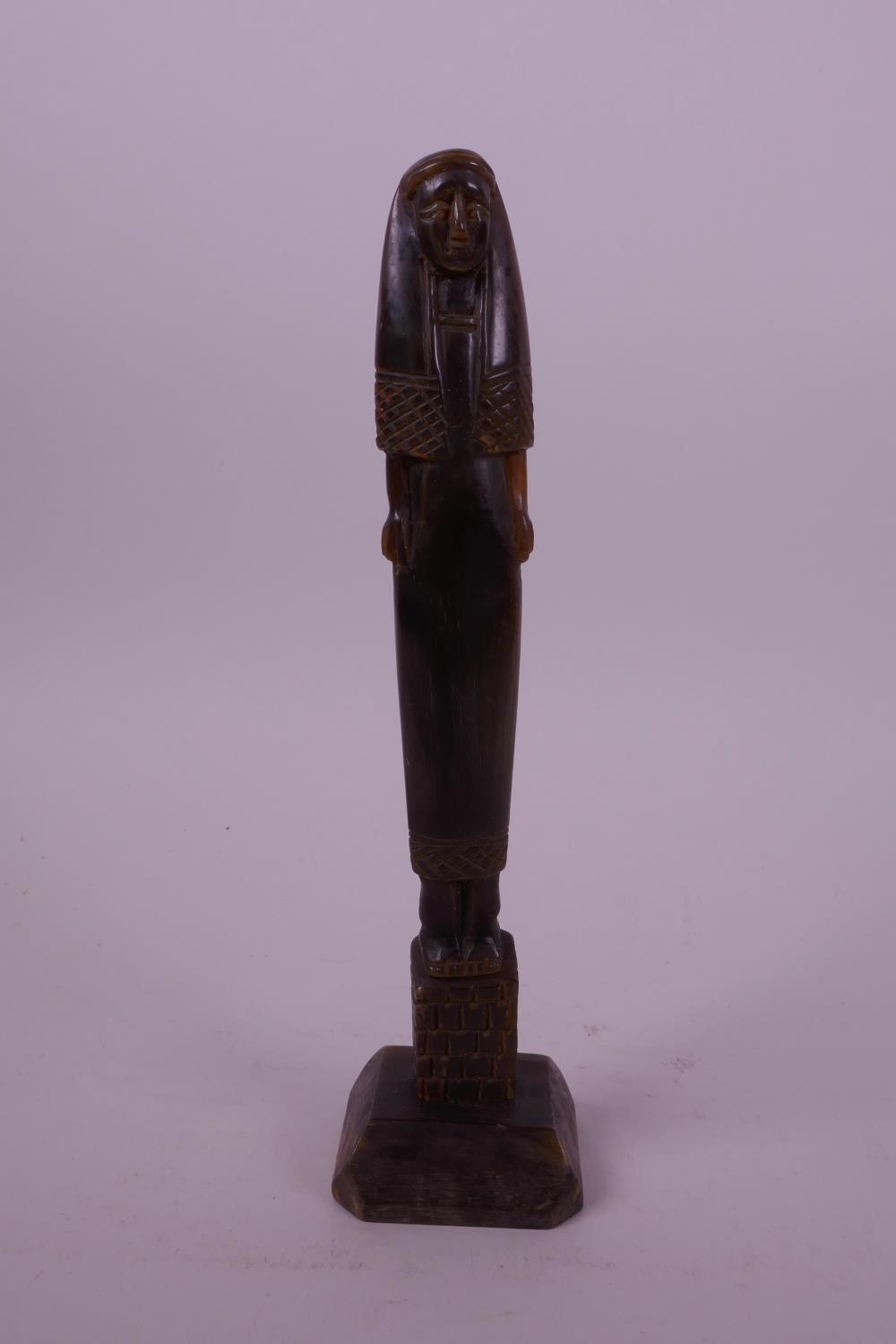 A carved horn statue of an ancient Egyptian woman, 7" high