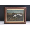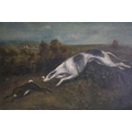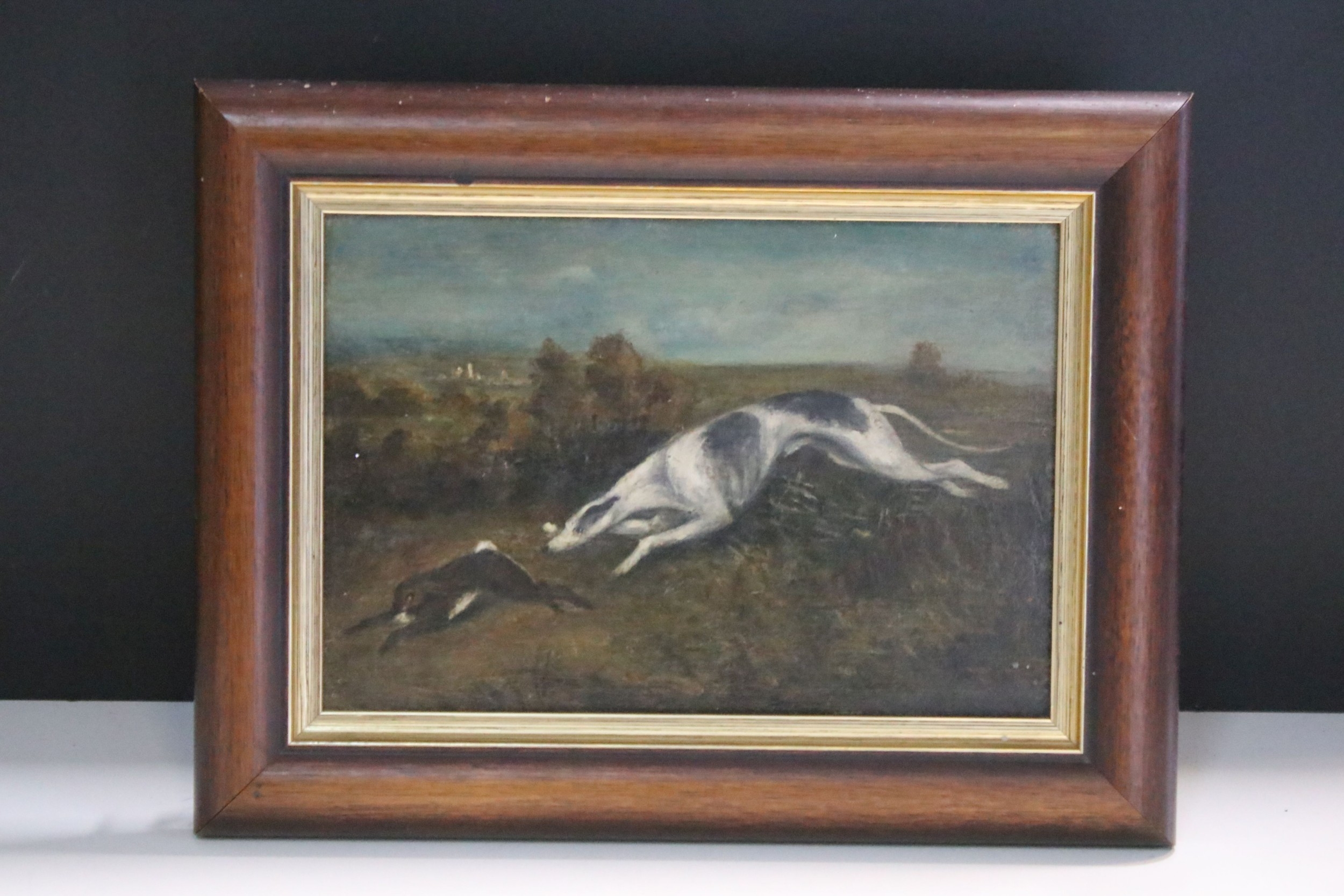 20th century school, hound chasing the rabbit, oil on board, 16cm x 23cm, framed