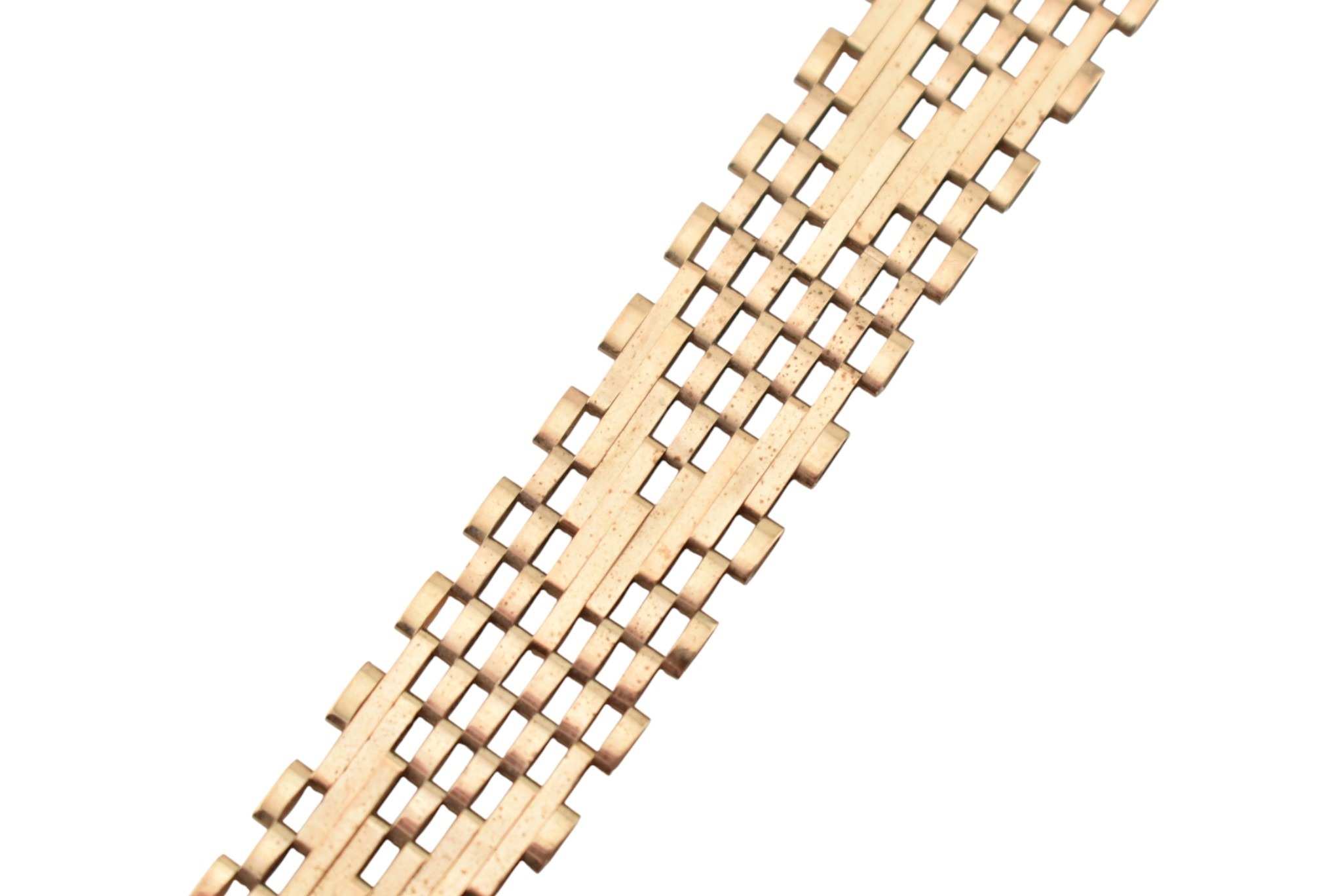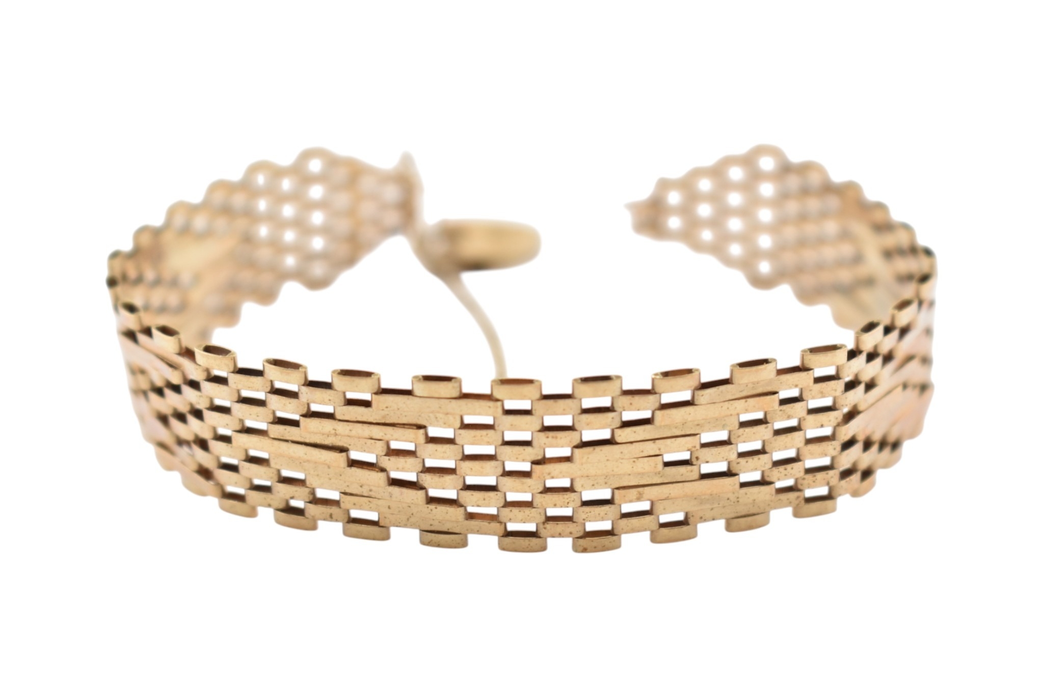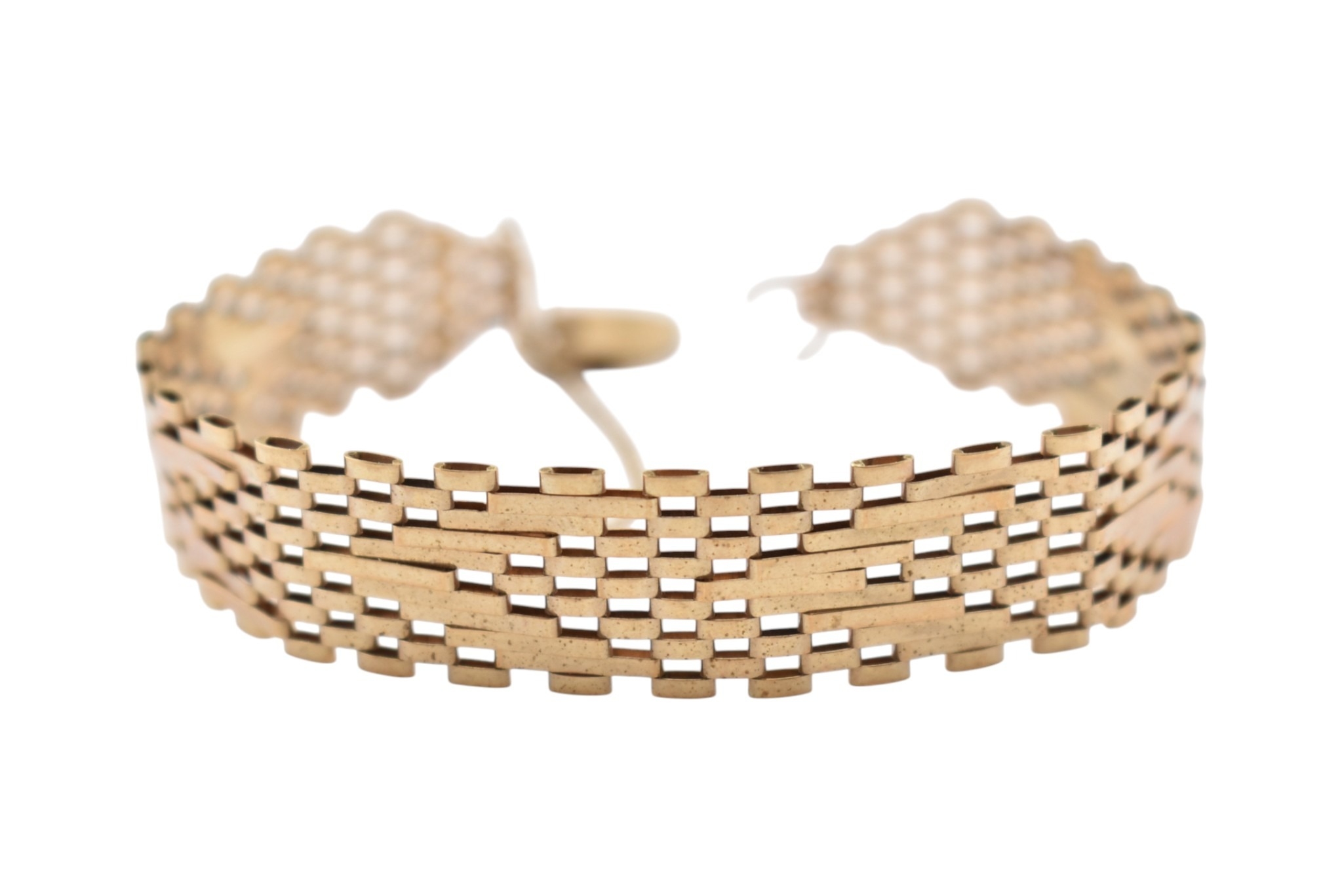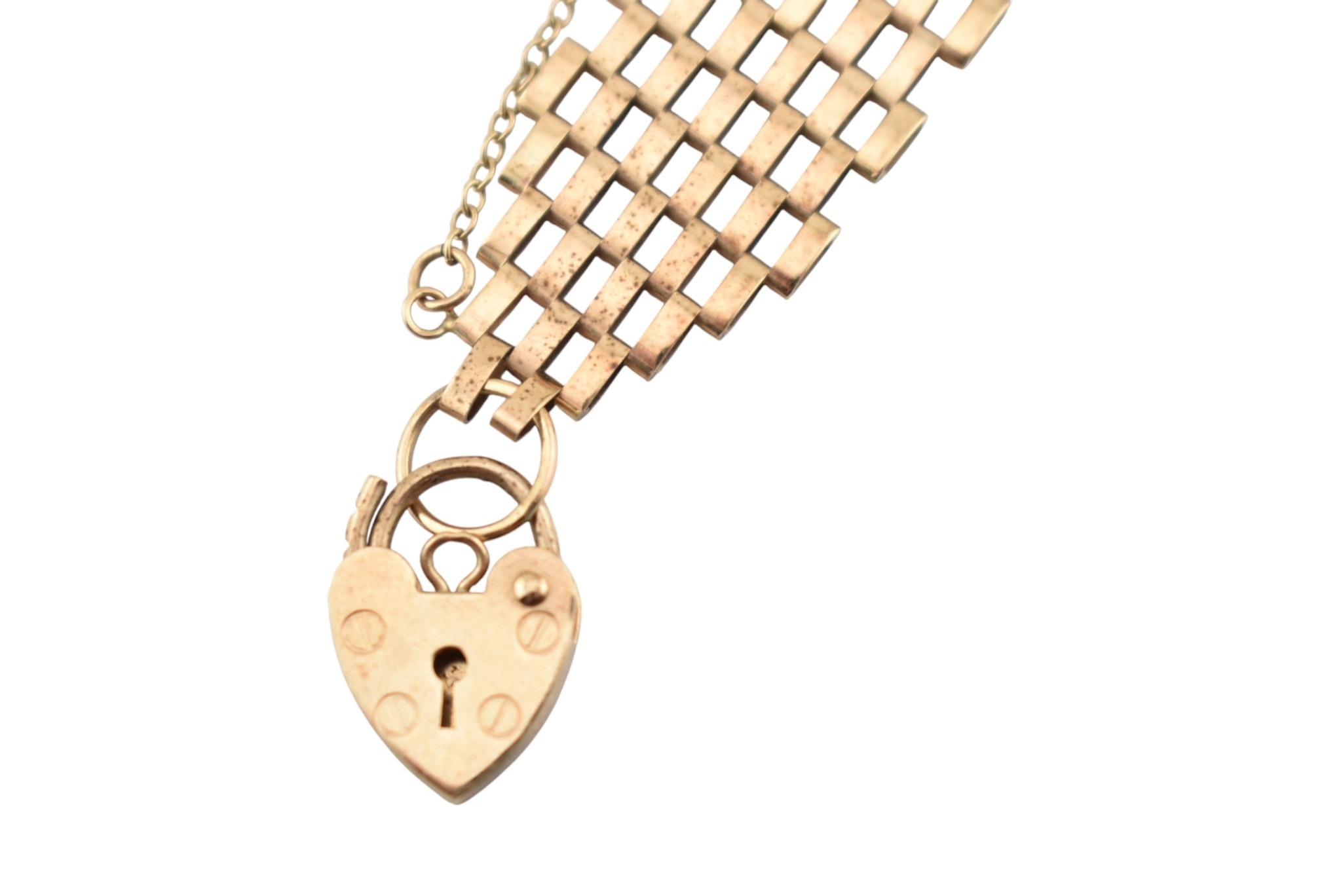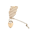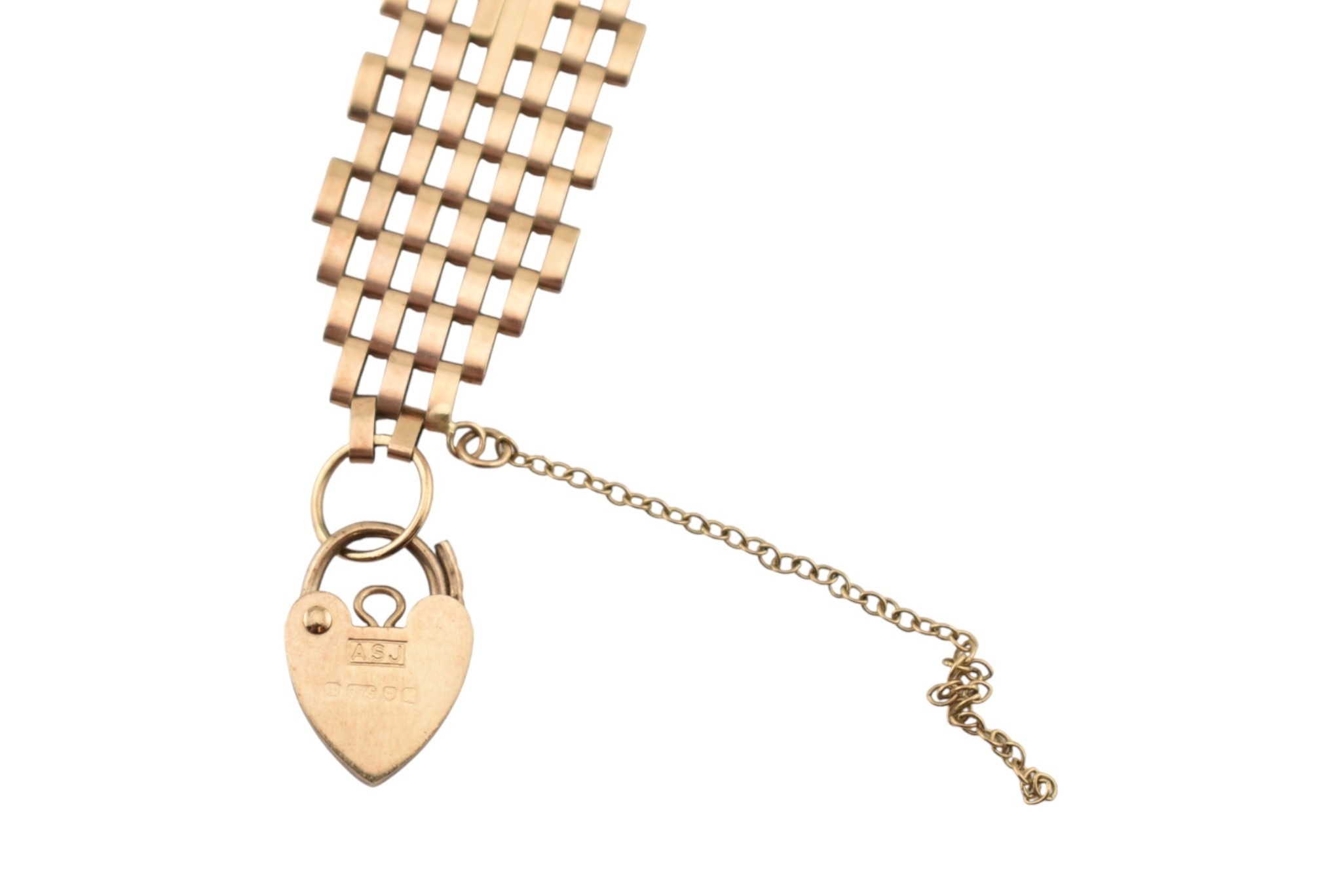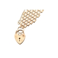 A hallmarked 9ct gold fancy link bracelet with heart clasp padlock. Hallmarked London. Weight 8.3g. Measures 66.5