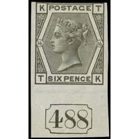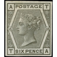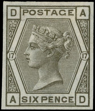 1880 6d Grey Pl.17 (Wmk. Spray). Very fine unused o.g. imperforate imprimatur lettered AD. Scarce one of only 22 possible examples in private hands. SG147. Cat. £2750.