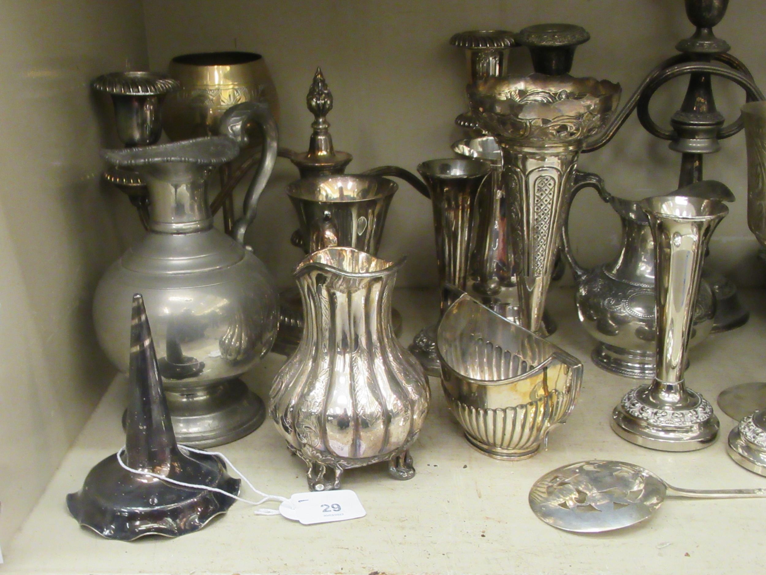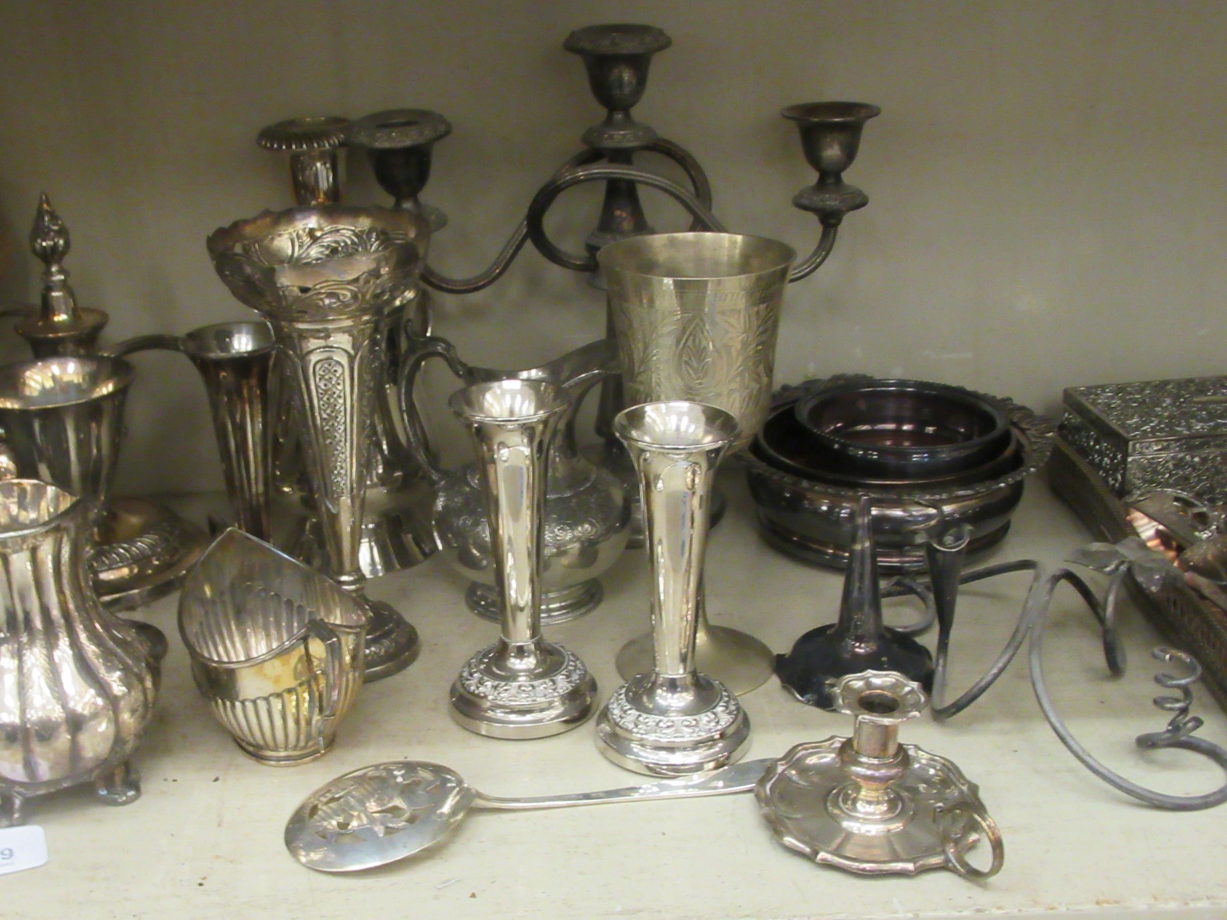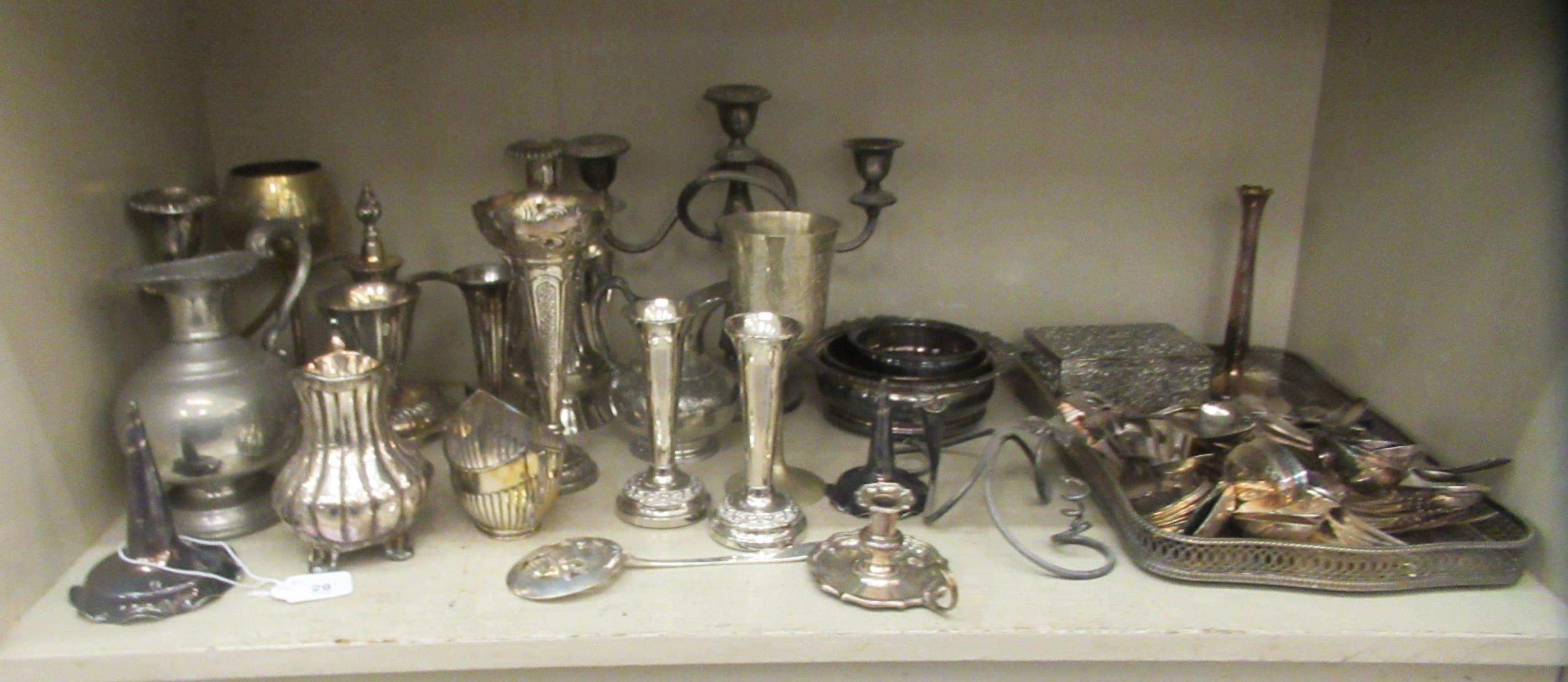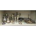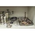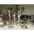Silver plated tableware and flatware: to include teaware and candelabra 8"h