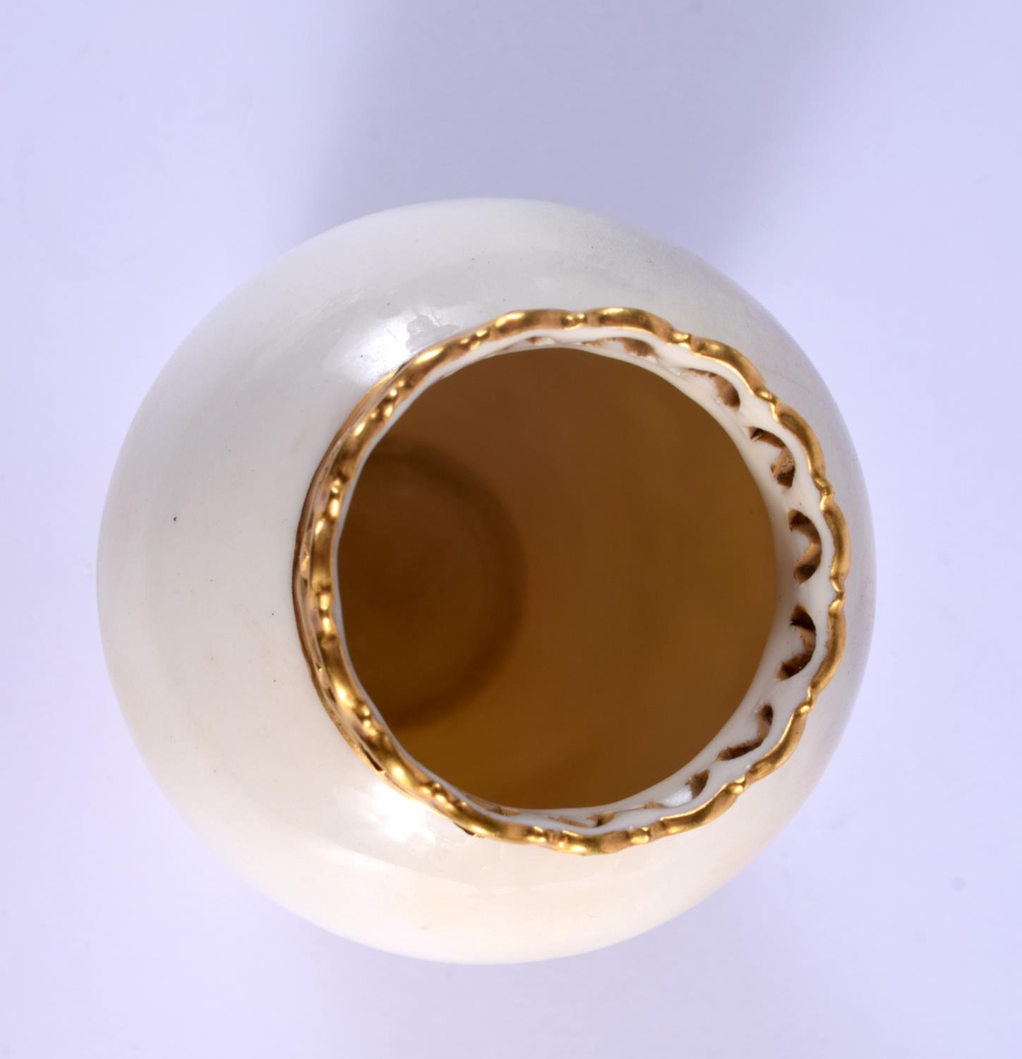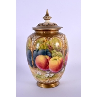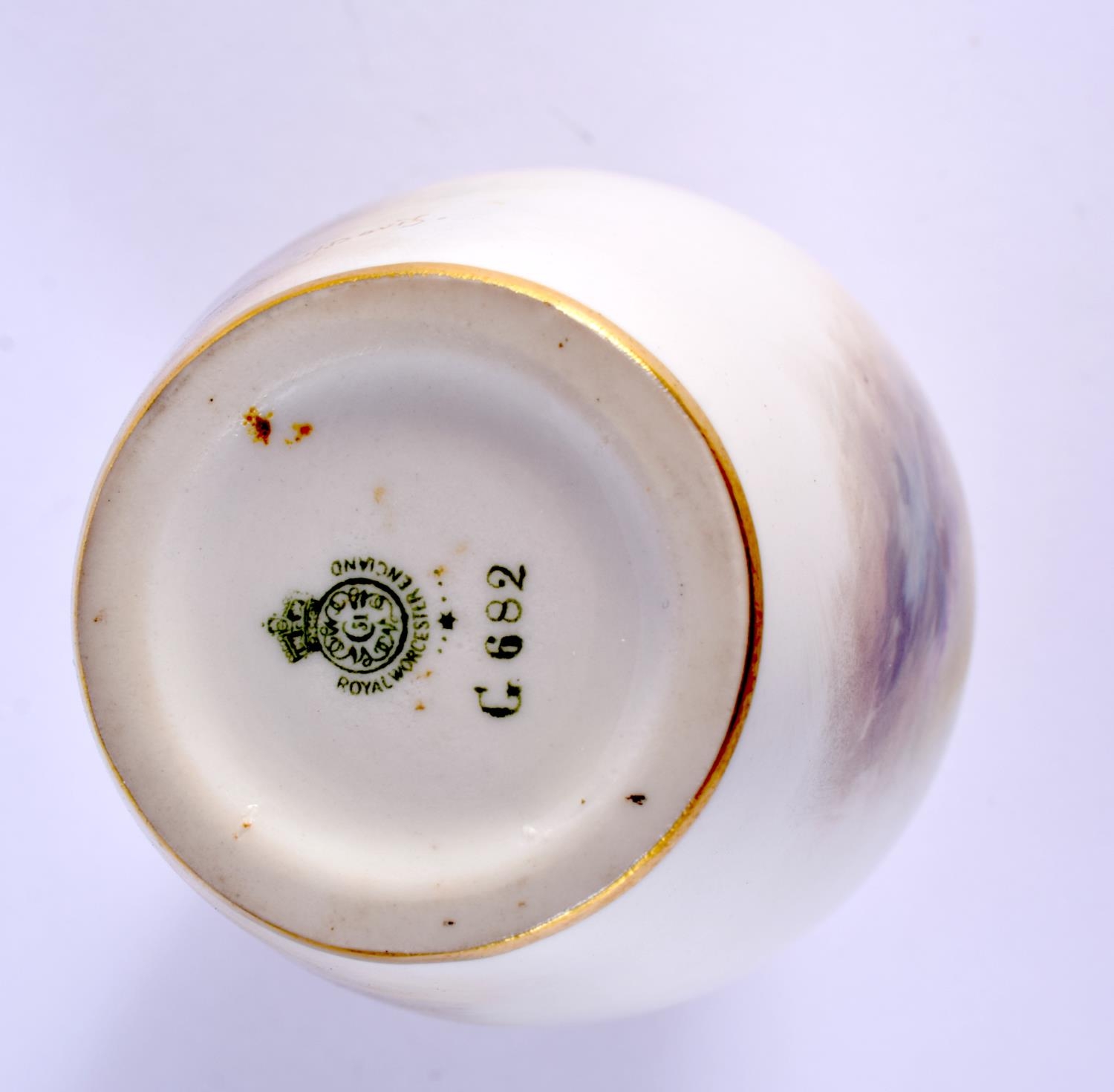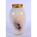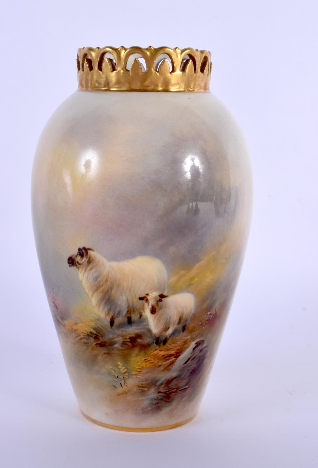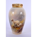 A ROYAL WORCESTER PORCELAIN VASE by Harry Davis, painted with sheep within landscapes. 14 cm high.