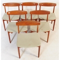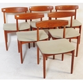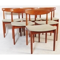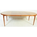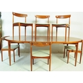 Danish Modern Design - Mid century dining room table and chairs. The suite comprising an extending dining table raised on turned and tapering legs together with a set of dining chairs with pad seats and turned legs Measures approx: 74x124x124cm 225cm extended