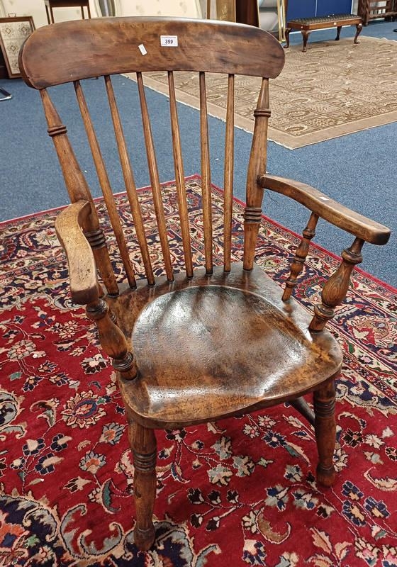 EARLY 20TH CENTURY MAHOGANY SPINDLE BACK ARMCHAIR ON TURNED SUPPORTS