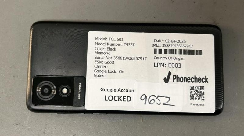 PHONE TCL 501/ T433D/ BLACK/ GOOGLE LOCKED/ IMEI: 3588194368...