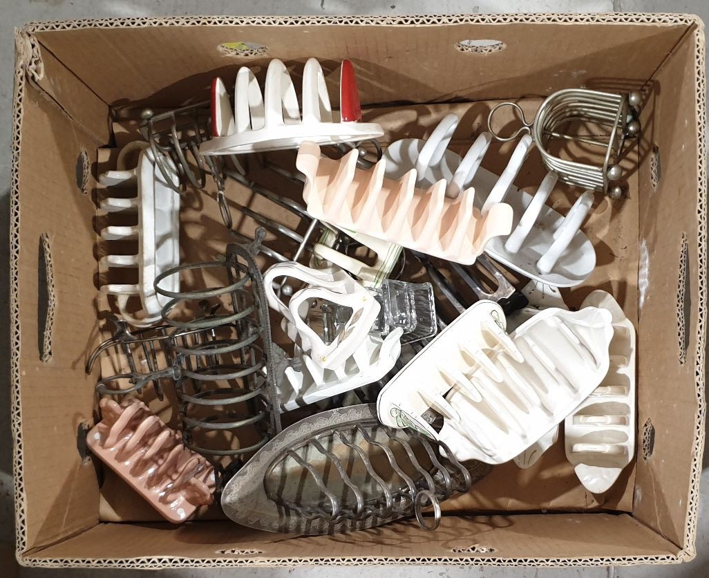A box of metal and ceramic toast racks. No in house shipping, please organise collection or your own shipping.