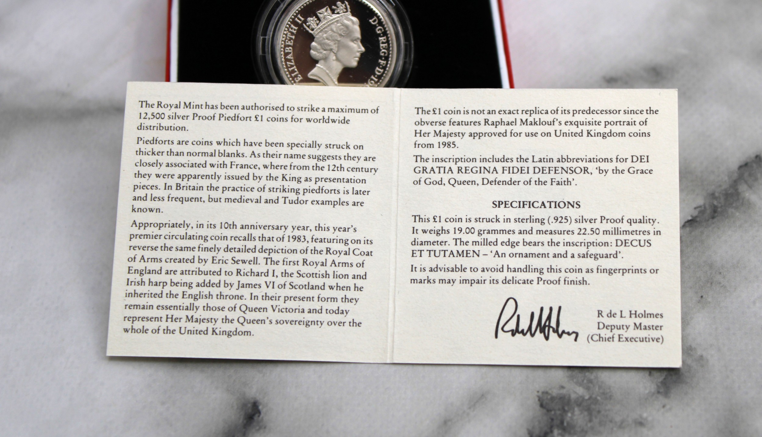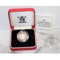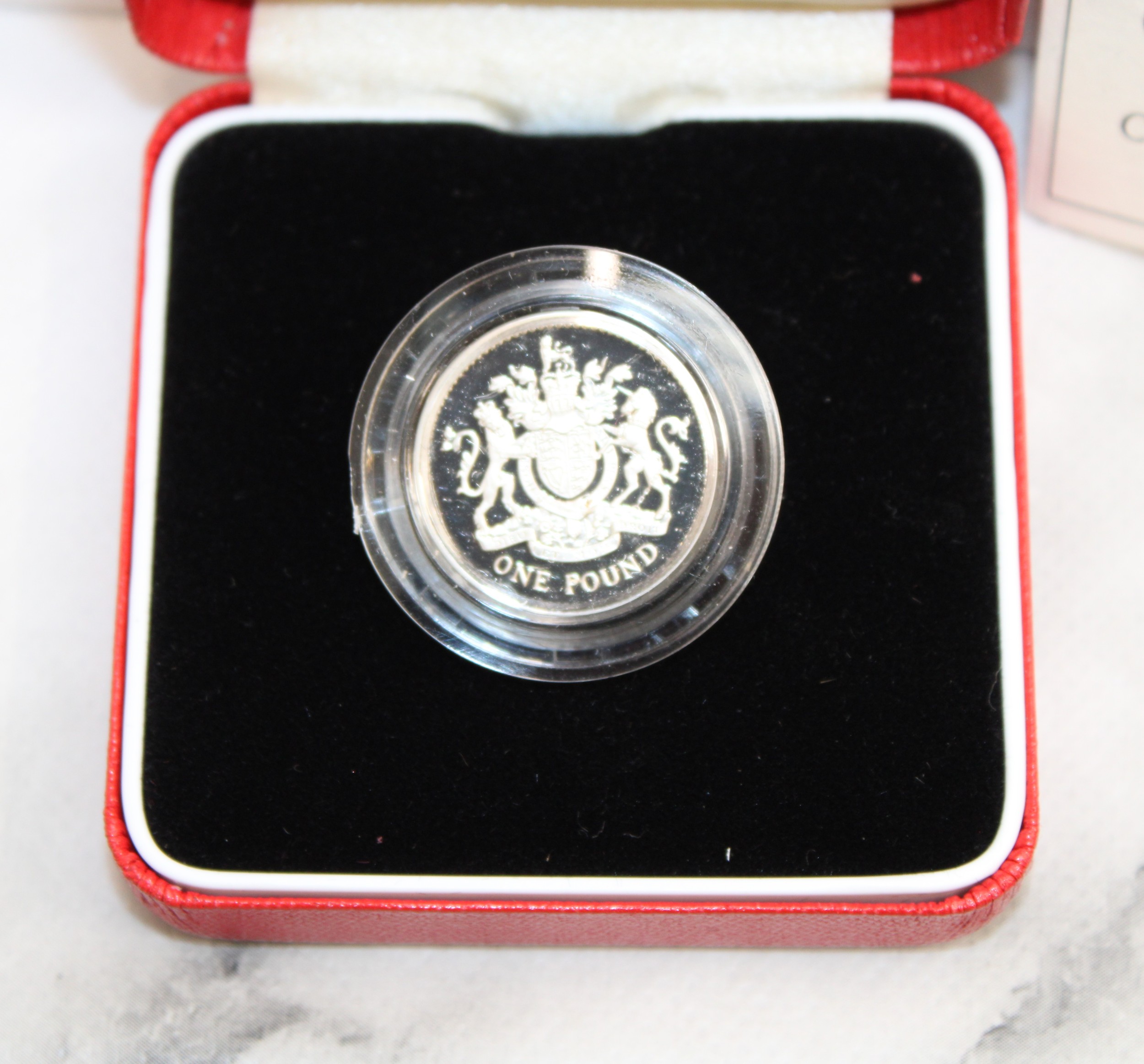 A Collectable Boxed 1993 United Kingdom Silver Proof Piedfort One Pound Coin With A Certificate Of Authenticity By The Royal Mint