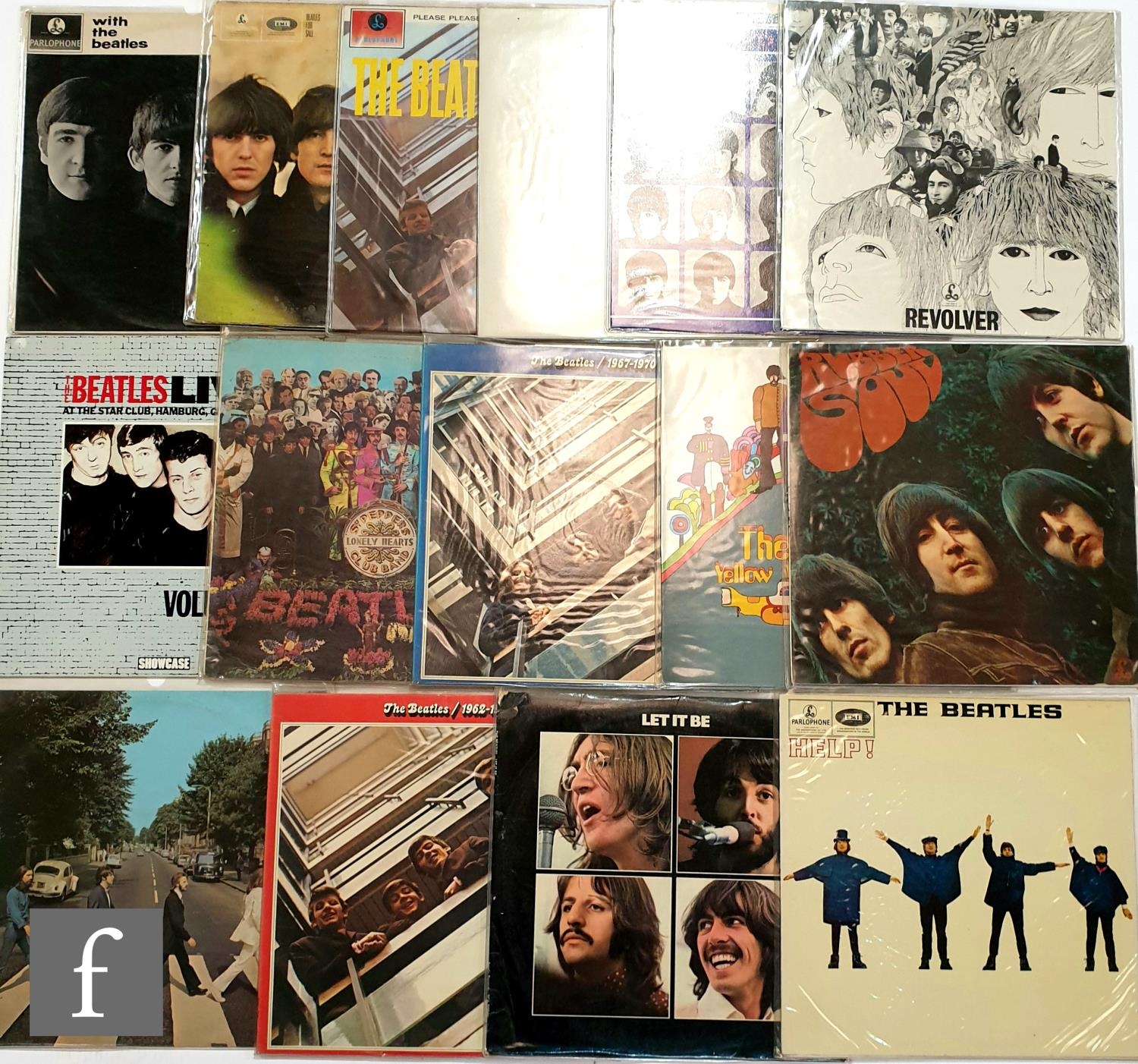 A collection of The Beatles LPs, mostly later and re-issues, to include 'Revolver', 'Rubber Soul', 'Help', 'Abbey Road' and 'Please, Please Me'. (15)