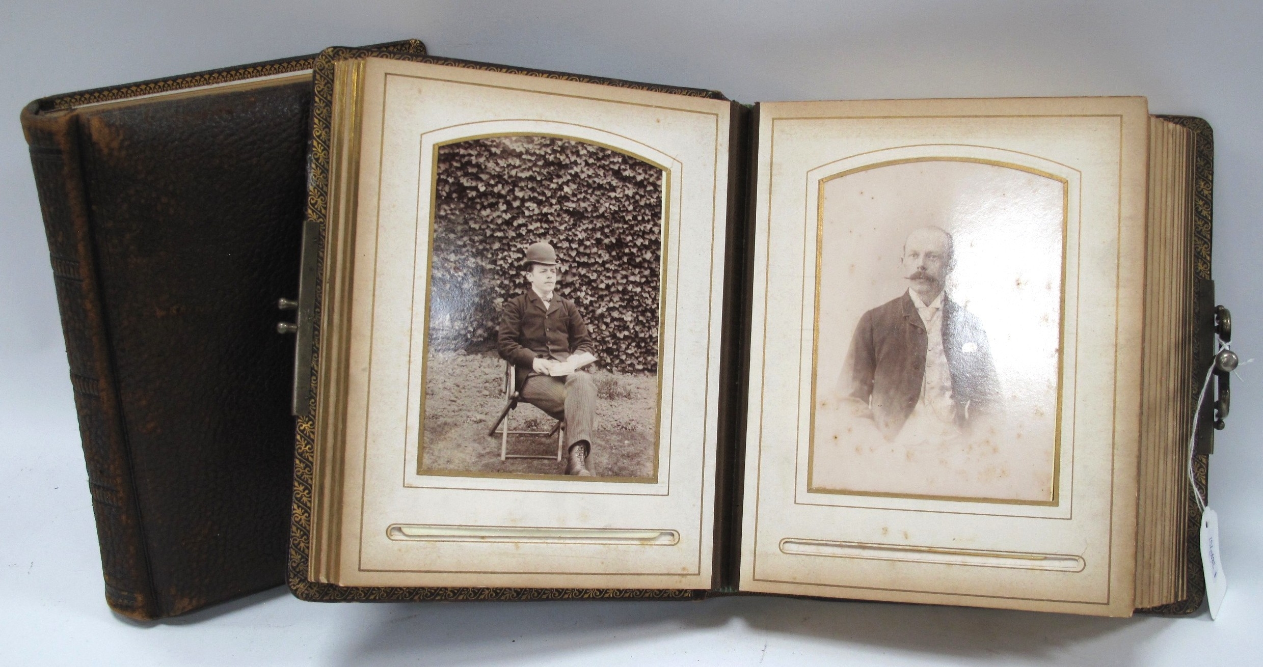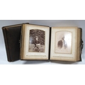 Two Leather Morocco Photograph Albums, with metal clasps, one containing period images.