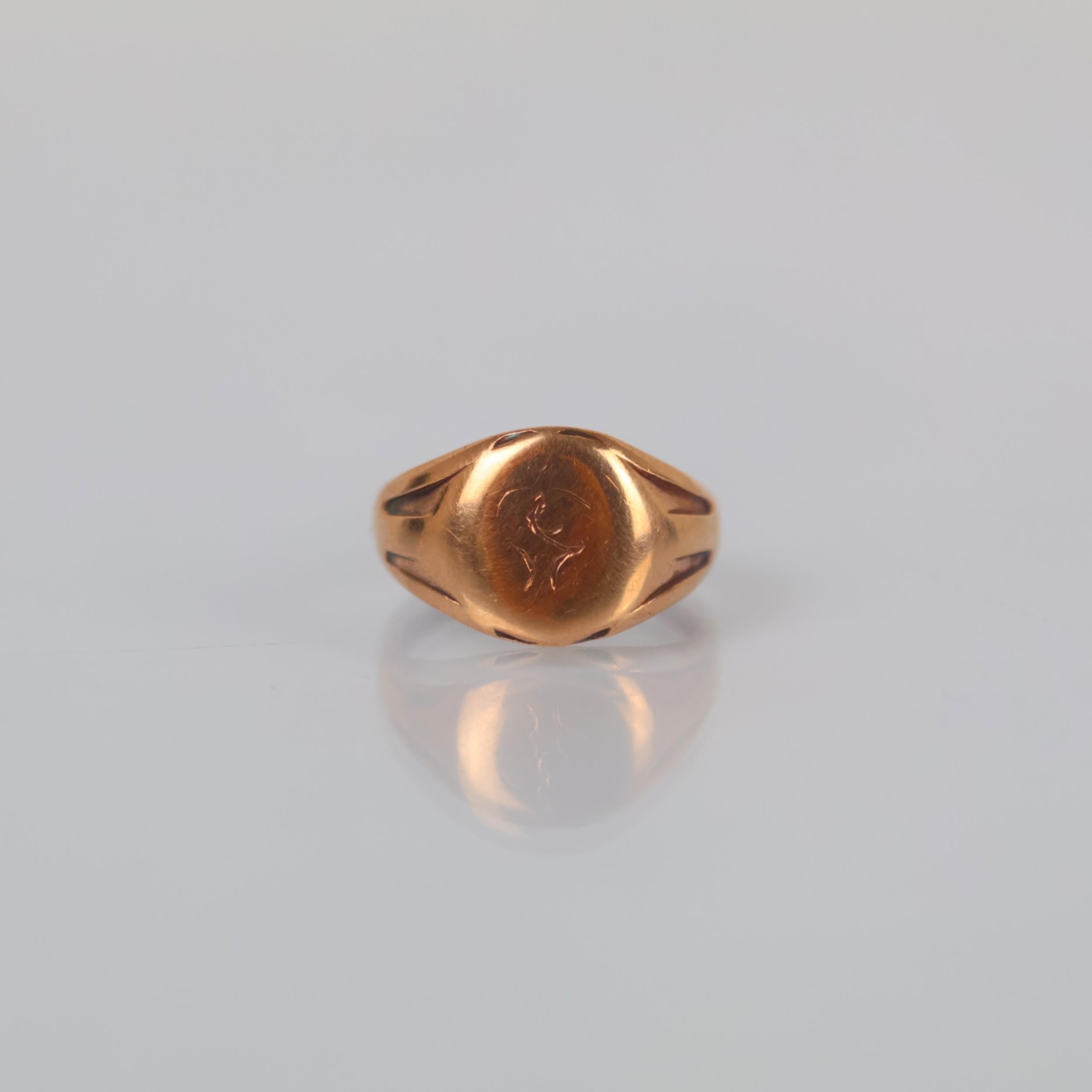 An early 20th century 9ct gold signet ring, the oval head leading to tapering shank, hallmarked to interior for Chester, ring size D, 2gms