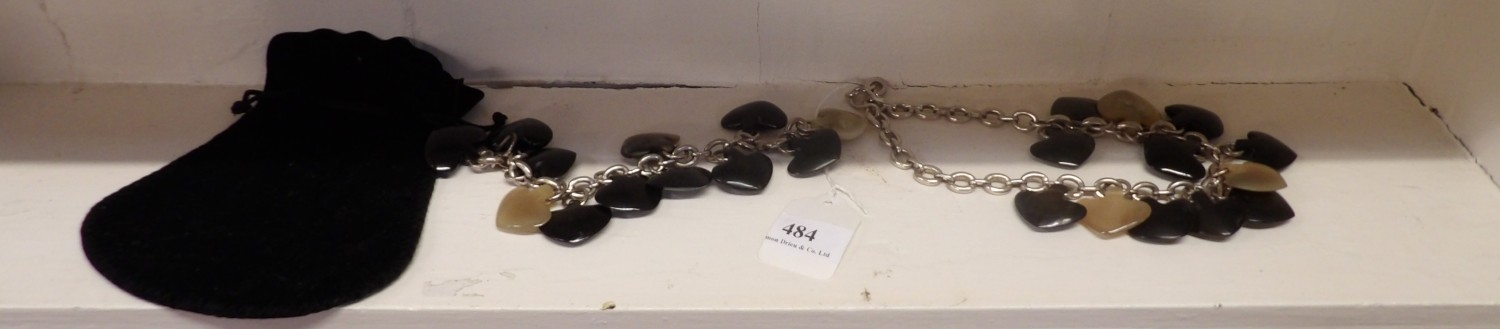 A suite of silver and buffalo horn puffy heart jewellery comprising of a necklace and matching bracelet