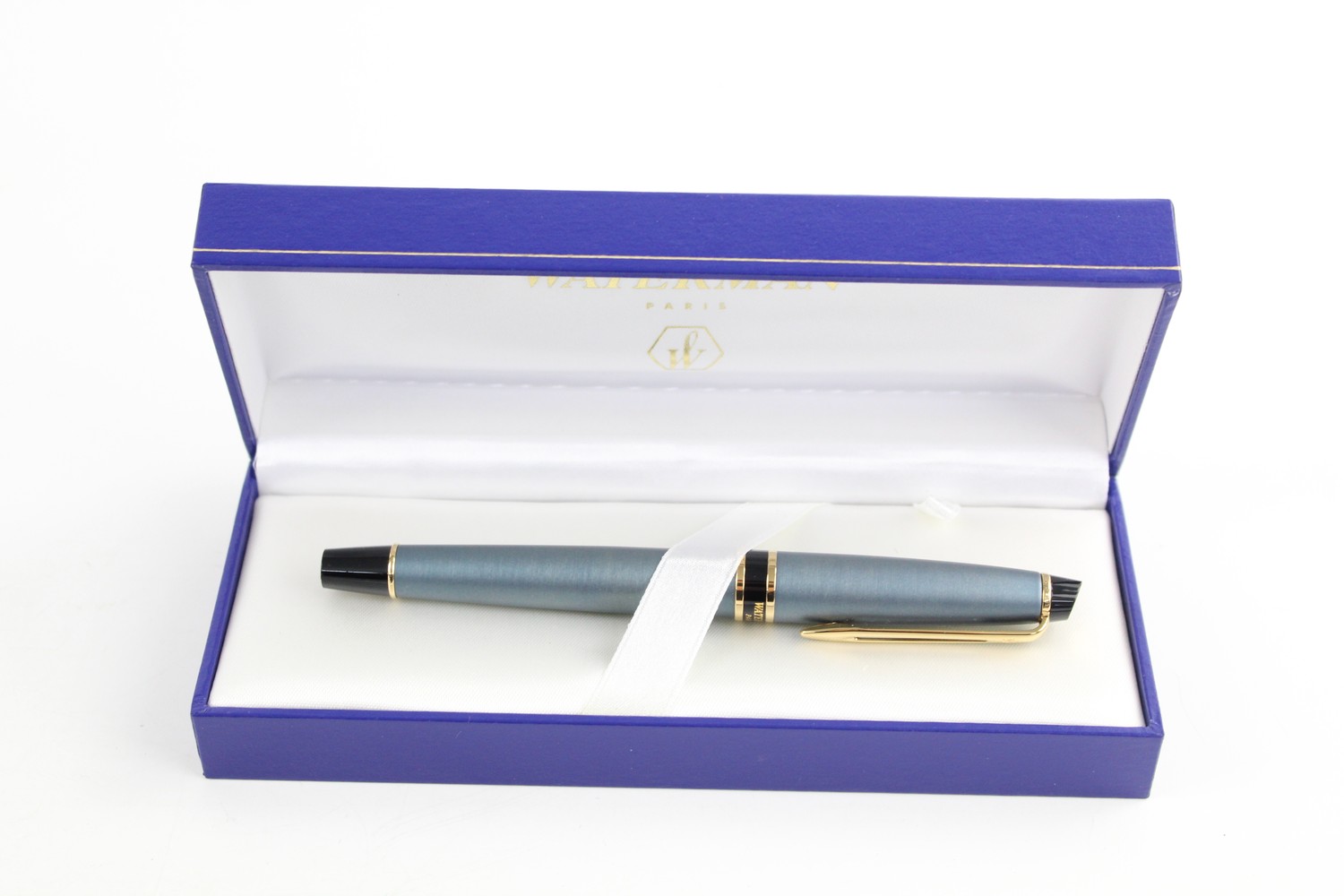 Vintage WATERMAN Expert Blue FOUNTAIN PEN w/ Gold Plate Nib WRITING Boxed