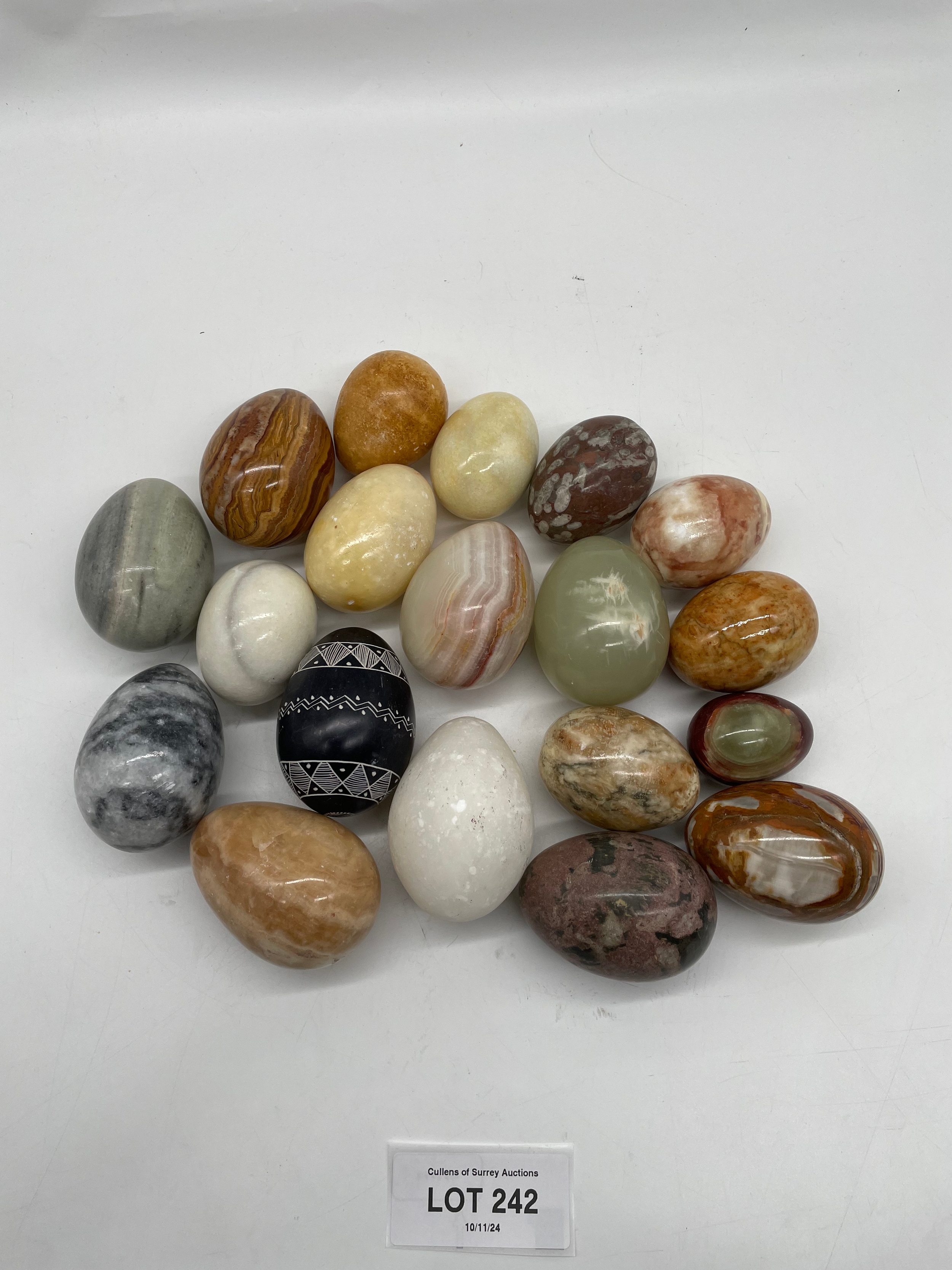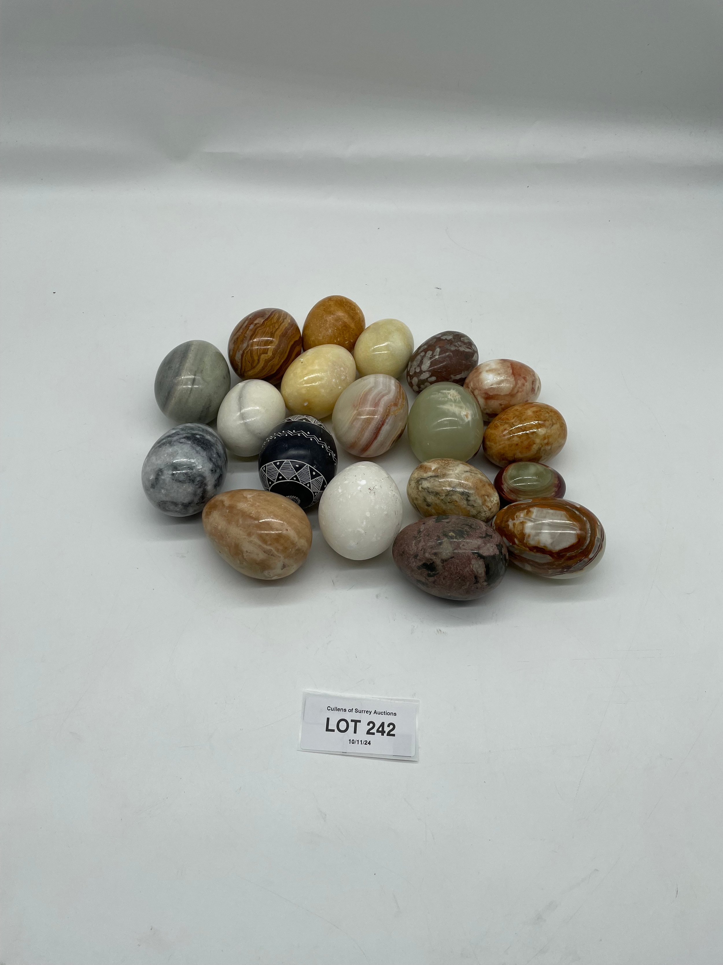 A collection of miscellaneous polished Marble/Onyx eggs.
