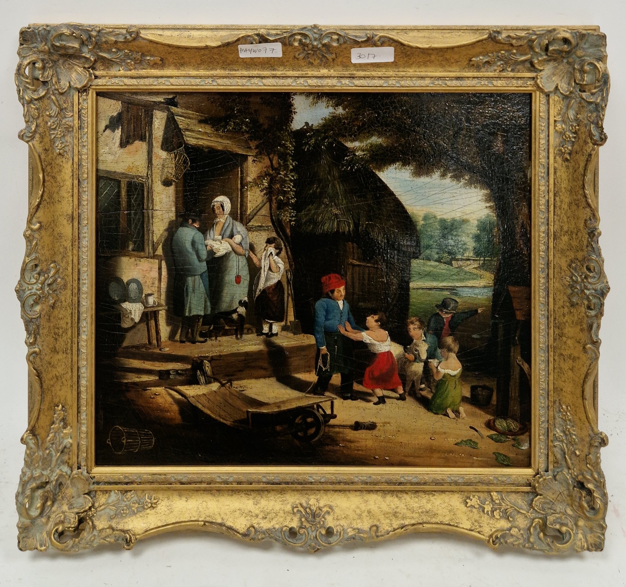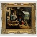 Figures before a cottage, indistinctly signed Edward Martin above the date Jan 1760 (?) lower left, 31.5cm x 37cm