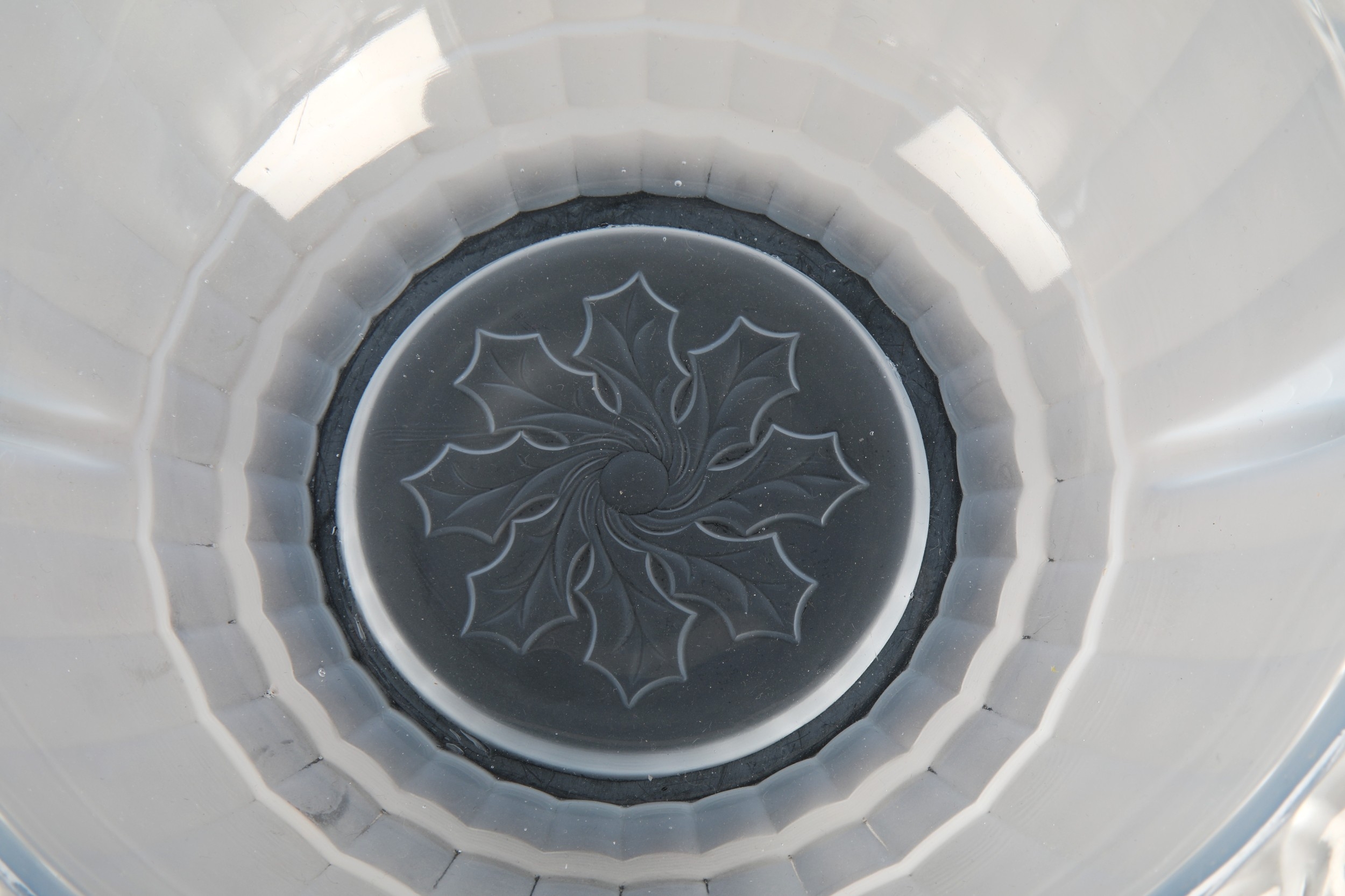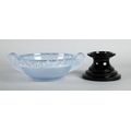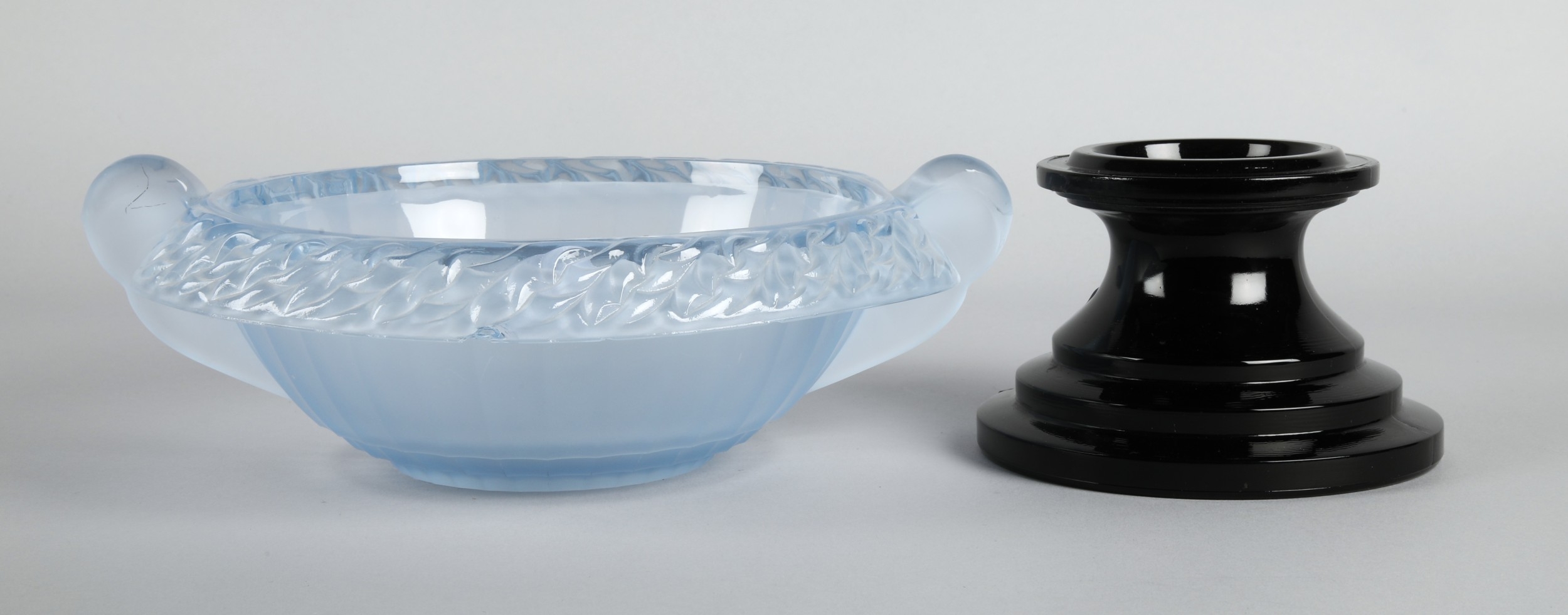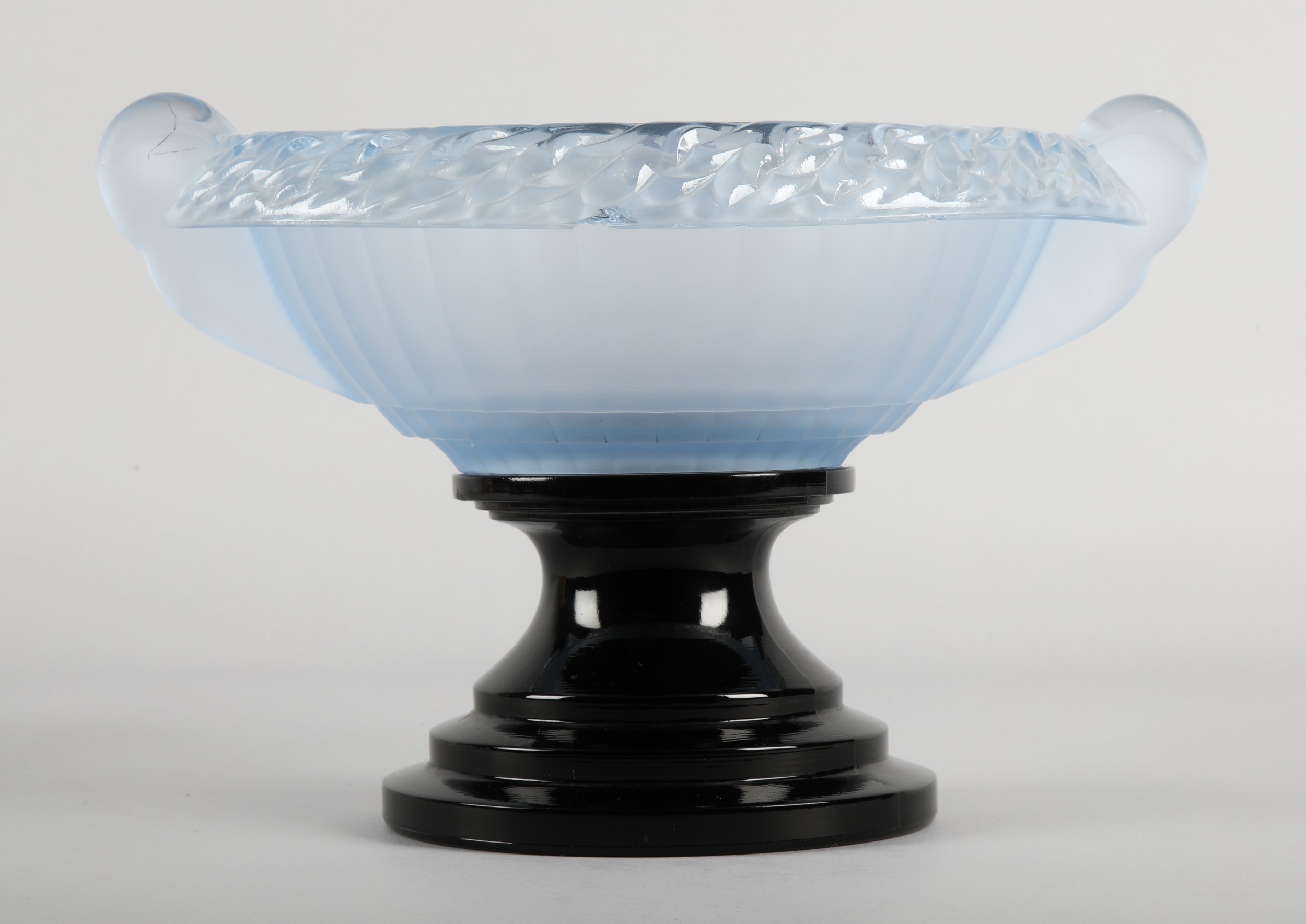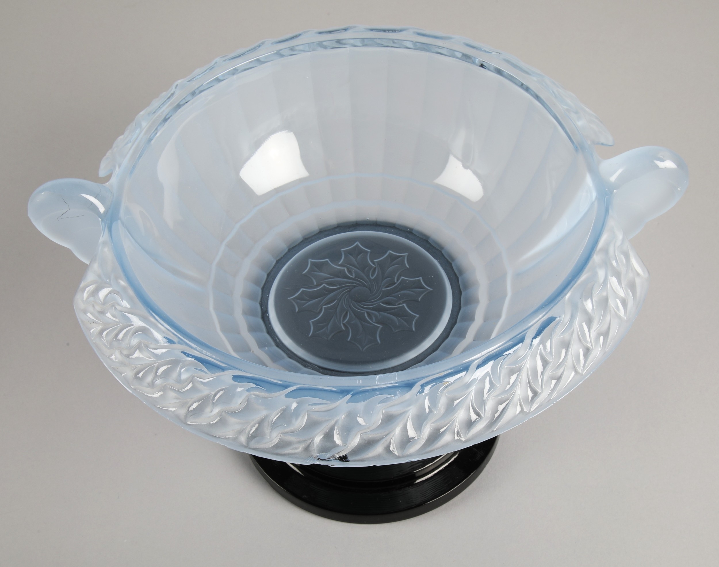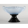Blue frosted glass pedestal bowl, diameter 26cm.