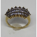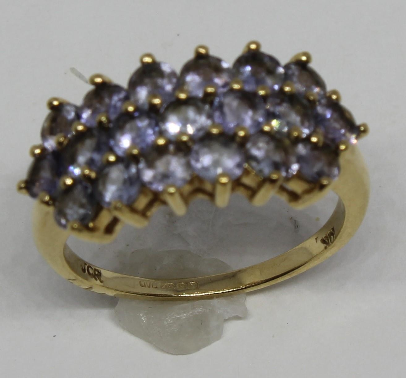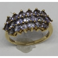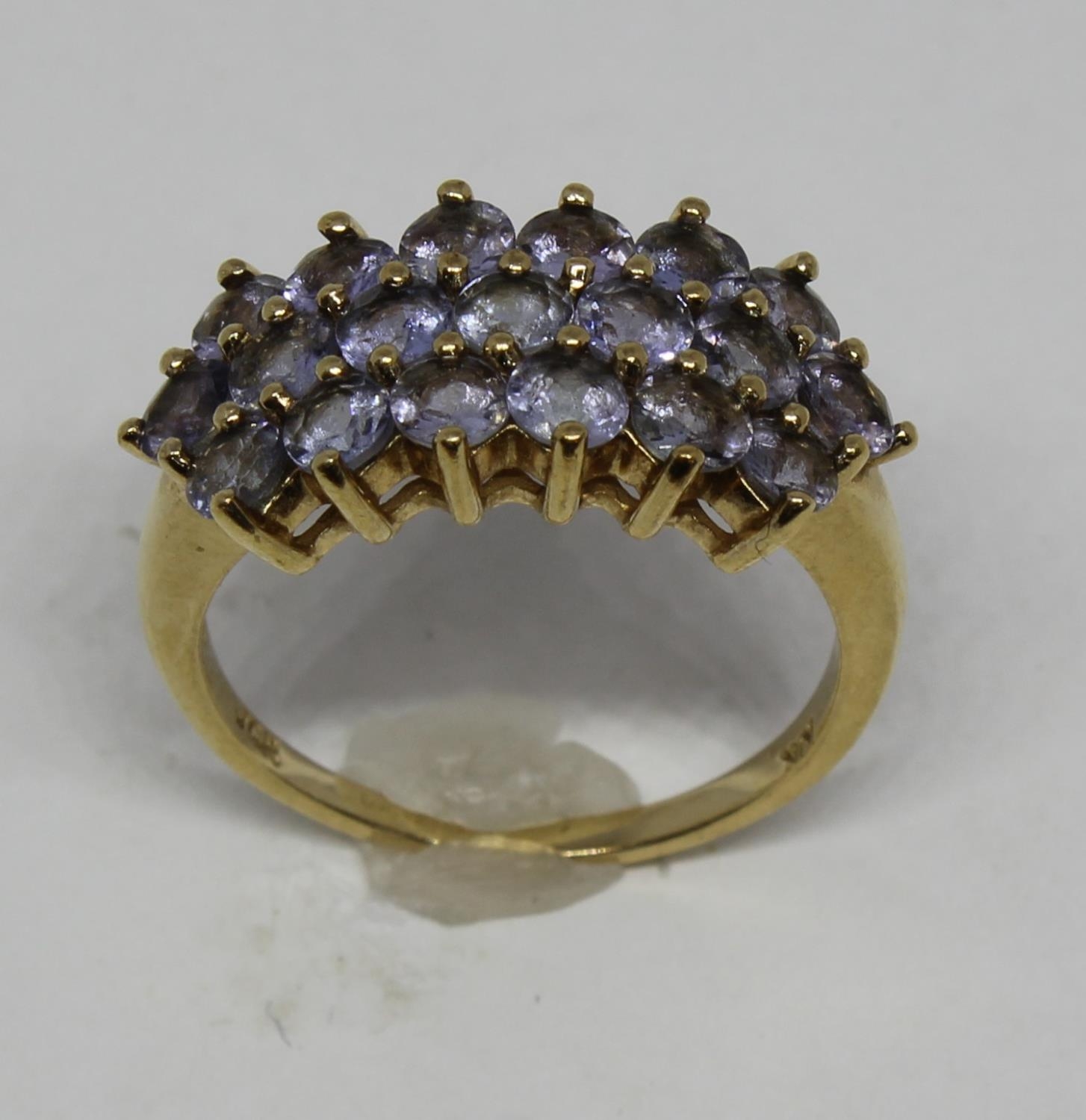 9ct GOLD CLUSTER RING SET PURPLE STONES (3.7g) - SIZE N