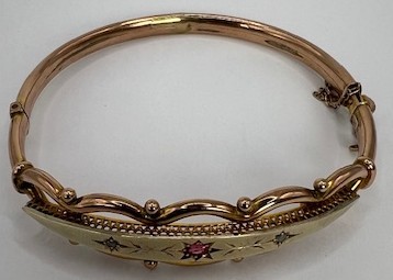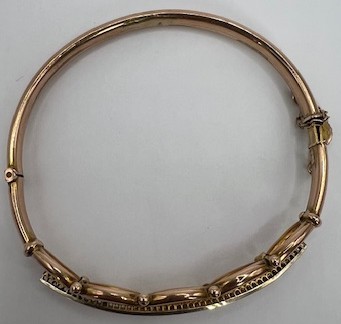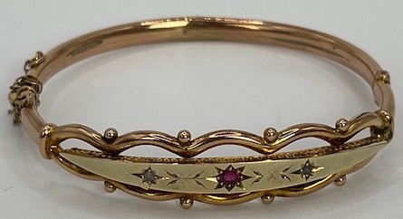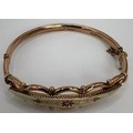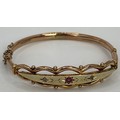 A 9ct gold, sapphire and diamond bangle, 9.3 g, 7 cm diameter