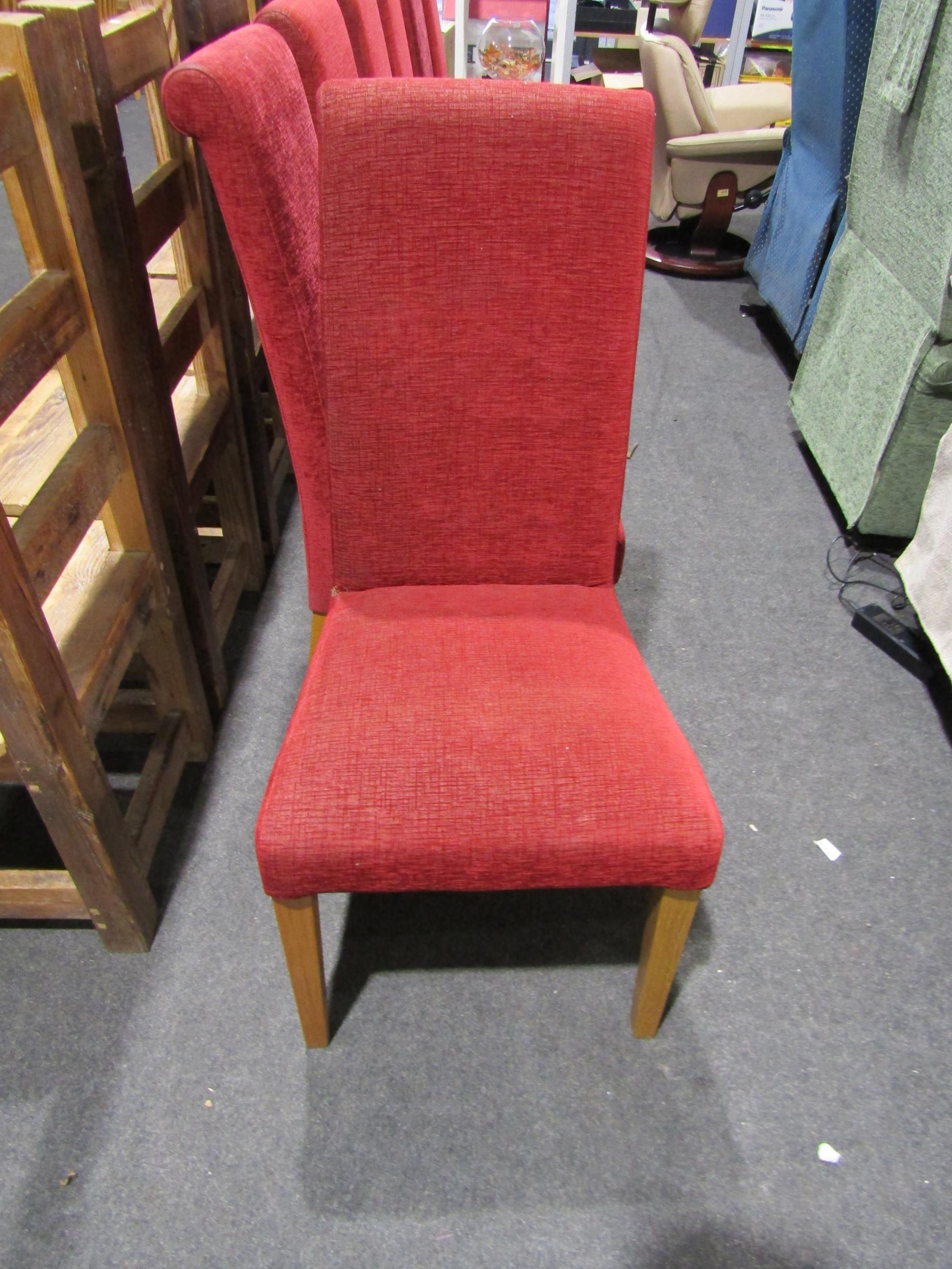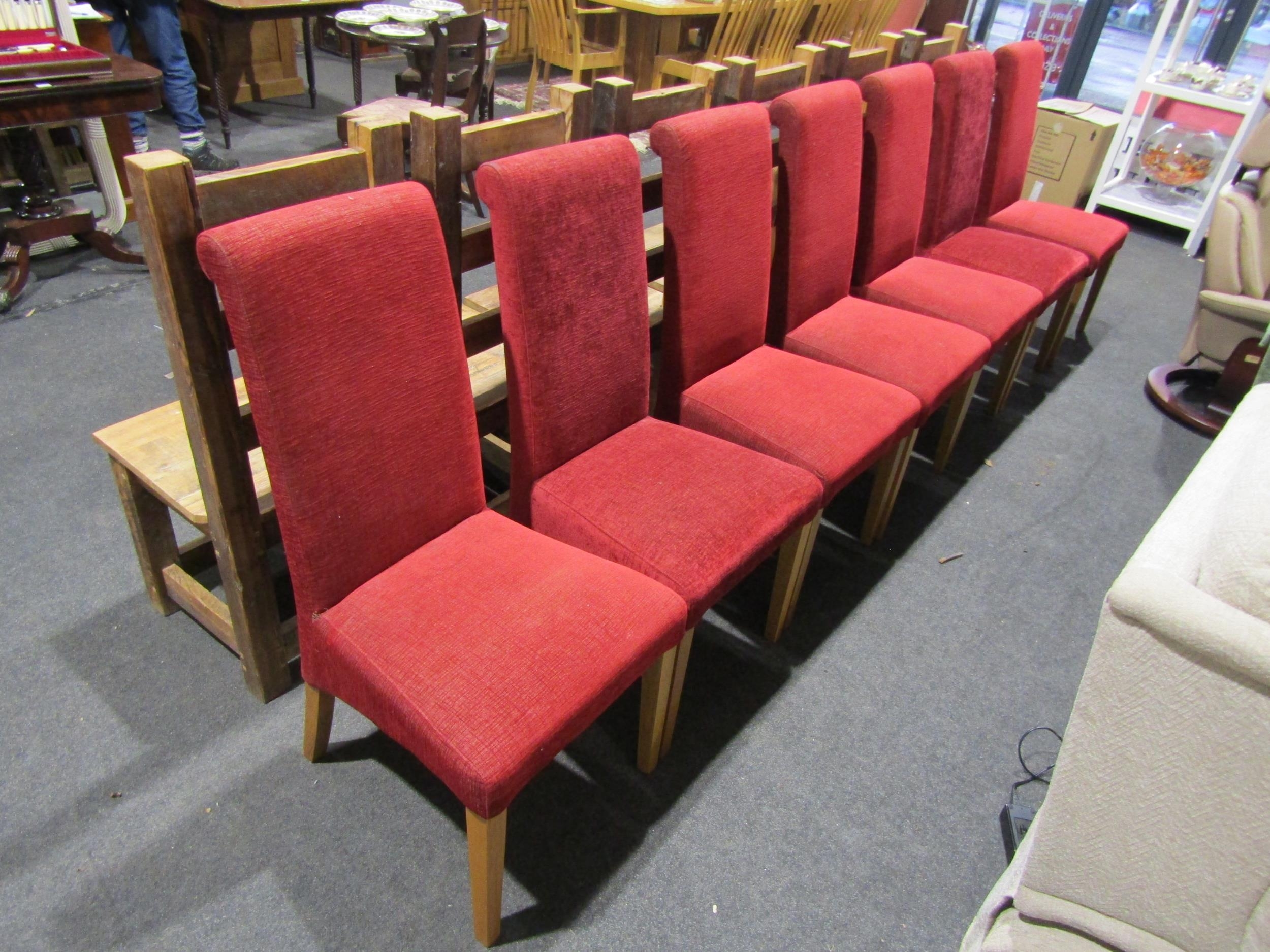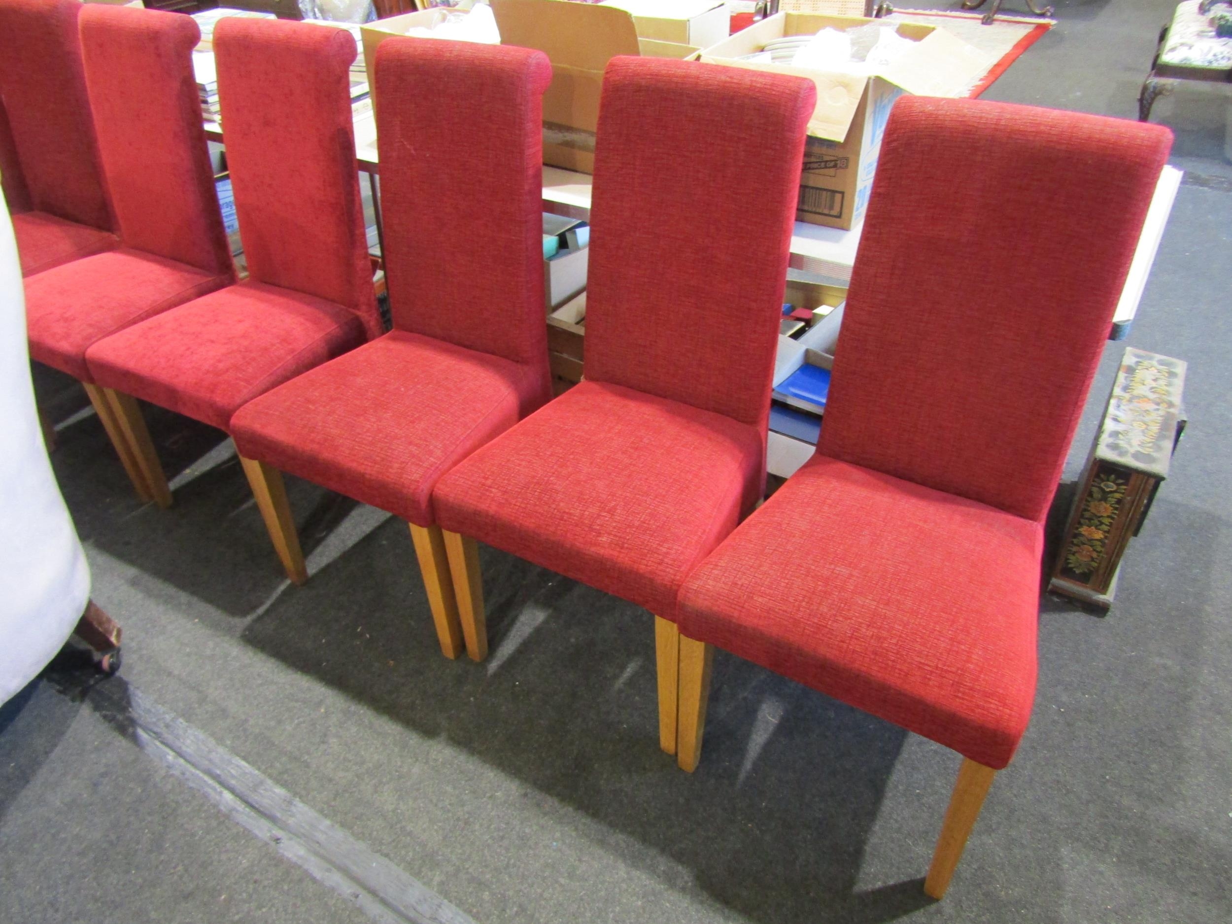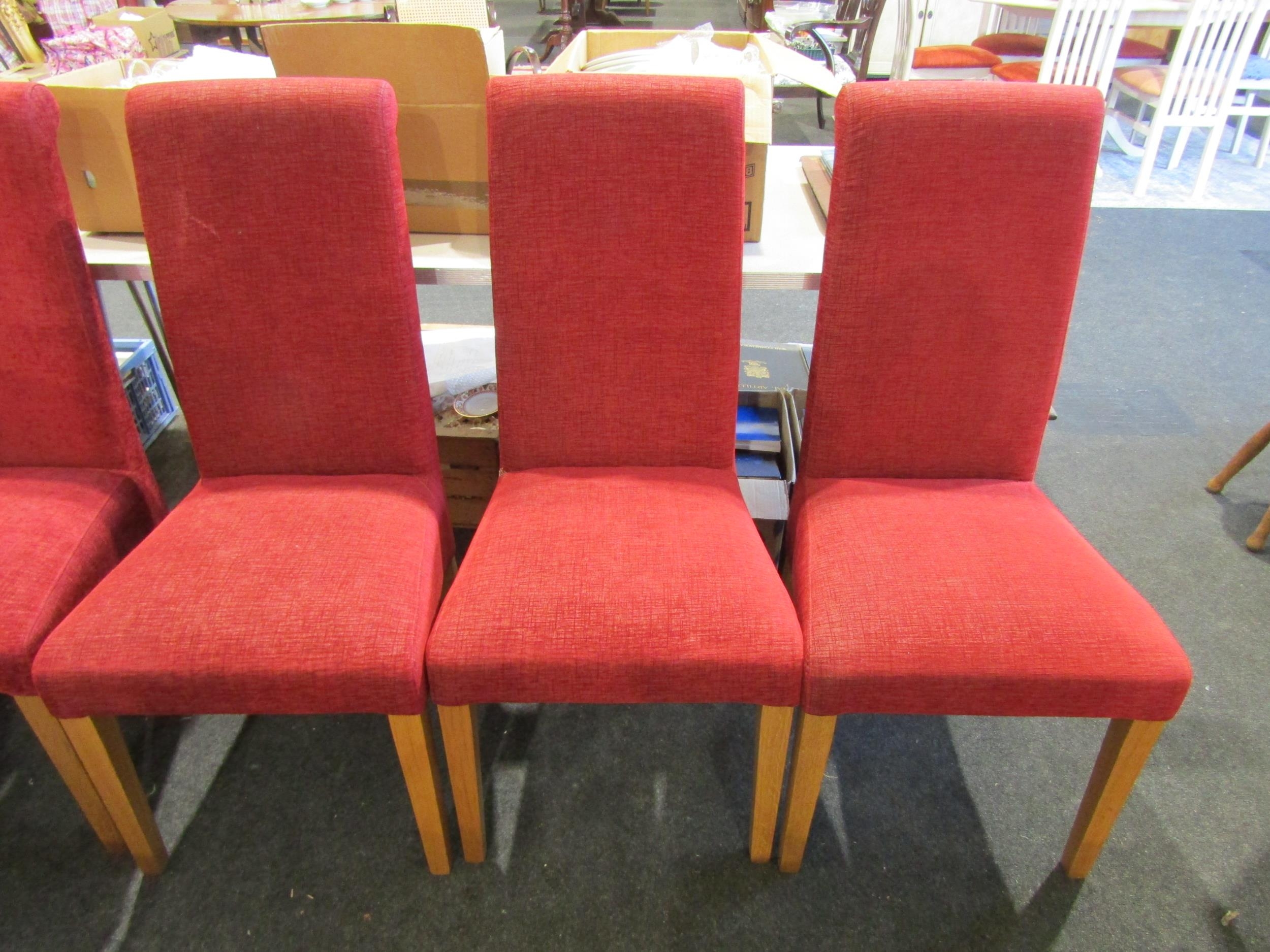 A set of eight upholstered Italian dining chairs on tapering oak leg supports