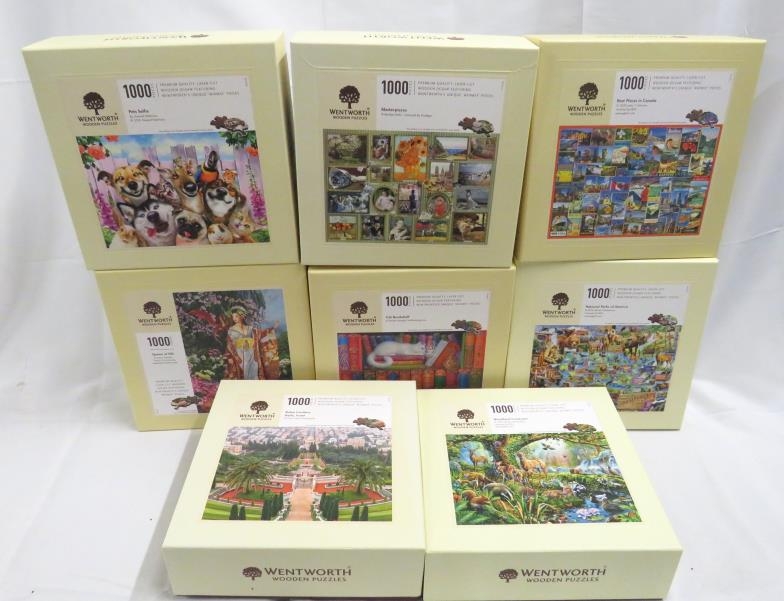Wentworth Wooden Puzzles 1000 pieces Cat Bookshelf, Queen of Silk, Pets Selfie, Masterpieces, Best Places in Canada, Woodland Creatures, Bahai Gardens, Haifa Israel & National Parks of America (8)